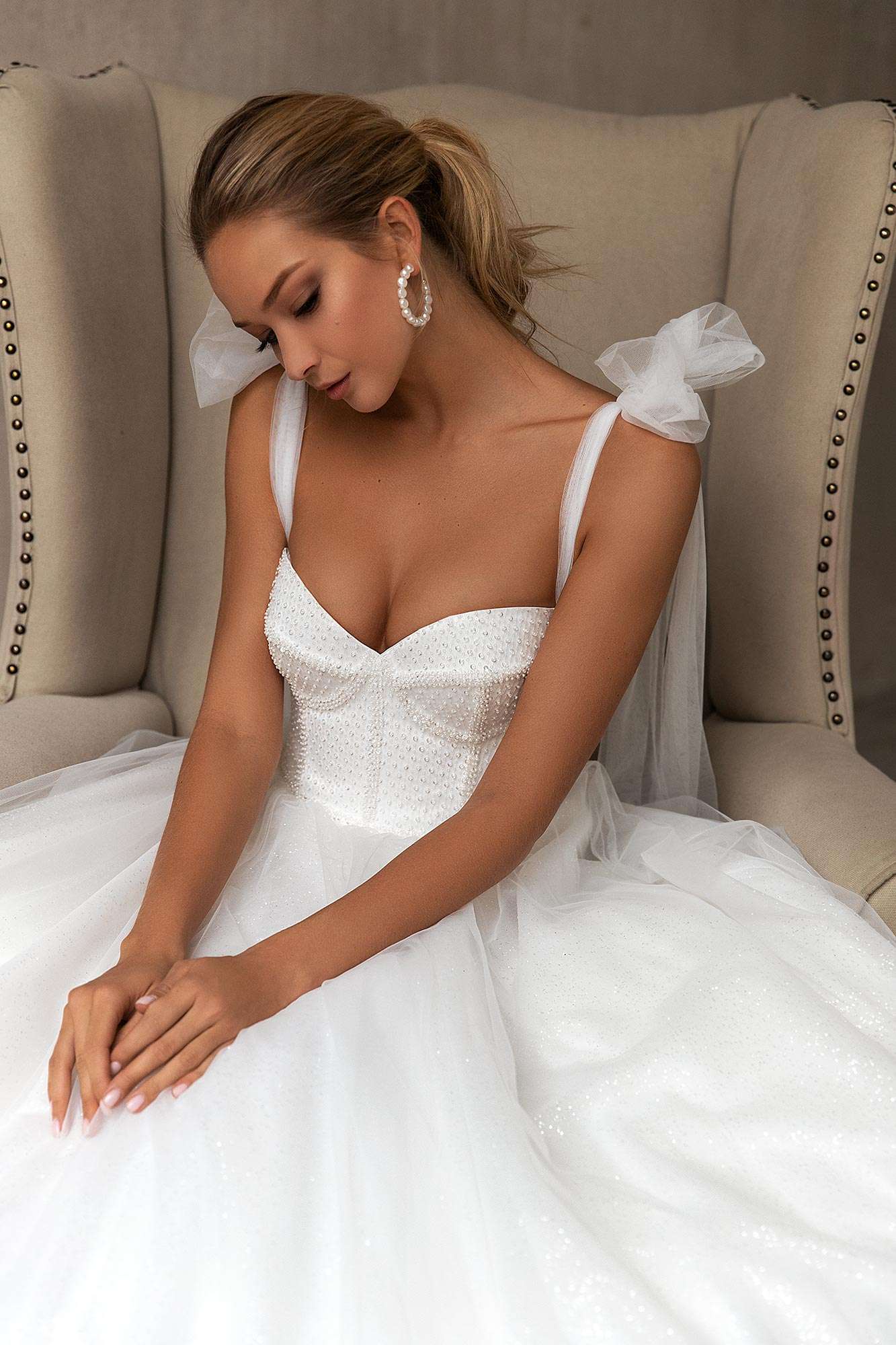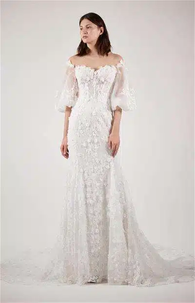 Minimalism for the modern bride. The new 2021 collection from Eva Lendel: Less is more (the name speaks for itself!) rethinks the classic, mermaid and weightless silhouette. It highlights a number of different fashion trends including capes, removable skirts, seductive necklines, elegant bows and trendy sleeves-buffs, as well as exclusive embroidered lace decorated by hand and much more. This line of gowns has a wide variety of looks for a plethora of tastes and brides. You’re sure to find the perfect gown for you in this collection!
