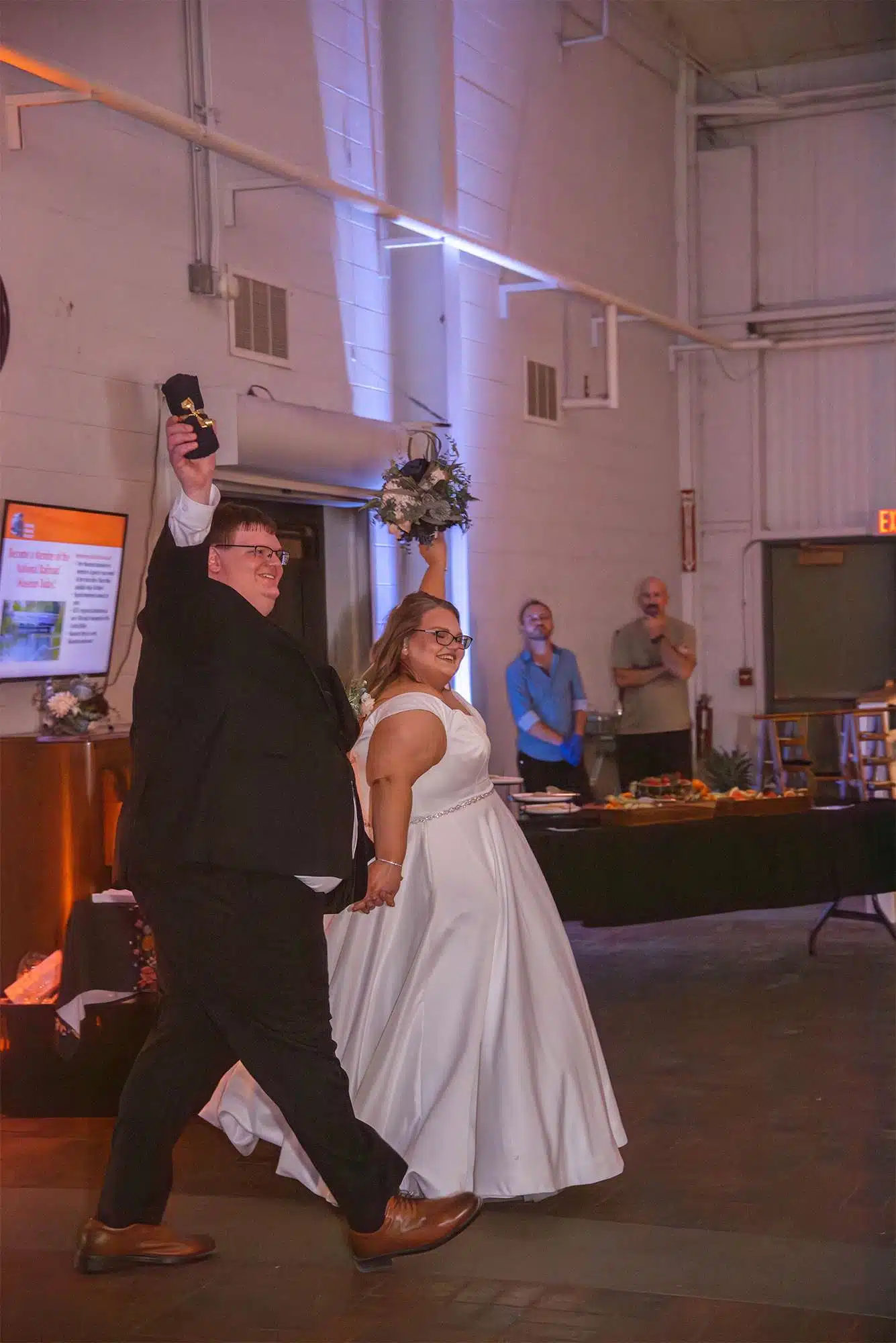 Jeff and the bridal party walked down the aisle to the “Jurassic Park” theme song. Sam loves the “Jurassic Park” movies and wanted to incorporate it into her wedding. Being a big “Harry Potter” fan, Sam wanted to walk down the aisle to some of the music from the movies. She was able to find a mashup of “Hedwig’s Theme” and “Leaving Hogwarts” mixed with the traditional “Cannon in D” that was prefect for her to walk down the aisle to. For the recessional, the couple left the ceremony to “Avengers Suite,” the theme music from “The Avengers” movies because “Jeff loves all things superhero.”