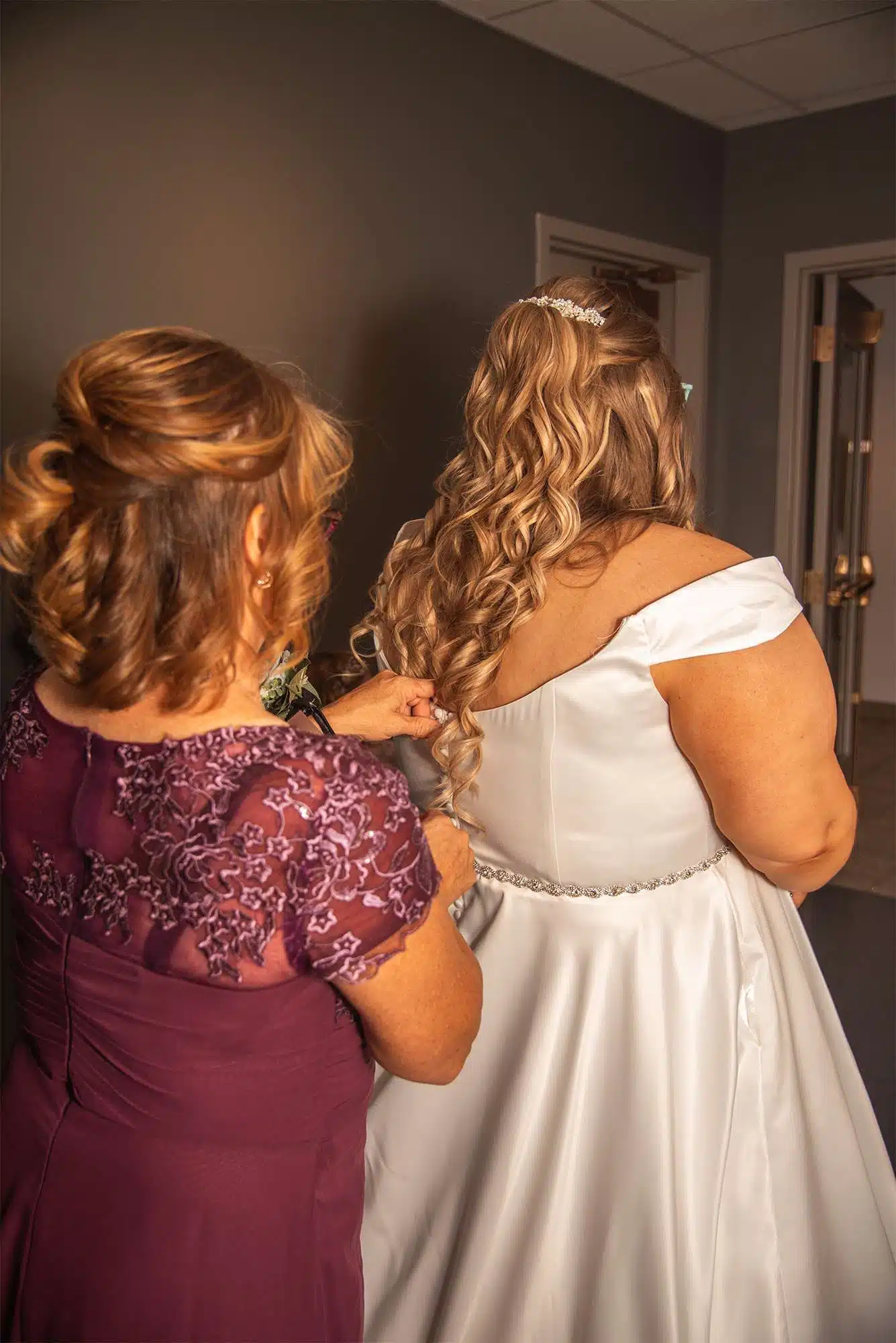 Teele at Studio 24 did the hair for the entire bridal party. “I have silky straight hair that can’t hold a curl at all but she was able to make sure that my hair didn’t drop any curls that day.”