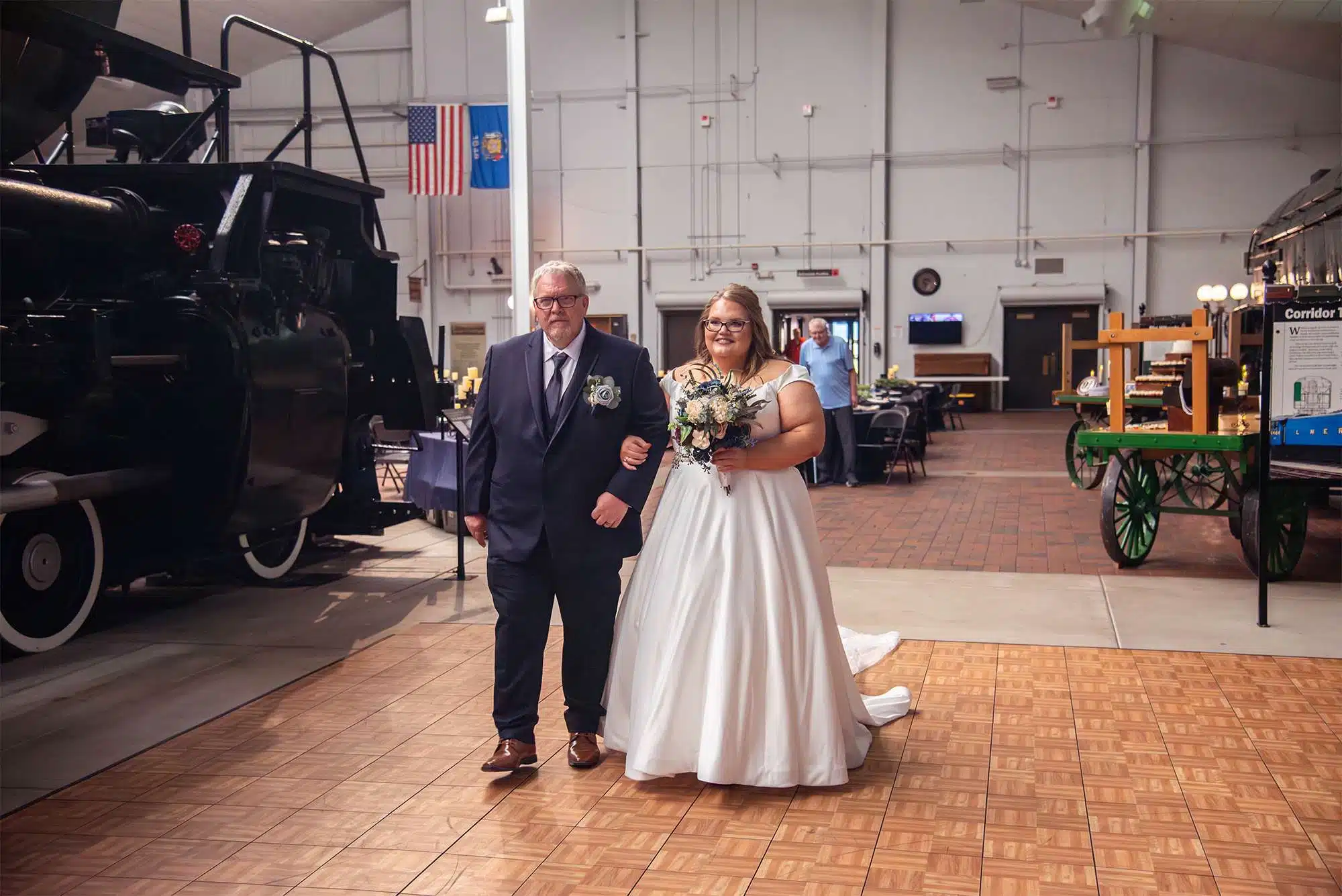 Sam and Jeff had gotten tickets to take their niece and nephew to “The Polar Express” at the National Railroad Museum. “I remember walking into the Lenfestey Center all decked out for the holidays and ‘The Polar Express’ and was just blown away. I remember looking at Jeff as we were leaving and saying this would be a great place to have a wedding.” Within 48 hours of getting engaged, Sam was on the phone booking the museum for her wedding.