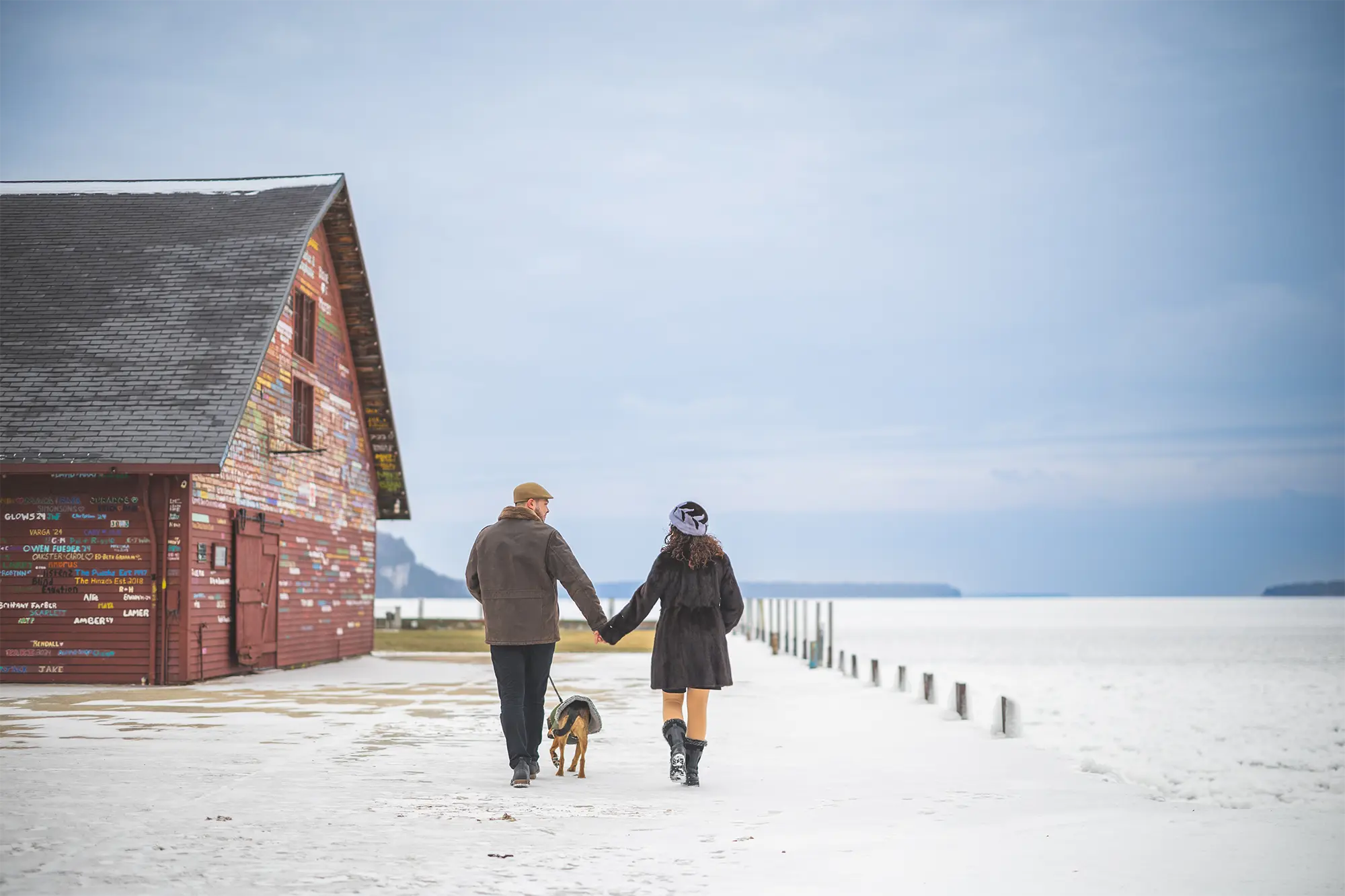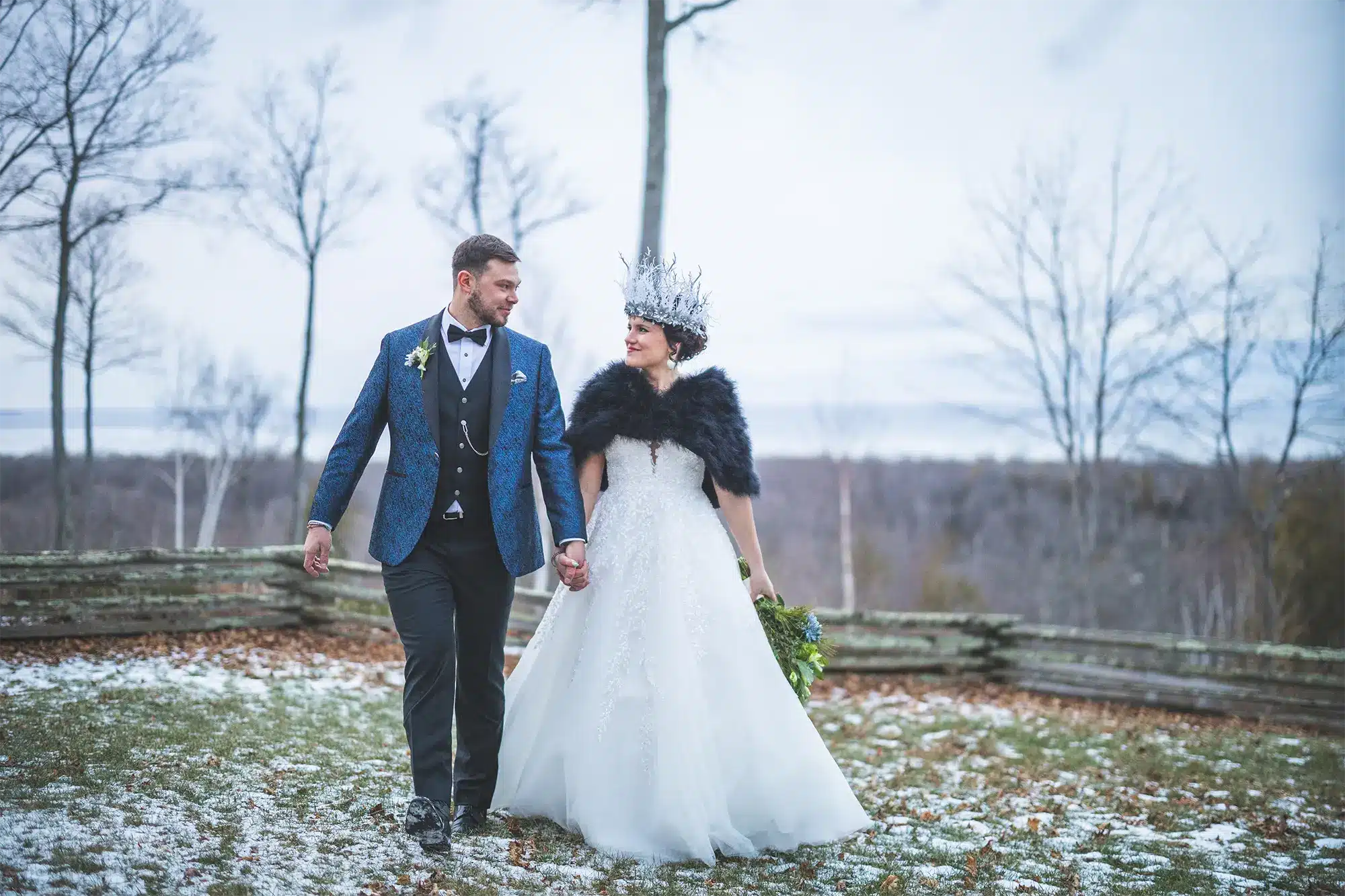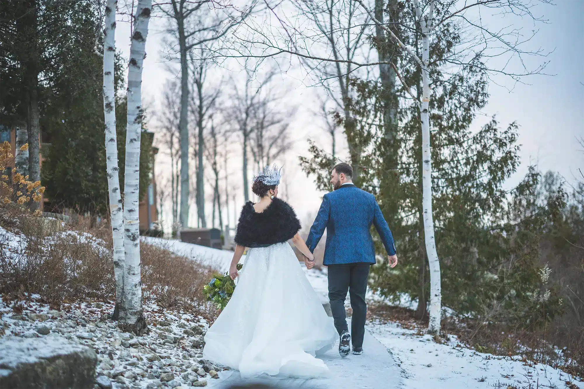 Chris Miller Photography shot the couple’s wedding images at the Landmark Resort. After the ceremony, the couple ventured outside the Carrington, where a fresh layer of snow created the perfect winter scene.