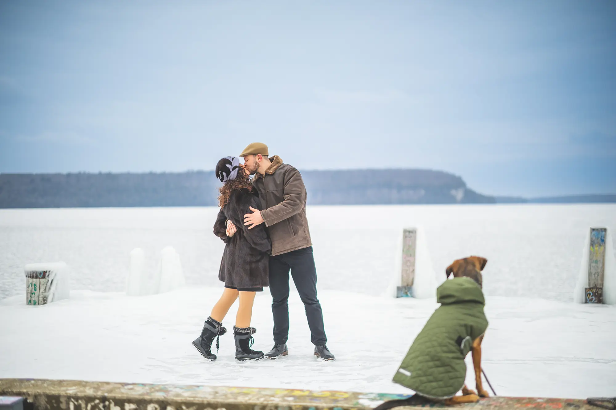 He started by handing Alexa her first clue, and from there, the adventure began — each riddle leading to a special spot from their relationship: their old high school where it all began, a favorite brunch café, and the icy Madison lakes where a giant blow-up Statue of Liberty head stood on the ice. Maxim had carefully hidden clues under benches, staircases, and even inside a tunnel.