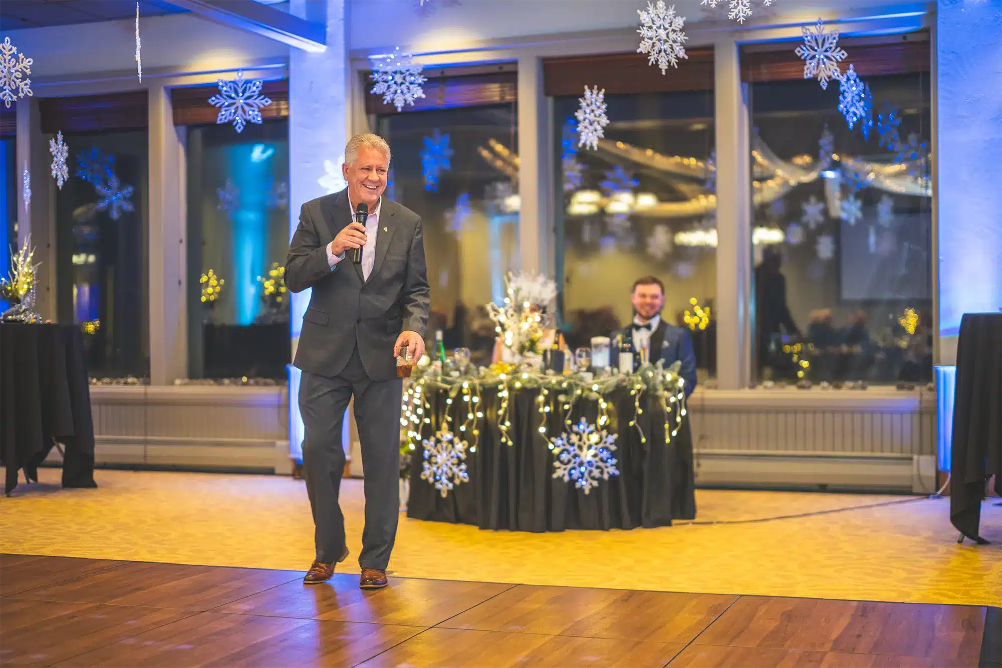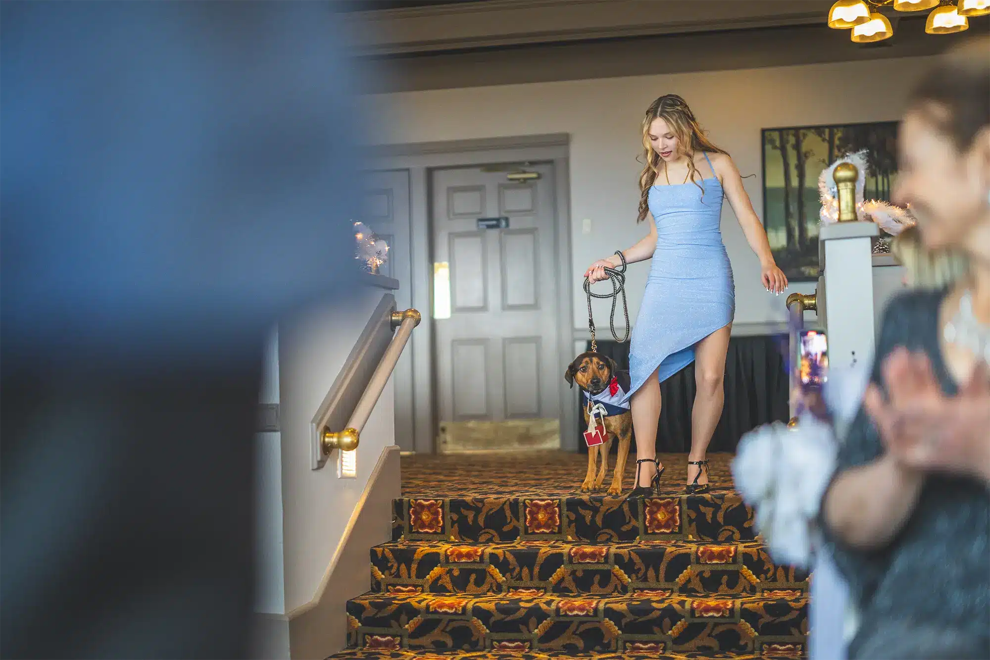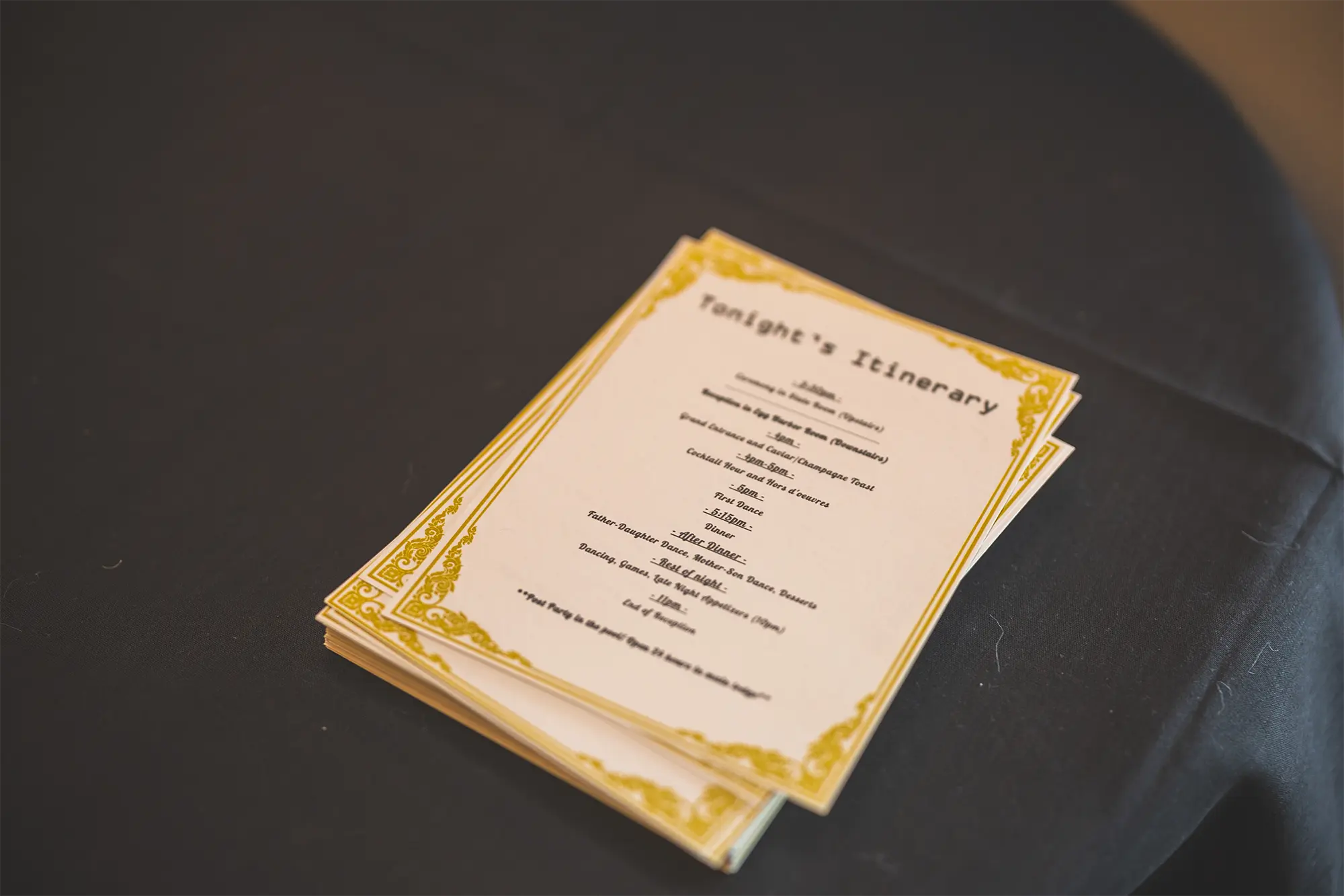 The reception was held at the Egg Harbor Room at The Landmark Resort, where guests were greeted with music, cocktails, and a warm, golden glow. The couple made their grand entrance to cheers from friends and family eager to celebrate.