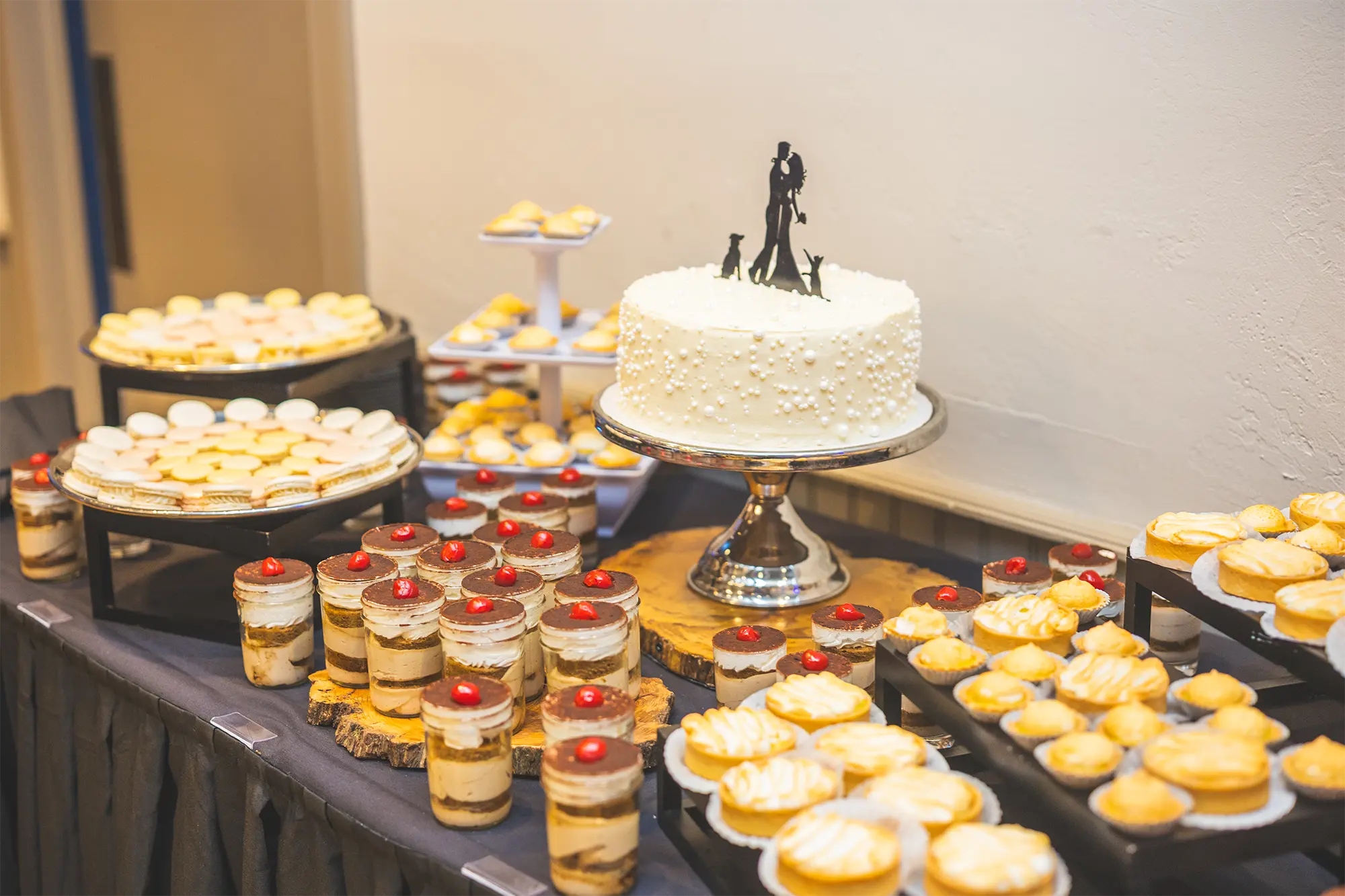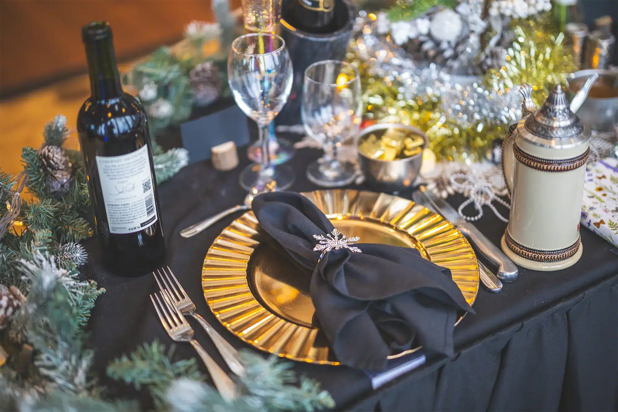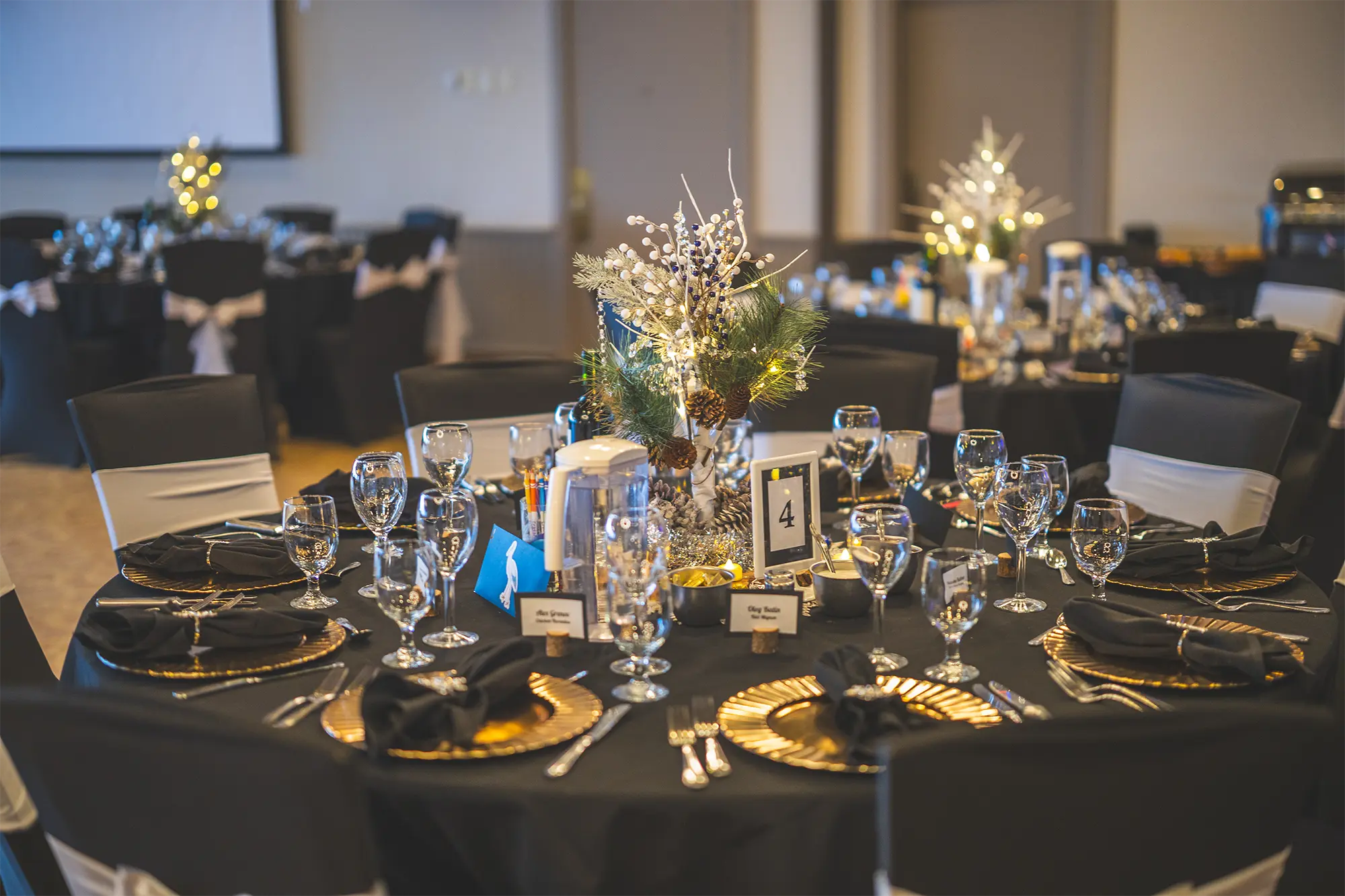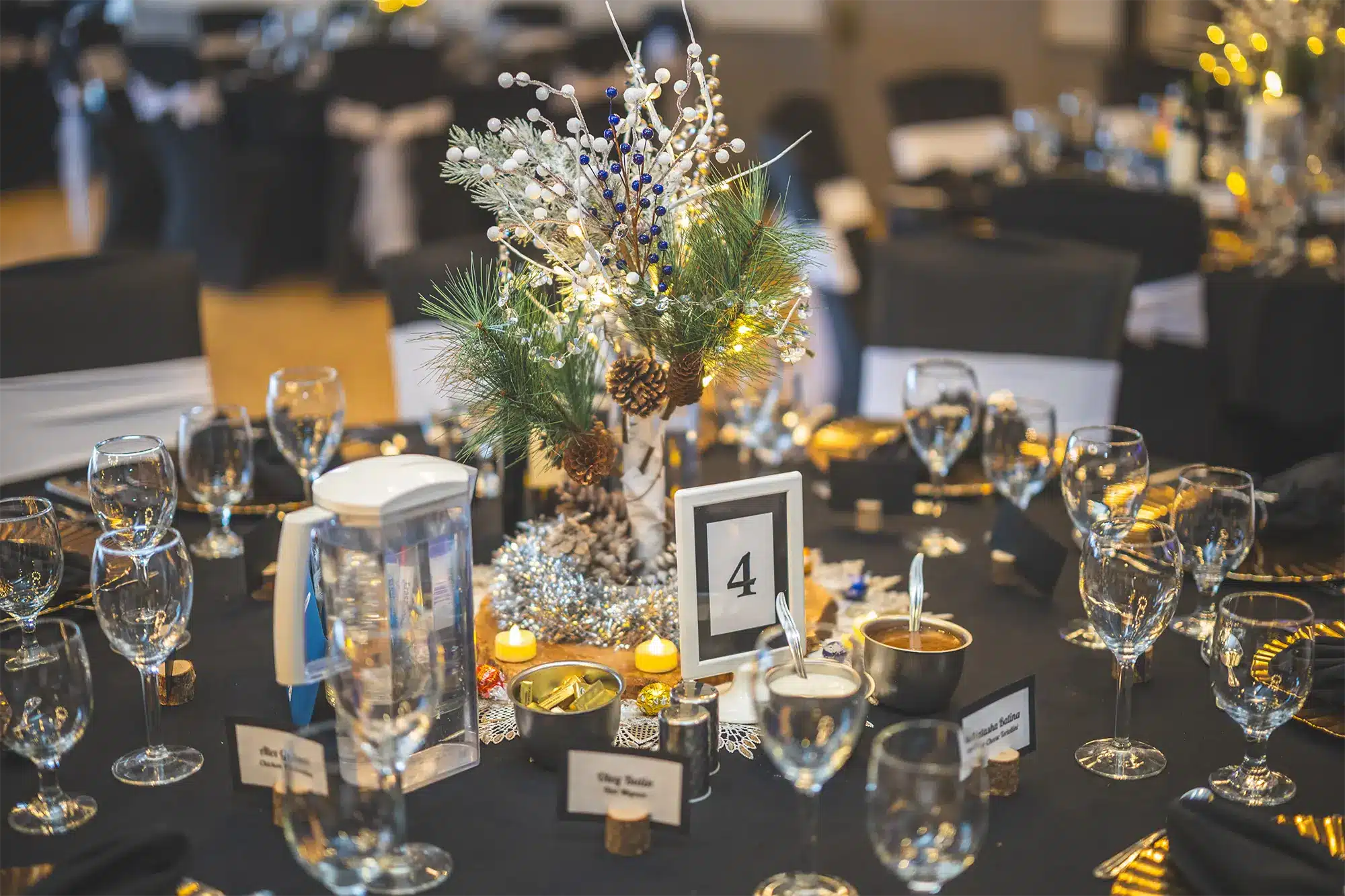 The couple’s wedding vibe was “Extravagant Winter” — a mix of royal blue, gold, silver, and forest green that made the entire space feel both magical and warm. The décor was truly a labor of love: 120 handmade snowflakes hung from the ceiling, and birch tree centerpieces softly glowed across the room. Every detail was created with the help of family and friends, adding even more meaning to the celebration.