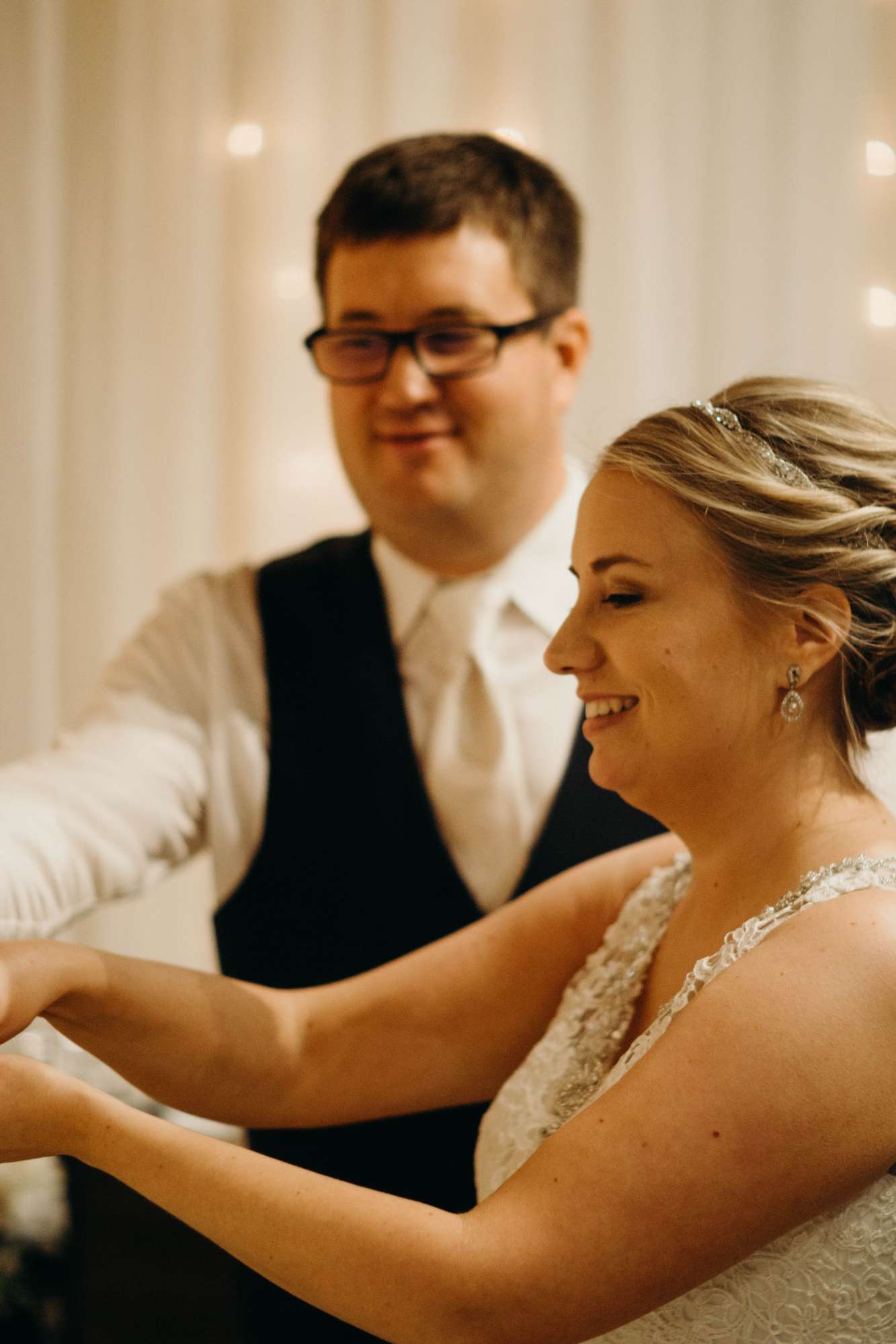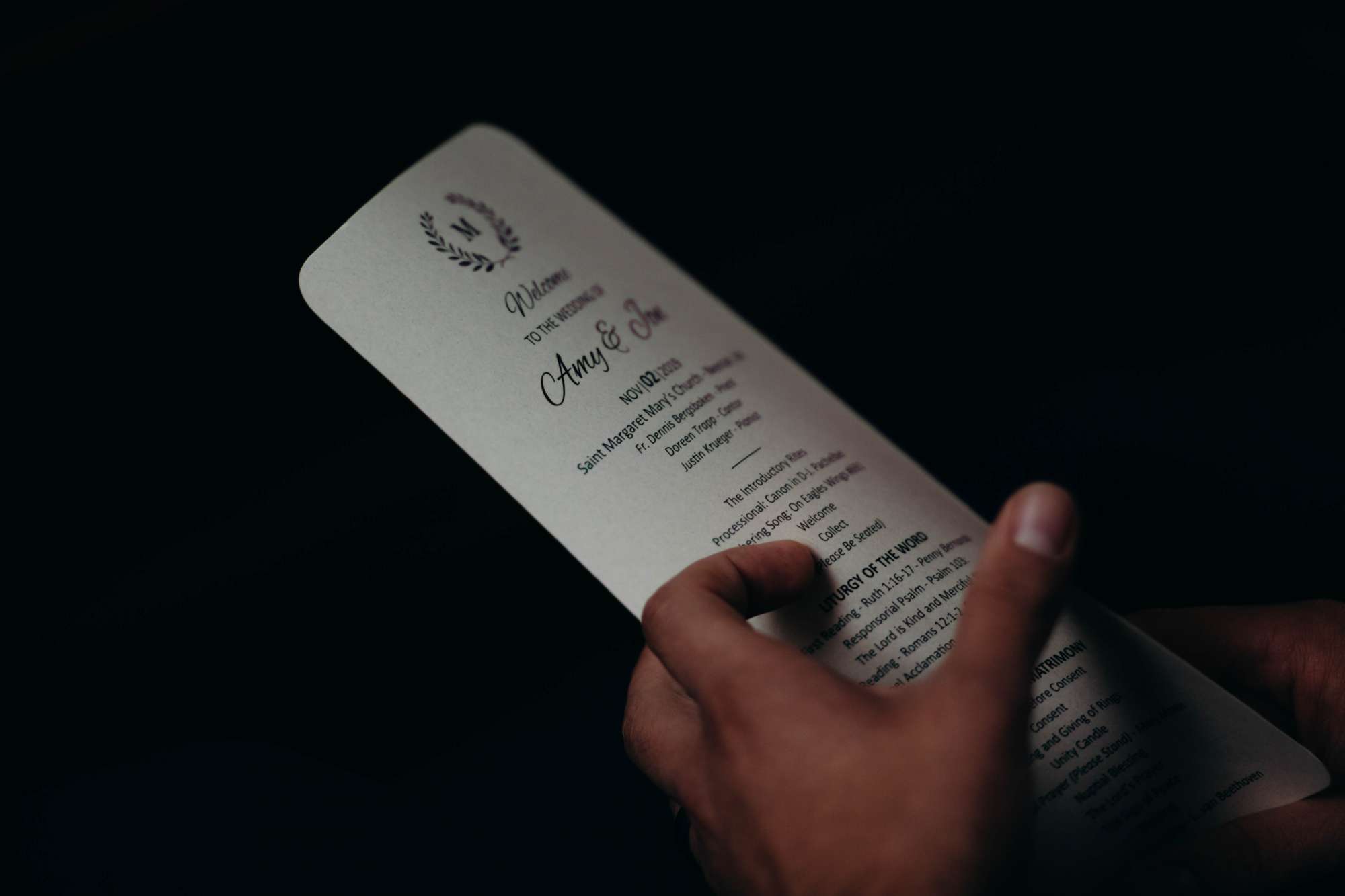 Amy and Jon planned a November wedding with a traditional Catholic ceremony at the church where Amy’s parents were married. One of their favorite parts of the ceremony was gaining a second flower girl two days before the wedding. “One of my cousins came in from out of town, and she has a little girl a few months older than my niece, Morgan,” Amy explains. “Morgan was telling her how she was the flower girl, and my cousin’s daughter asked if she could be one too!” It just so happened they had purchased two flower girl dresses to decide between — perfect for a surprise addition to the bridal party! “It ended up being the absolute sweetest thing to see those two walk down the aisle together holding hands. It will be something our whole family will remember.”