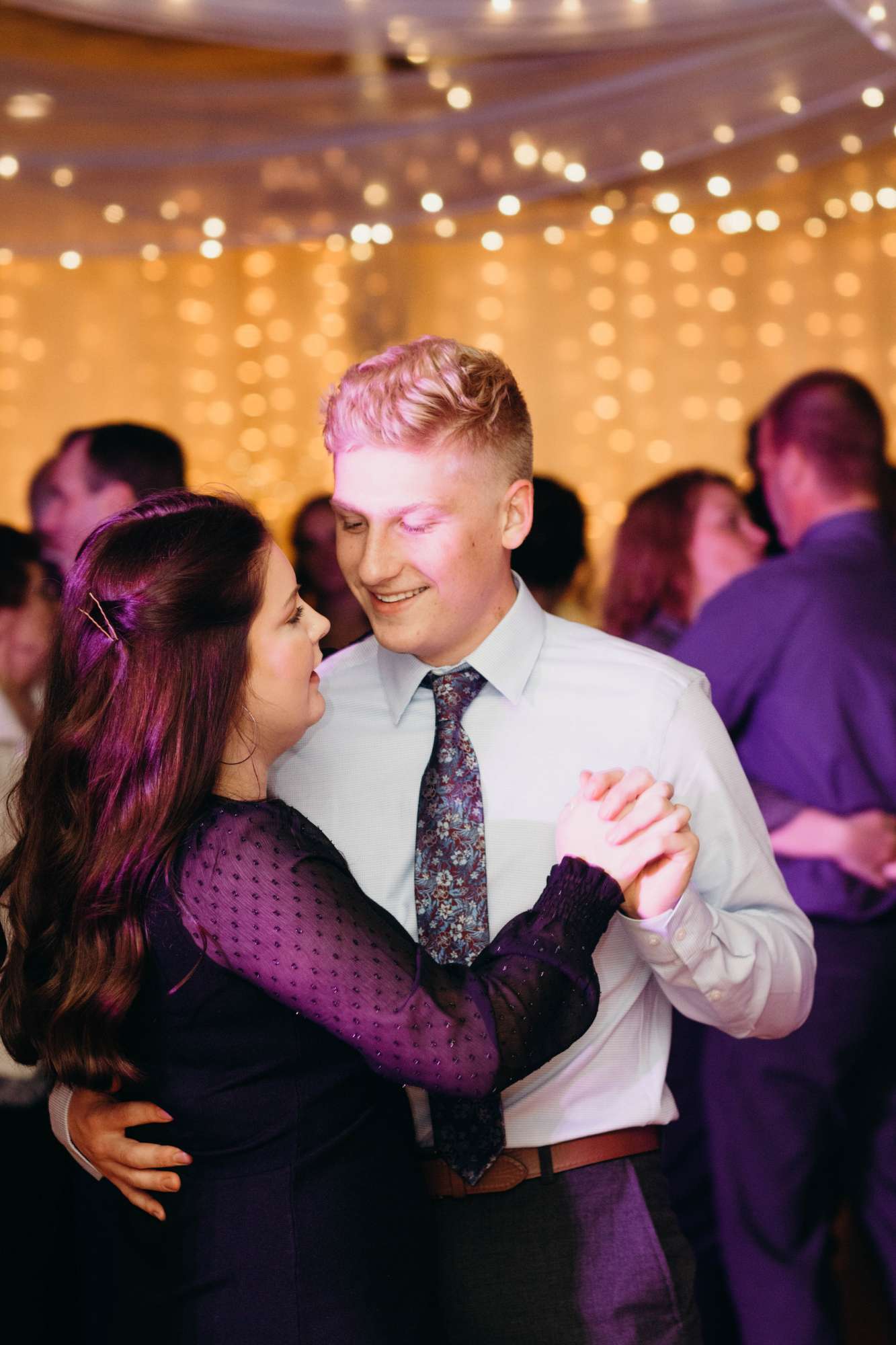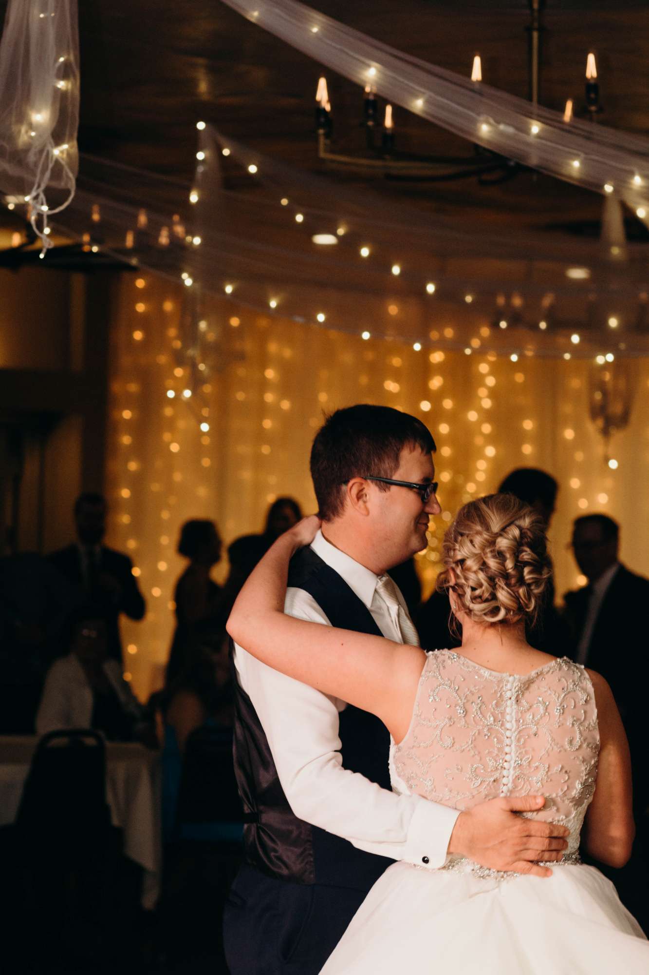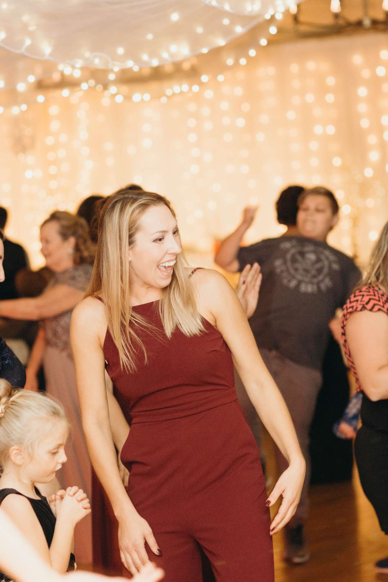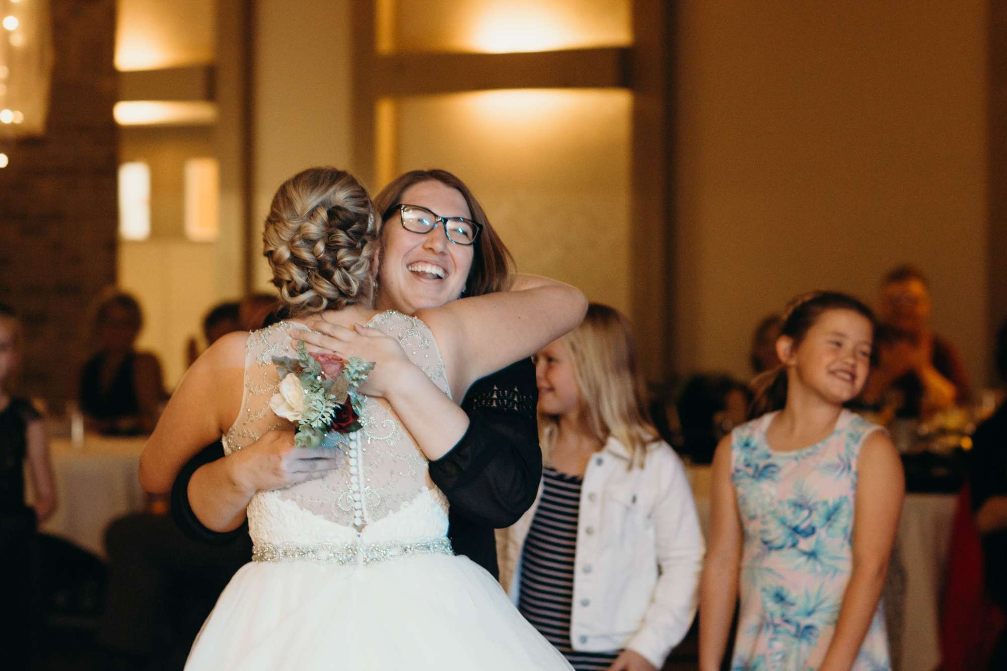 After dinner came dancing — one of Amy’s favorite parts of the night. “I had my dad pick our song, and I didn’t know what he picked until that night. My dad had the DJ start with an instrumental song. I was very confused and kept waiting for the lyrics to start. Then, after about 30 seconds, the DJ switched to the song ‘Amie’ by Pure Prairie League. It was the song that inspired my name, and I grew up dancing to it with my dad. About halfway through the song, the DJ invited my mom, sister, and brother up to dance, too. Our two flower girls joined as well!”
