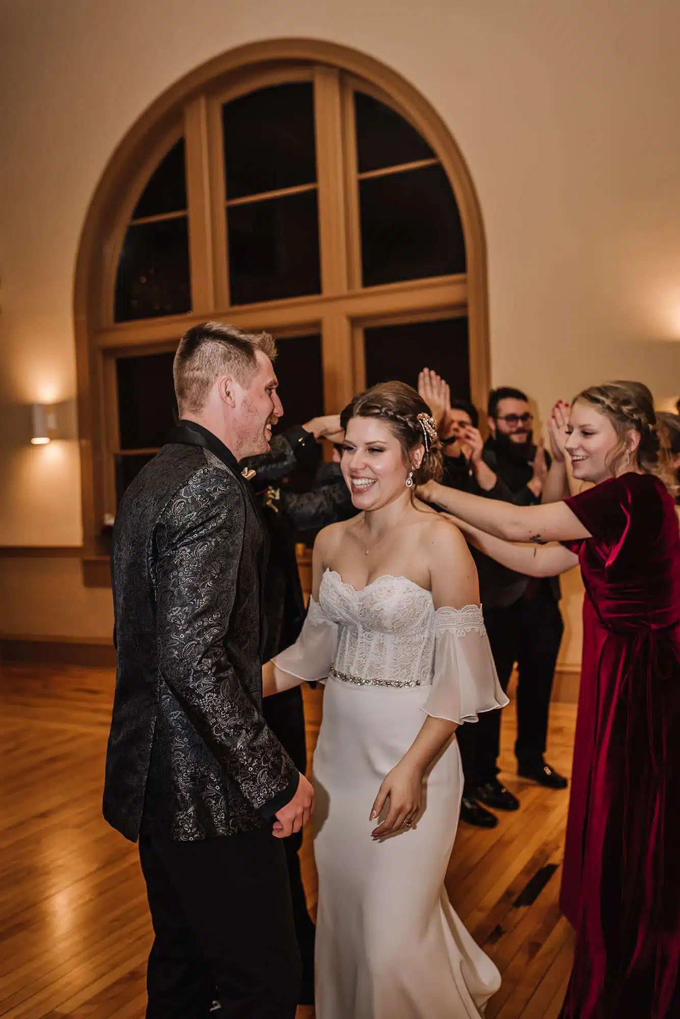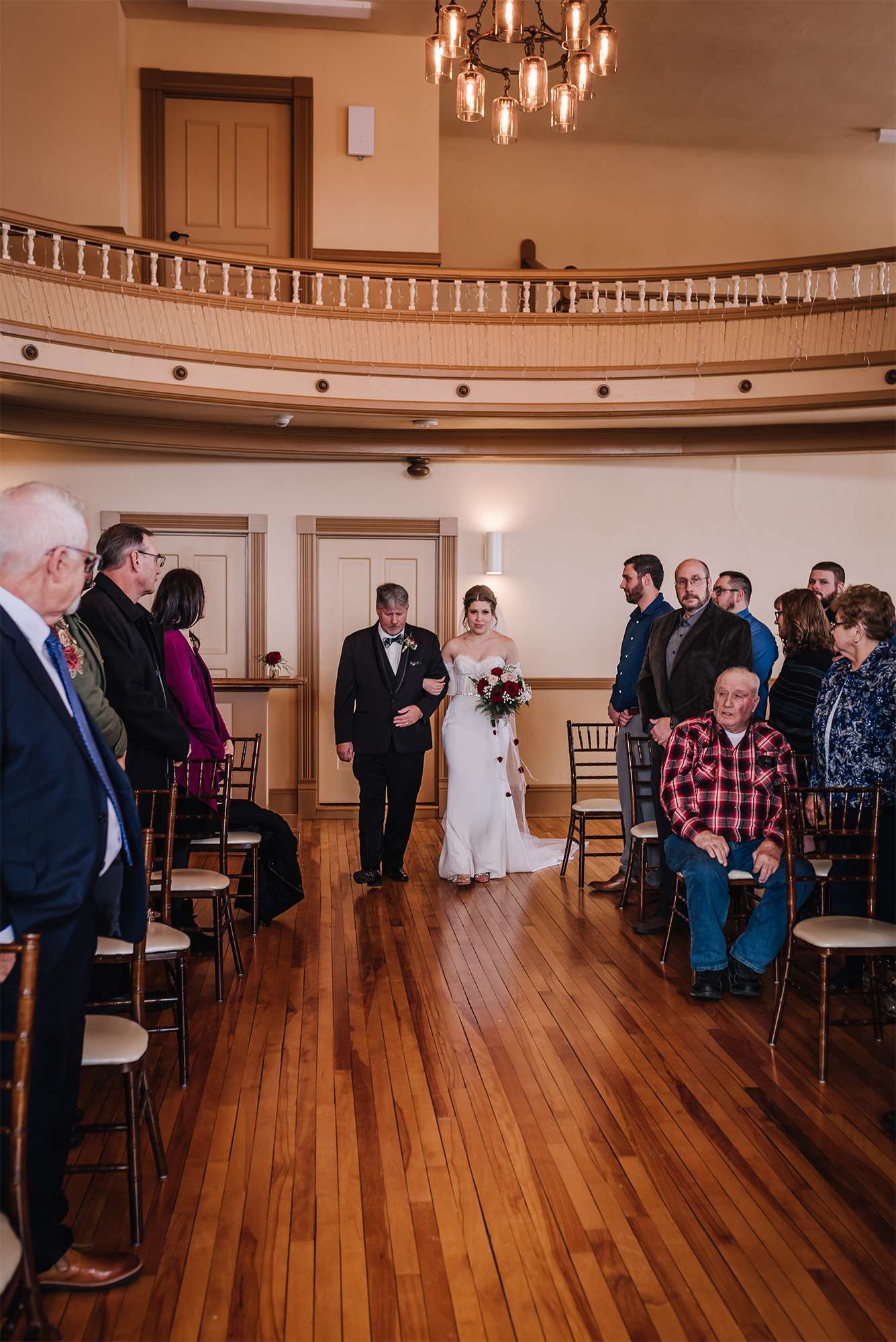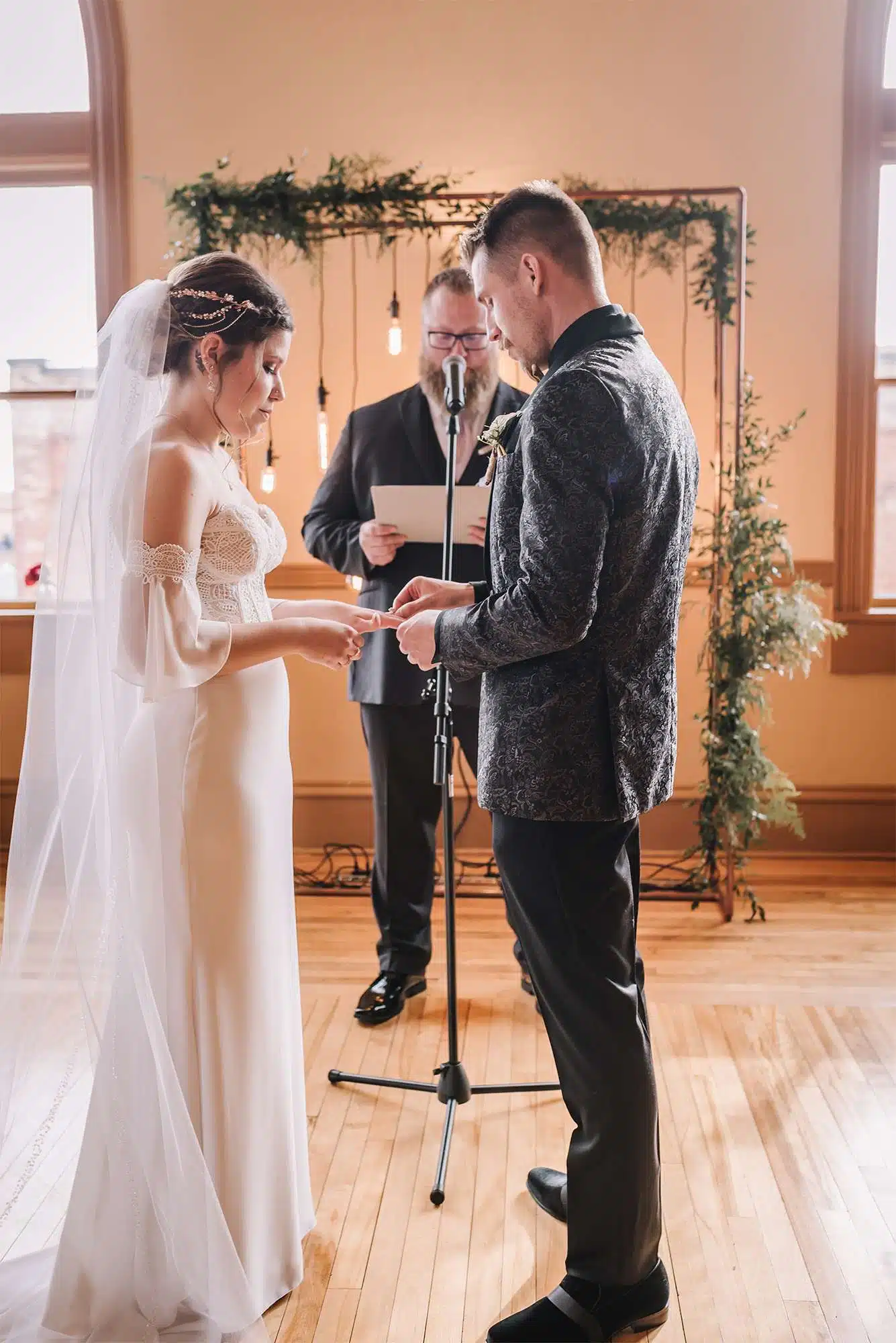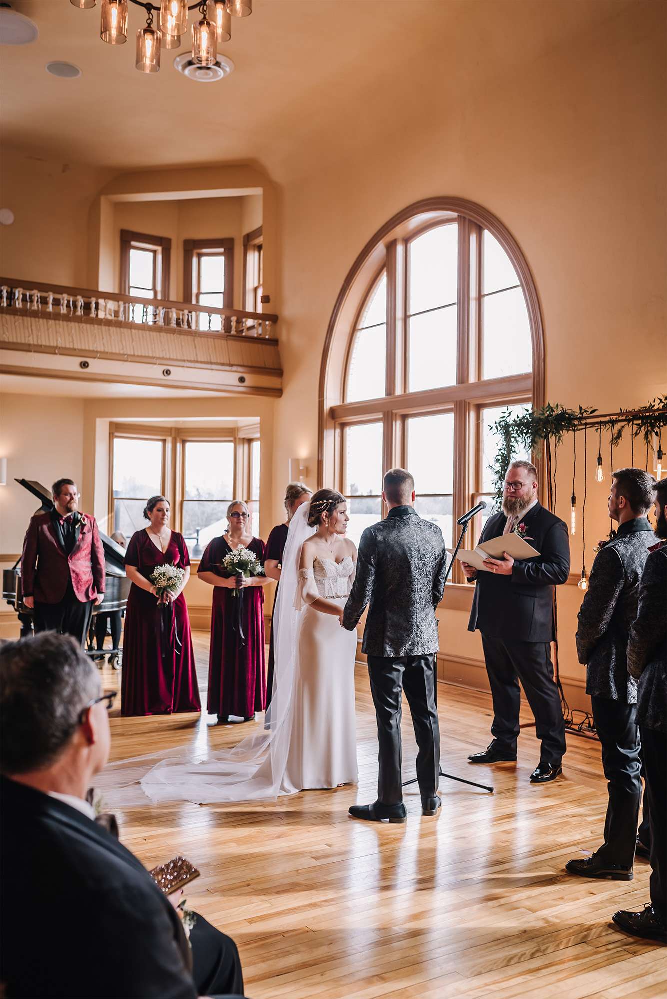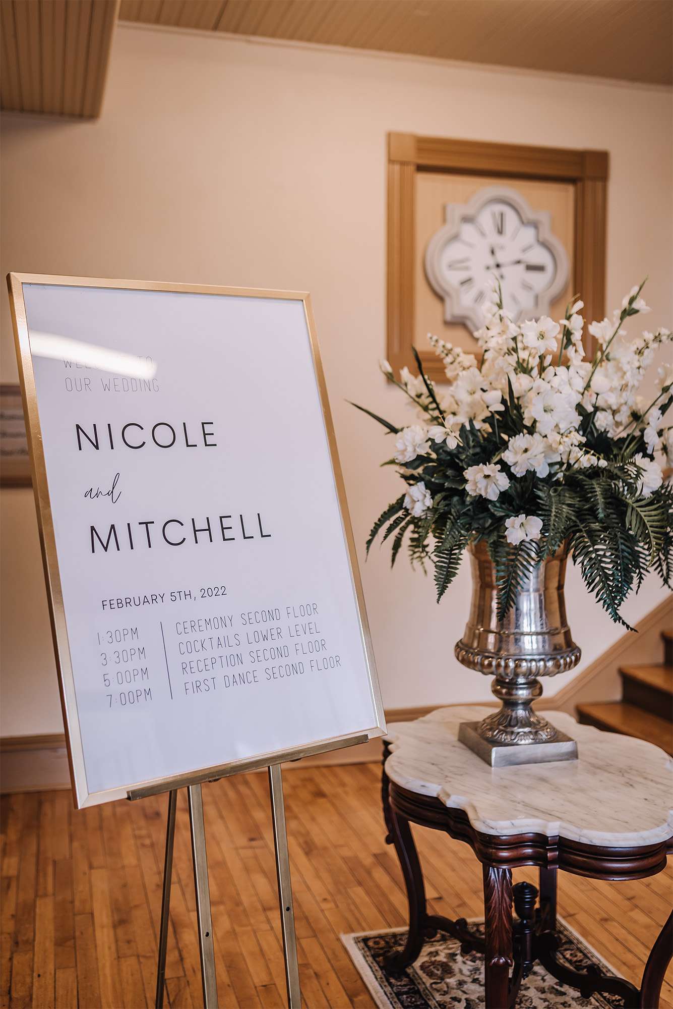 Mitch and Nicci’s wedding was simple and classic with a dash of vintage. Their Danes Hall ceremony was officiated by one of their friends, who surprised them with personalized vows on the day of the wedding. Nicci’s former middle school choir teacher played the piano, which was also super special. “She took three songs and learned them just for our wedding day!”