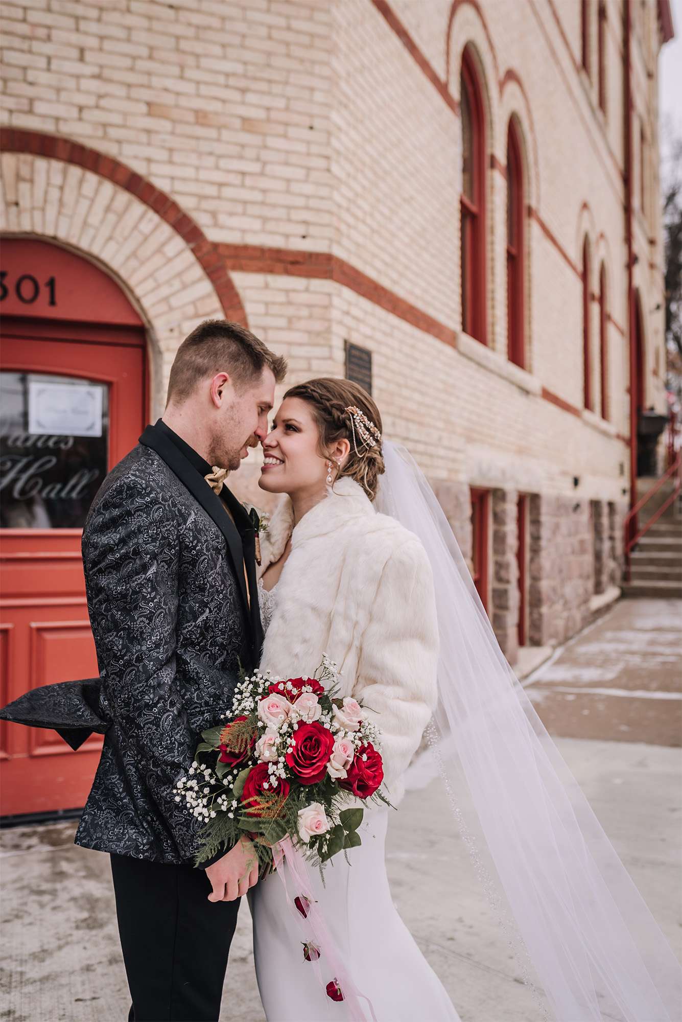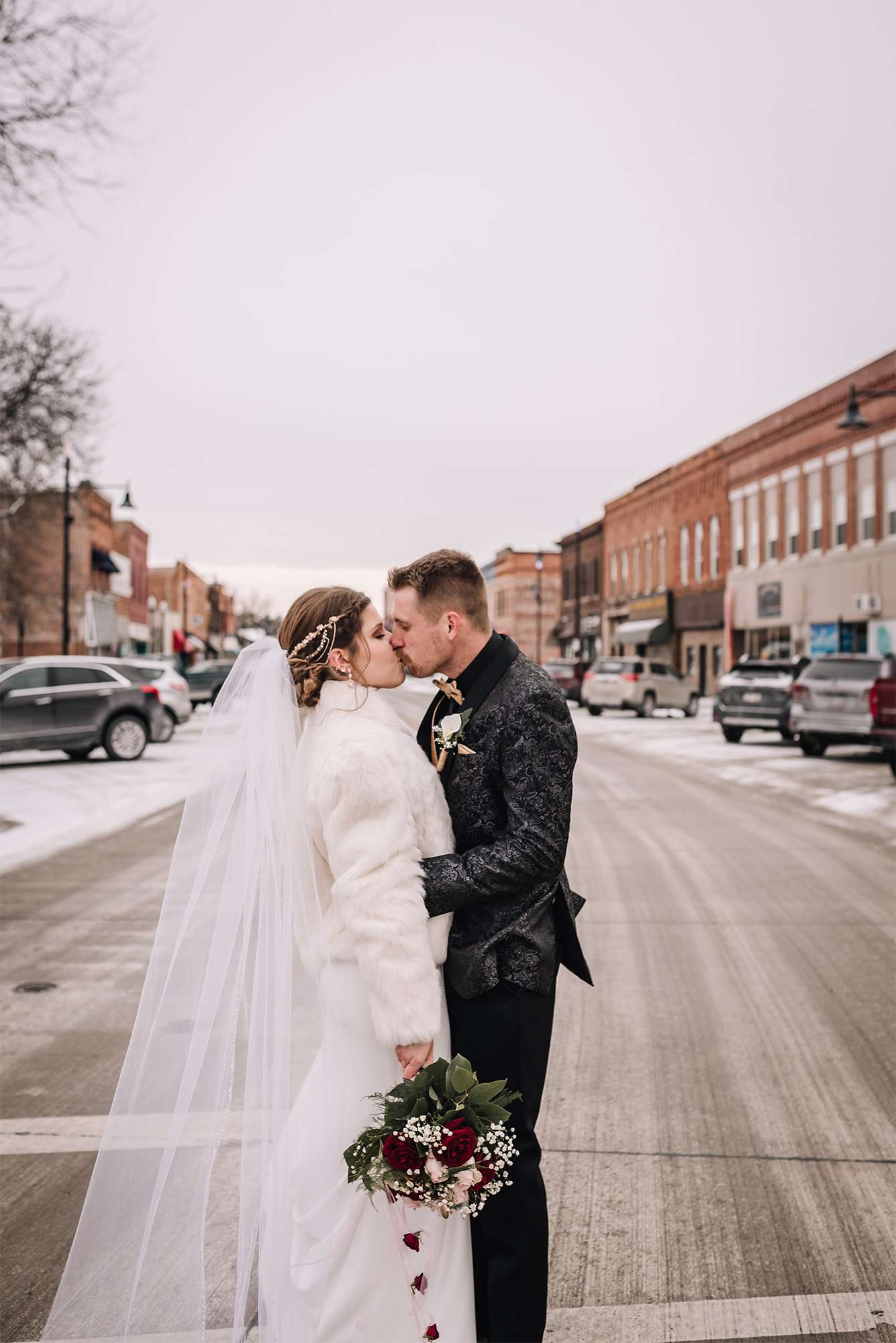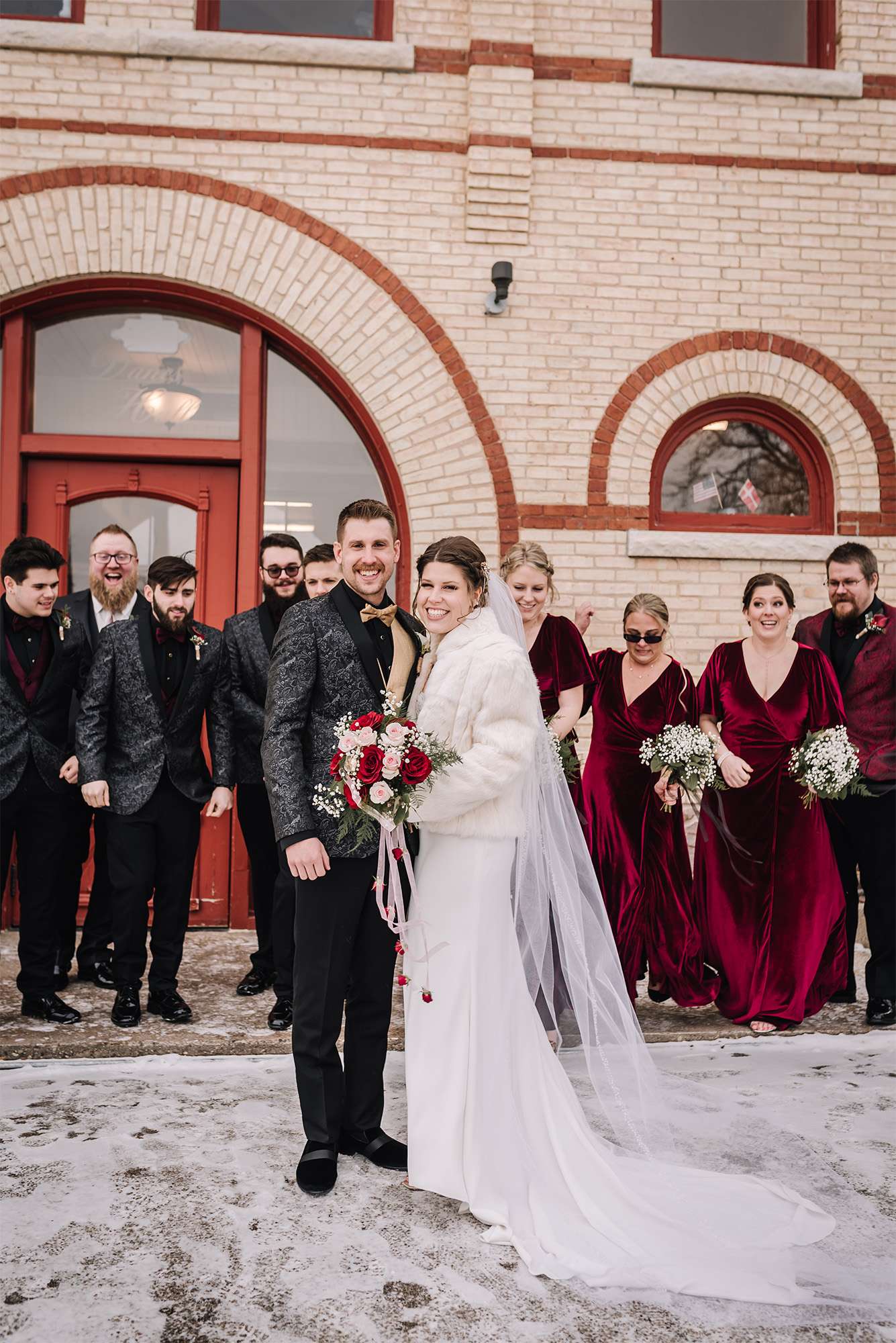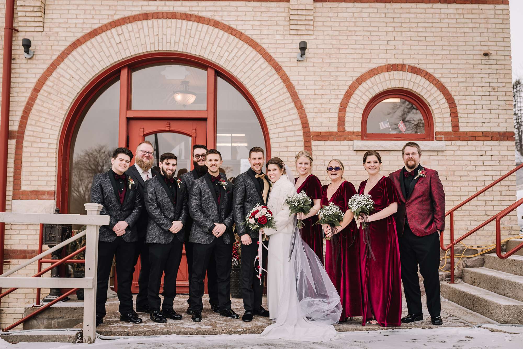 After trying on 20+ dresses, Nicci found her Christina Wu gown at Elaine’s Bridal and Events in Appleton. “Elaine’s was our last stop of the day, and they had a trunk show going on in their store. After trying on a lot of wedding dresses, my consultant said she knew a perfect dress—and she did, because I said YES!” For Mitch’s formalwear, they turned to Victorian Bridal in Waupaca to bring his look together.