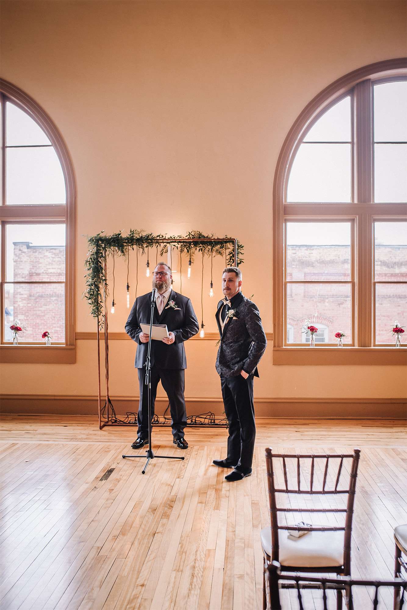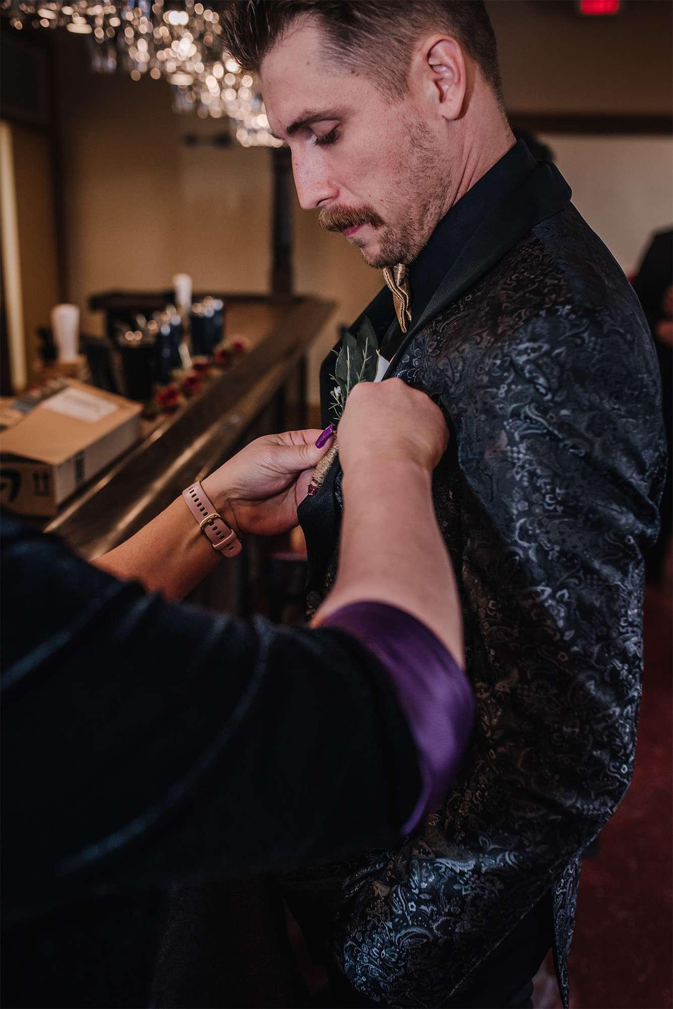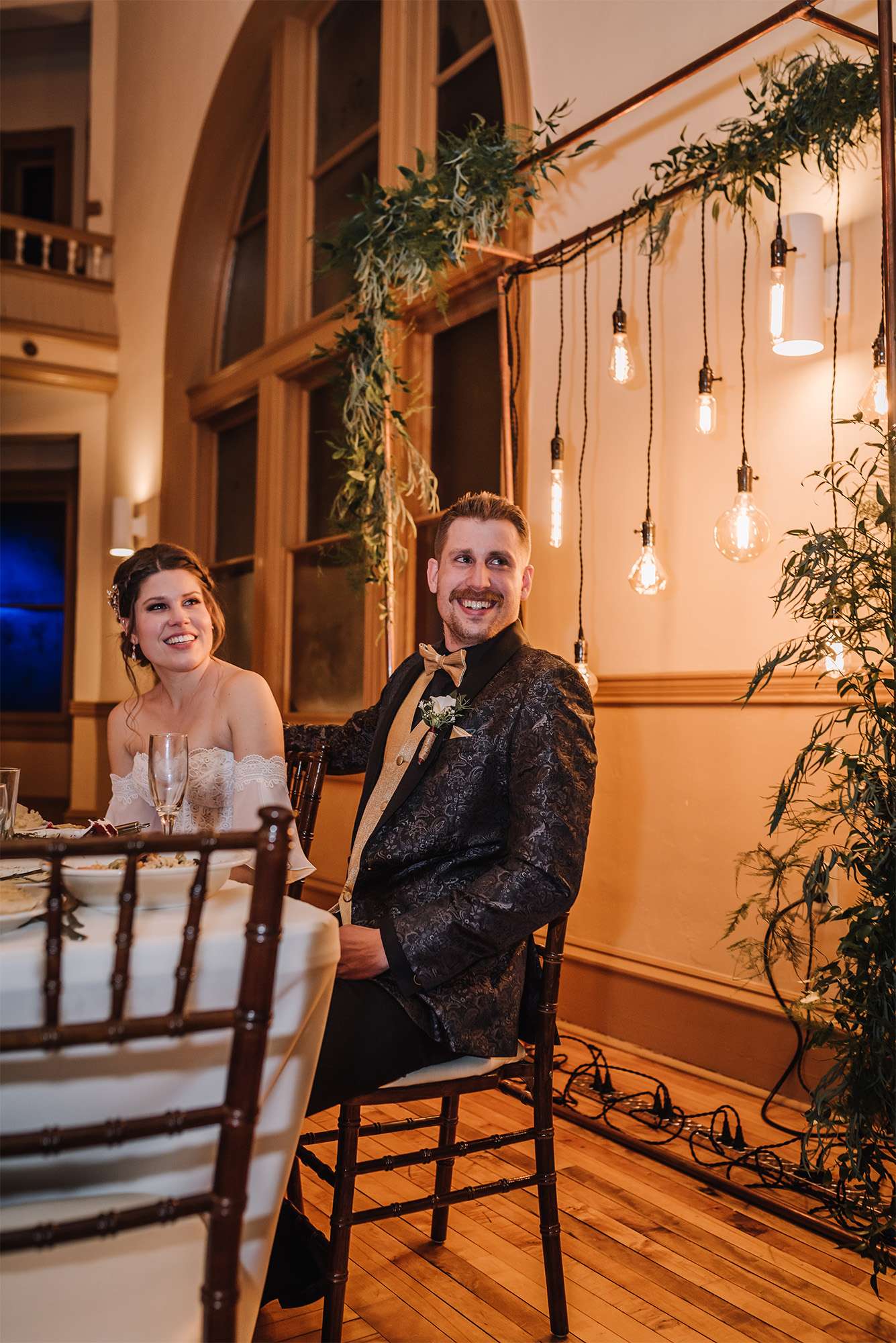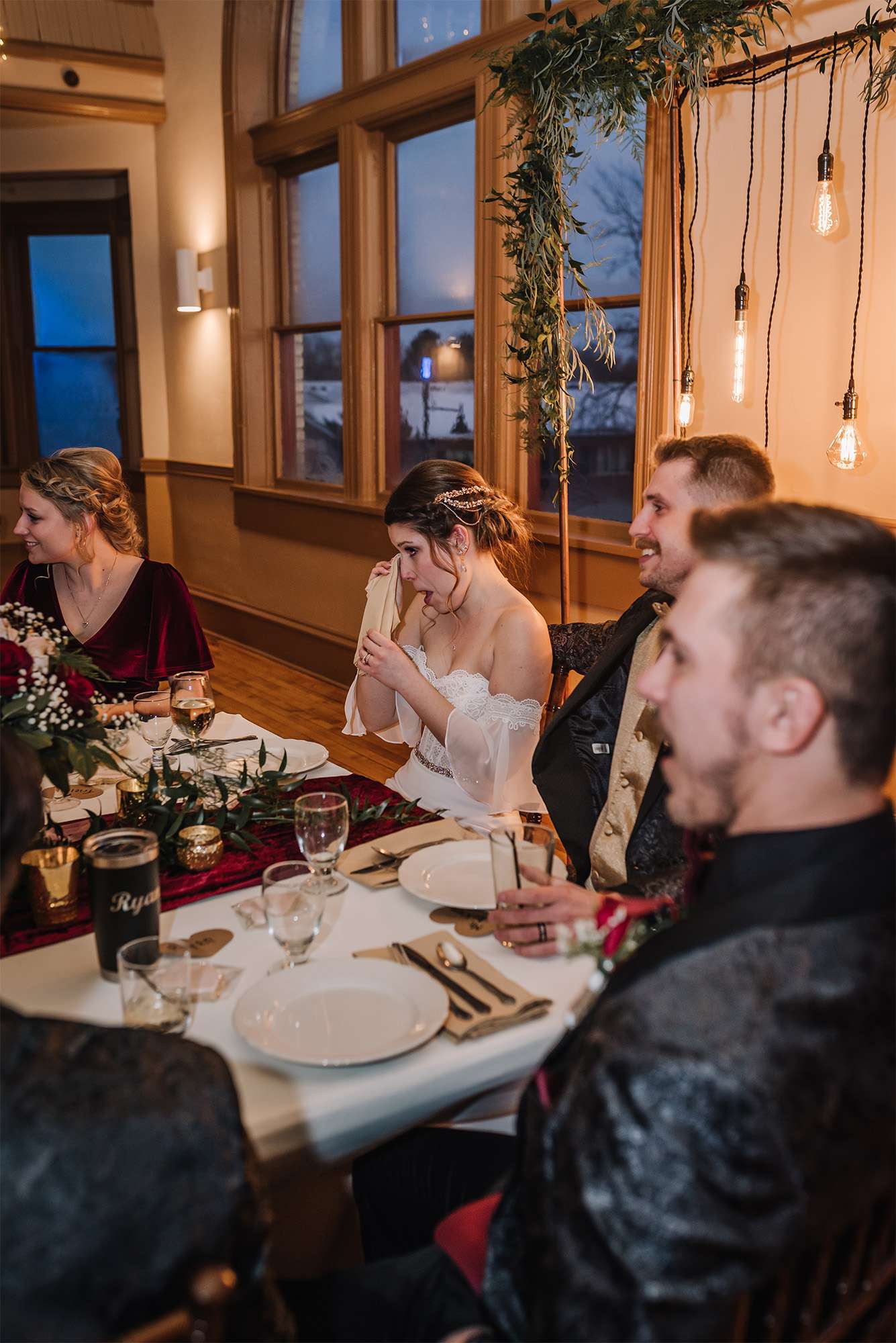 After trying on 20+ dresses, Nicci found her Christina Wu gown at Elaine’s Bridal and Events in Appleton. “Elaine’s was our last stop of the day, and they had a trunk show going on in their store. After trying on a lot of wedding dresses, my consultant said she knew a perfect dress—and she did, because I said YES!” For Mitch’s formalwear, they turned to Victorian Bridal in Waupaca to bring his look together.