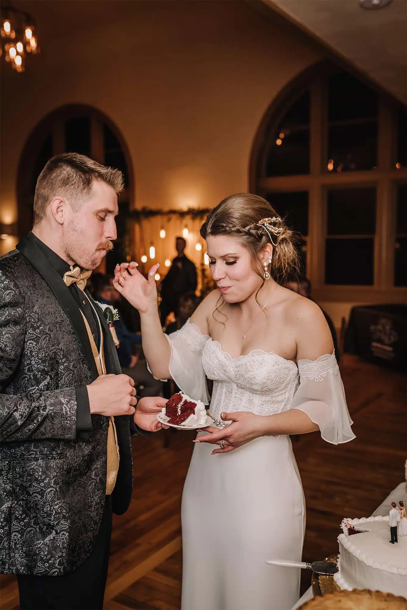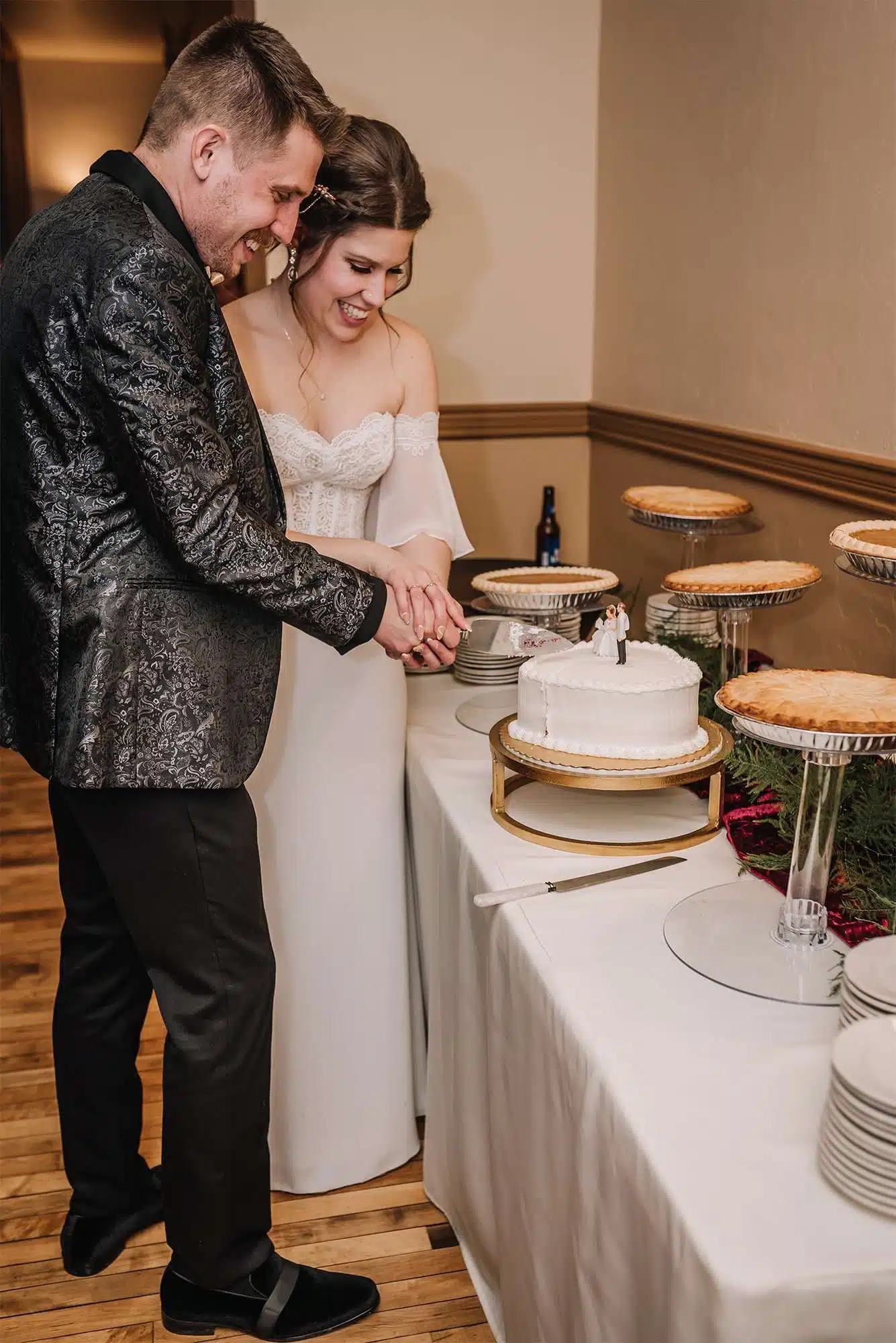 The reception was catered by Crystal Falls of New London, bringing all the deliciousness from charcuterie boards and chicken pesto to dinner rolls and pies. There was also a heart-shaped red velvet cake and pink heart-shaped sugar cookies as a wedding favor. The beverages came courtesy of Danes Hall with were three signature drinks, one for each of Mitch and Nicci’s three dogs: Zoey’s Martini, Lily’s Whiskey Margarita, and Gracie’s Raspberry Mocktail. “Our favorite part of the reception was by far the drinks—and the speeches!”