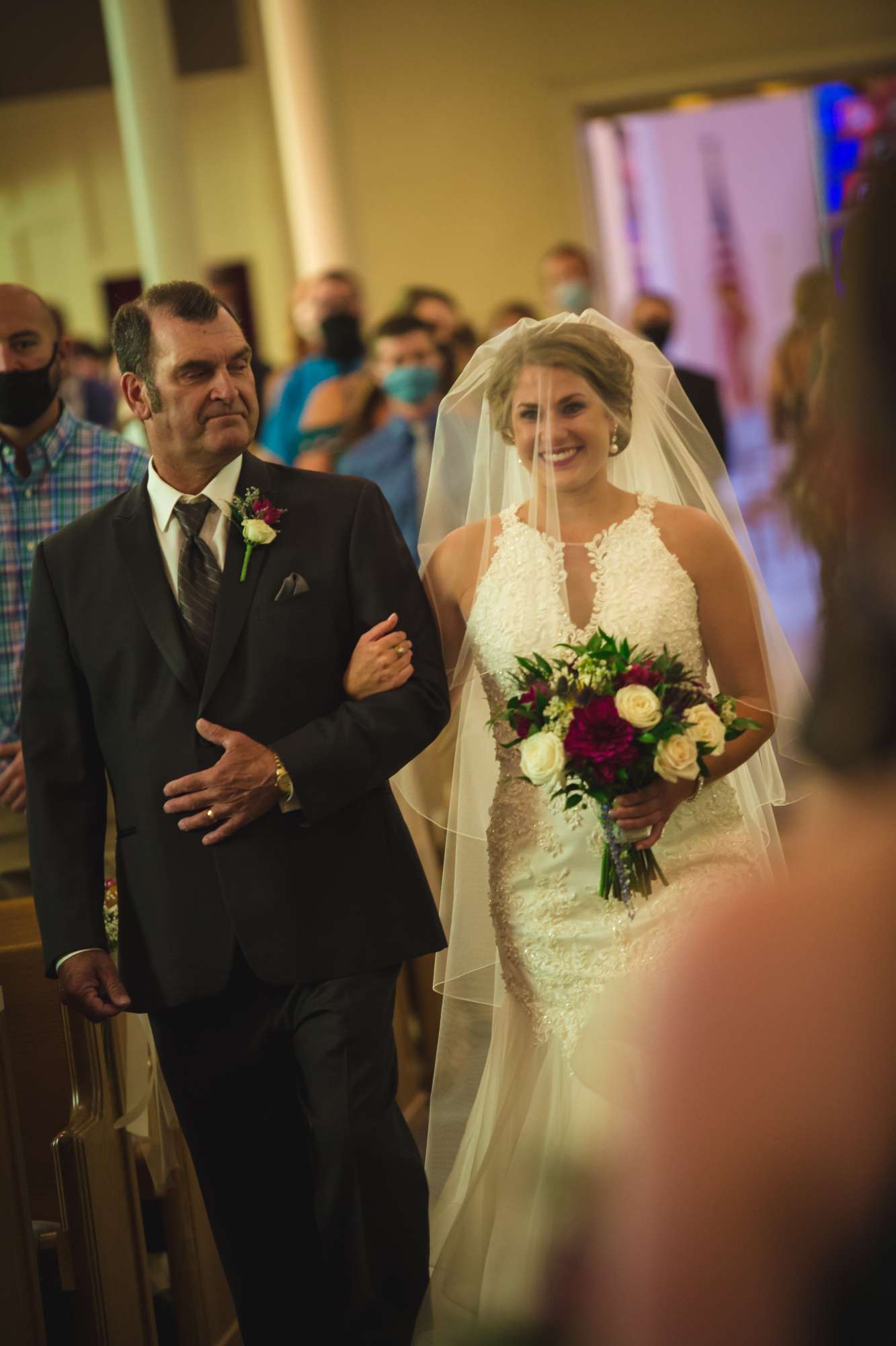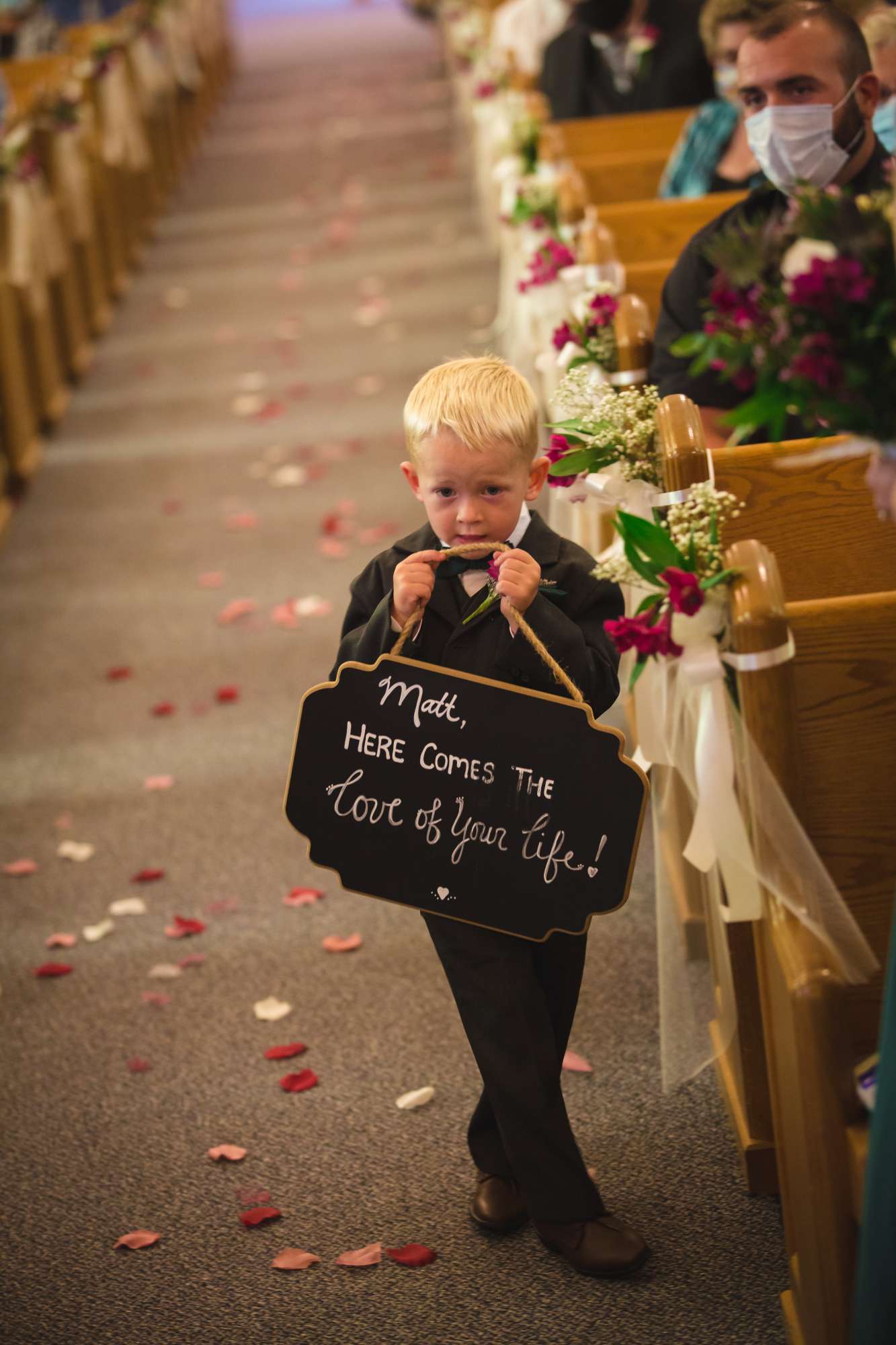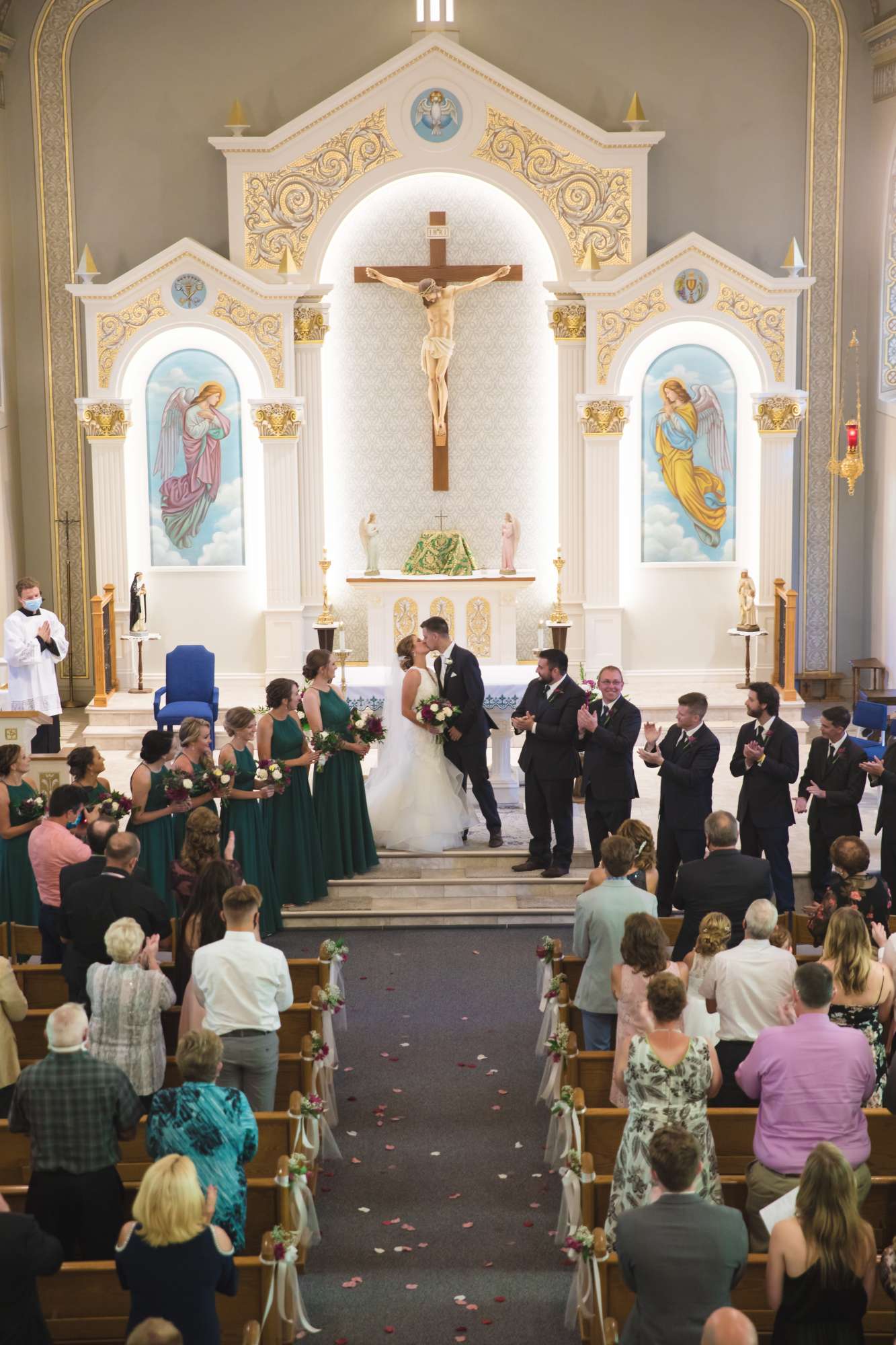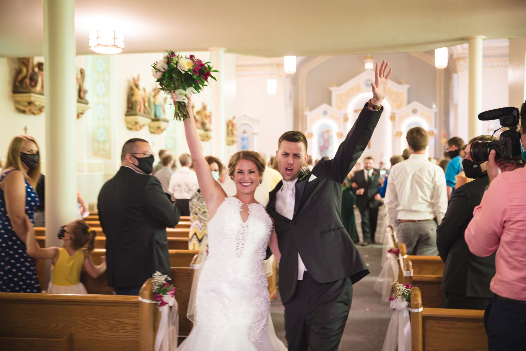 At the church ceremony, guests were required to wear masks and maintain as much distance as possible. “The church also had a live stream of the ceremony so family and friends that chose not to attend could still watch. We loved hearing people say that they watched it, and we were glad they could still be a part of it. The ceremony was so special!”