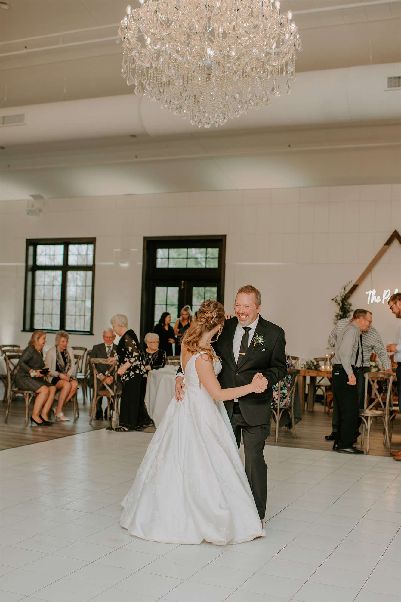 Kaitlyn and Sean planned an April wedding at the Ledgecrest Reserve. “We liked how it was a complete blank slate, but also still a style we both loved.” They ended up going with a neutral color palette, natural greenery, and leather accents. “Black complimented the space really well and it looked so sharp in photos. It was so easy to work with and didn’t have to worry about things matching. And black never goes out of style.”