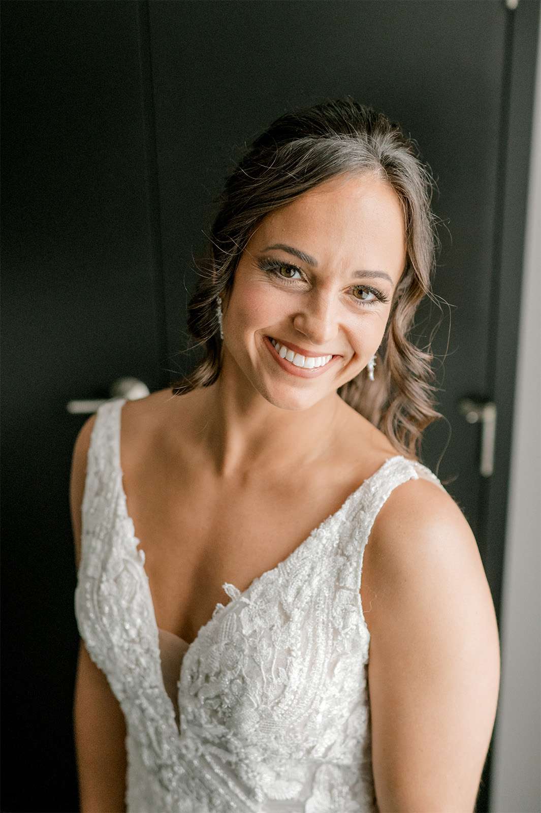 The couple decided to get married somewhere between Austen’s family in northeast Wisconsin and Giana’s family in northern Illinois. Unfortunately, this meant the couple had to do a lot of planning without visiting with vendors or touring spaces. But virtual tours of venues and email and video chats with vendors made the planning possible, though, the couple admits that it was stressful planning a wedding long-distance. Eventually, they decided to have both their ceremony and reception at the Hotel Retlaw in Fond du Lac.