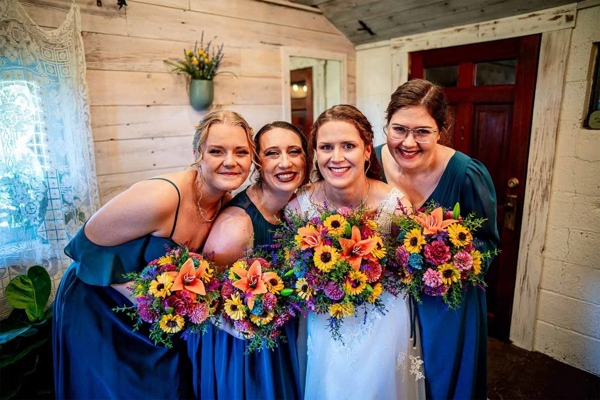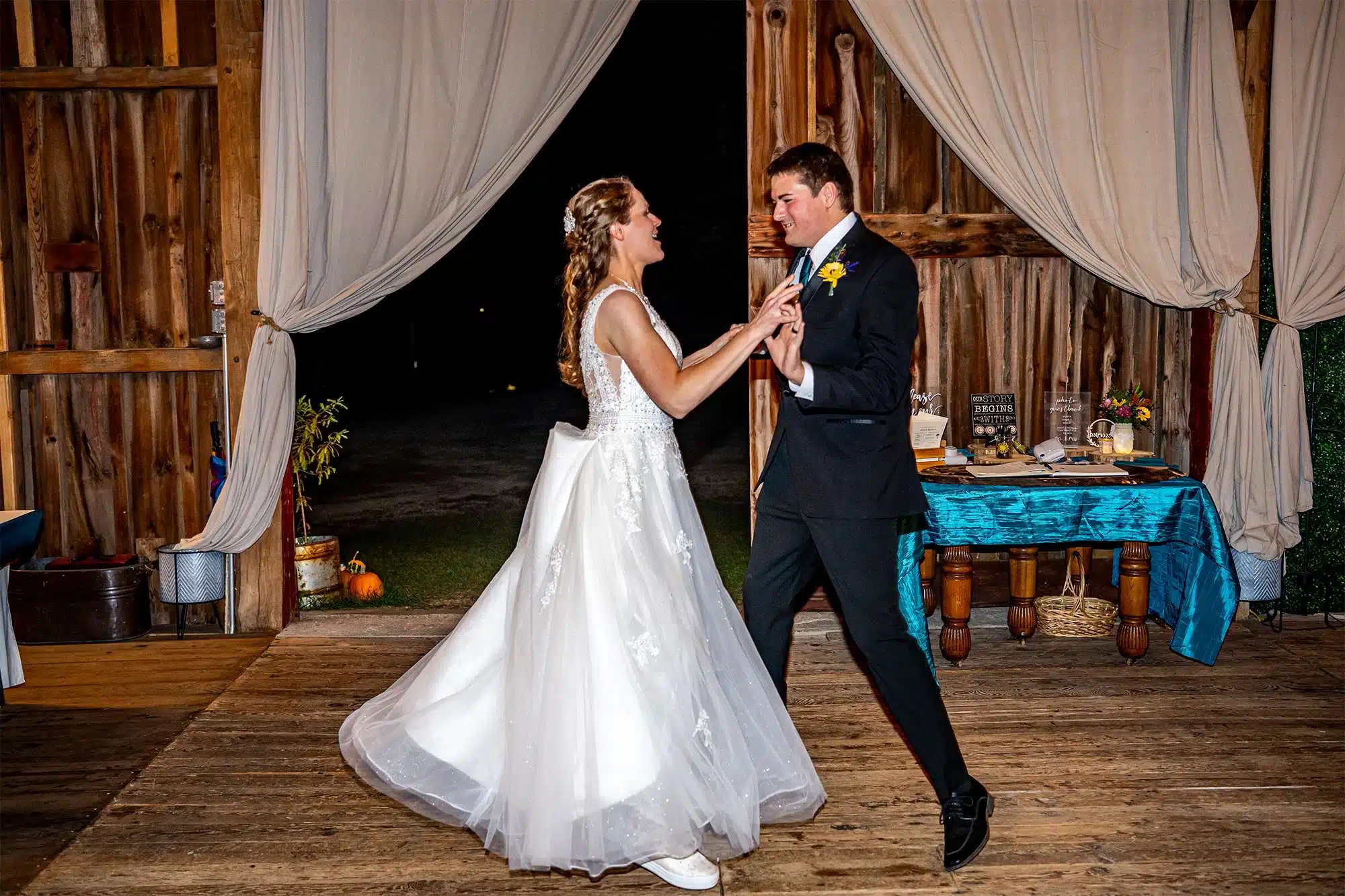 Erin and Quinten held their reception inside the barn at Woelfel Homestead Farm Venue. Guests feasted on delicious BBQ from Parker John’s and cupcakes from More Icing Please. But Erin says one of the best parts was getting to spend time with everyone while they ate. During speeches, the couple’s extended family surprised them by singing a blessing to them. Following the dinner, the dancing began. Erin’s Aunt Lori led the group in the Loco-Motion. “There was an 80-person train going through the venue!” After most of the guests stopped dancing, the DJ even played around thirty minutes of back-to-back Taylor Swift songs for the bride and her friends. Guests were also treated to a late-night snack of gourmet popcorn from Faris Popcorn.