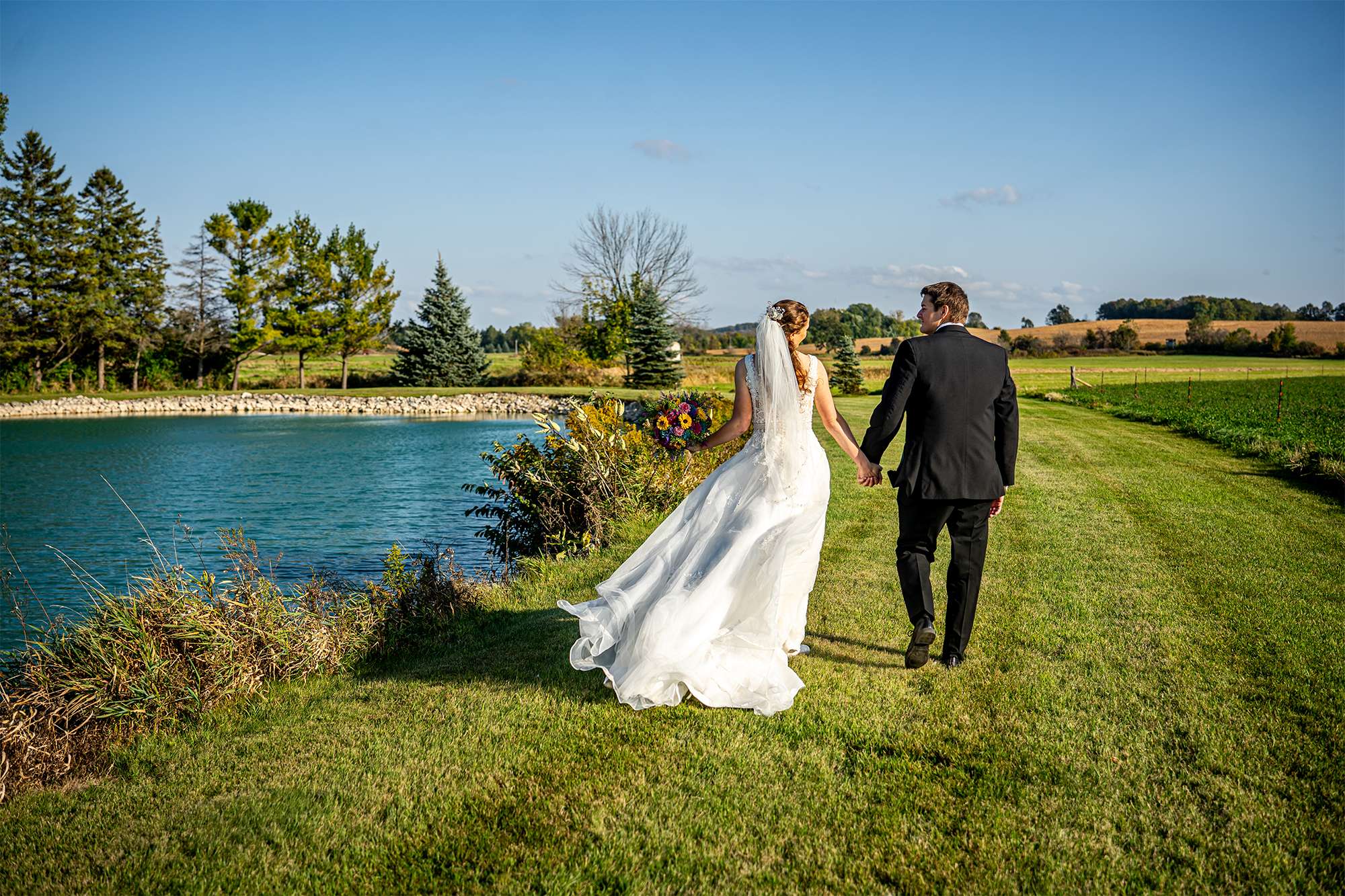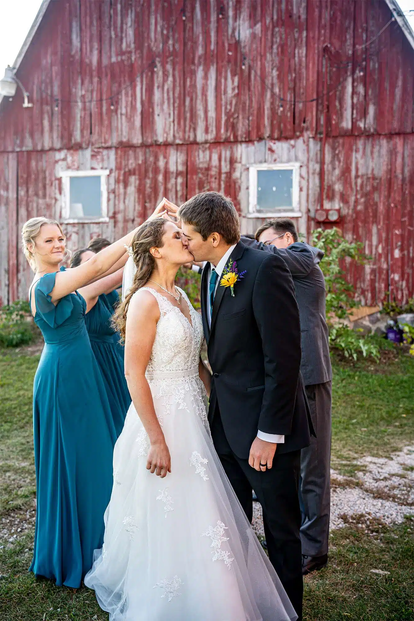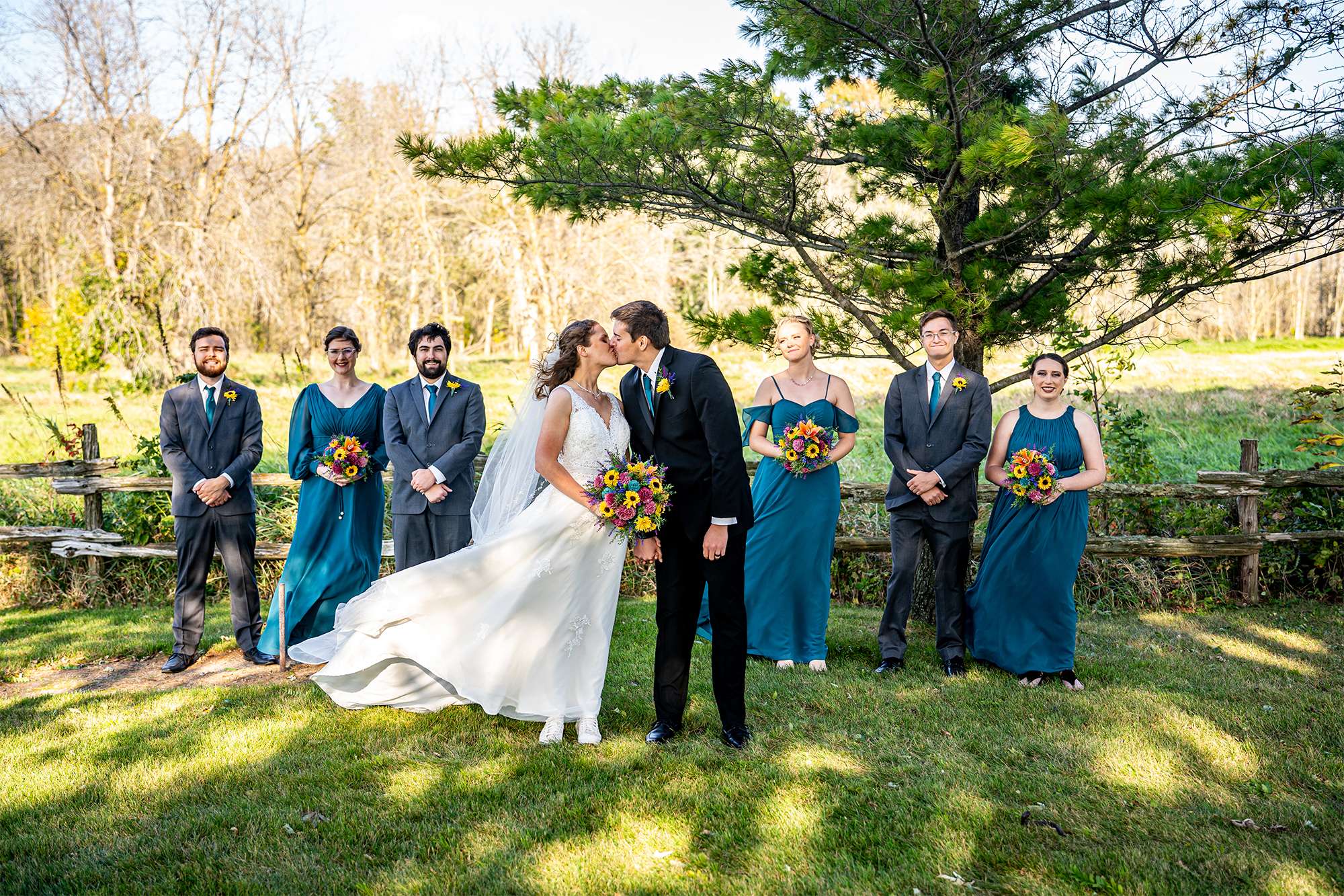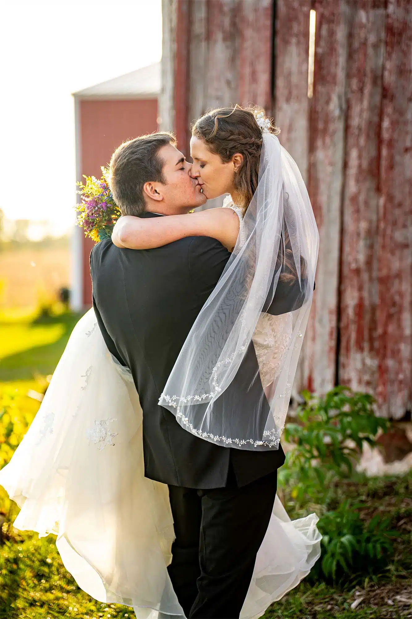 Woelfel Homestead Farm Venue- The venue’s grounds offered a picture-perfect setting for the wedding portraits. Despite the windy day, Sam Lauersdorf skillfully embraced the breeze, turning it into an advantage to capture breathtaking shots!