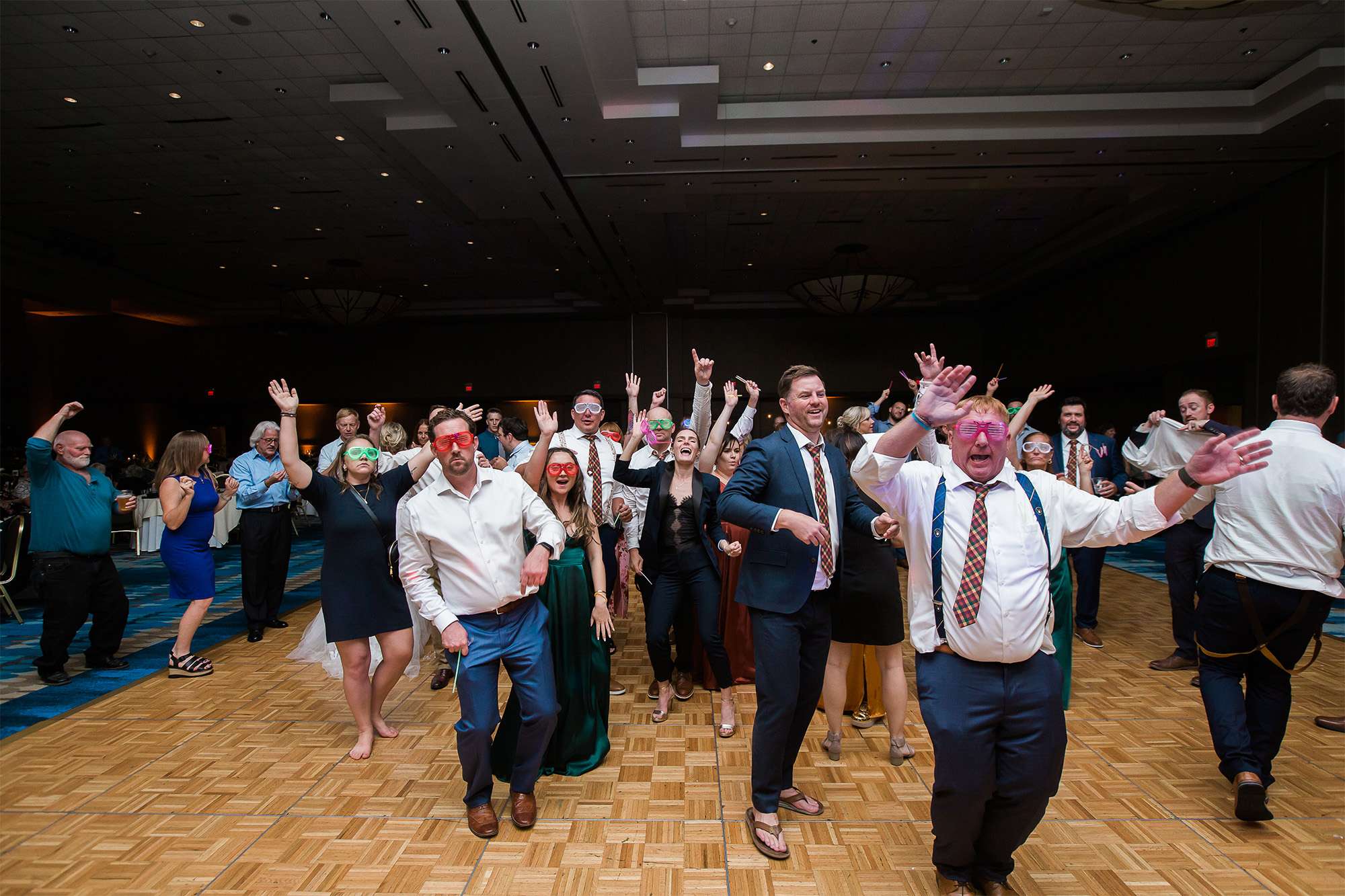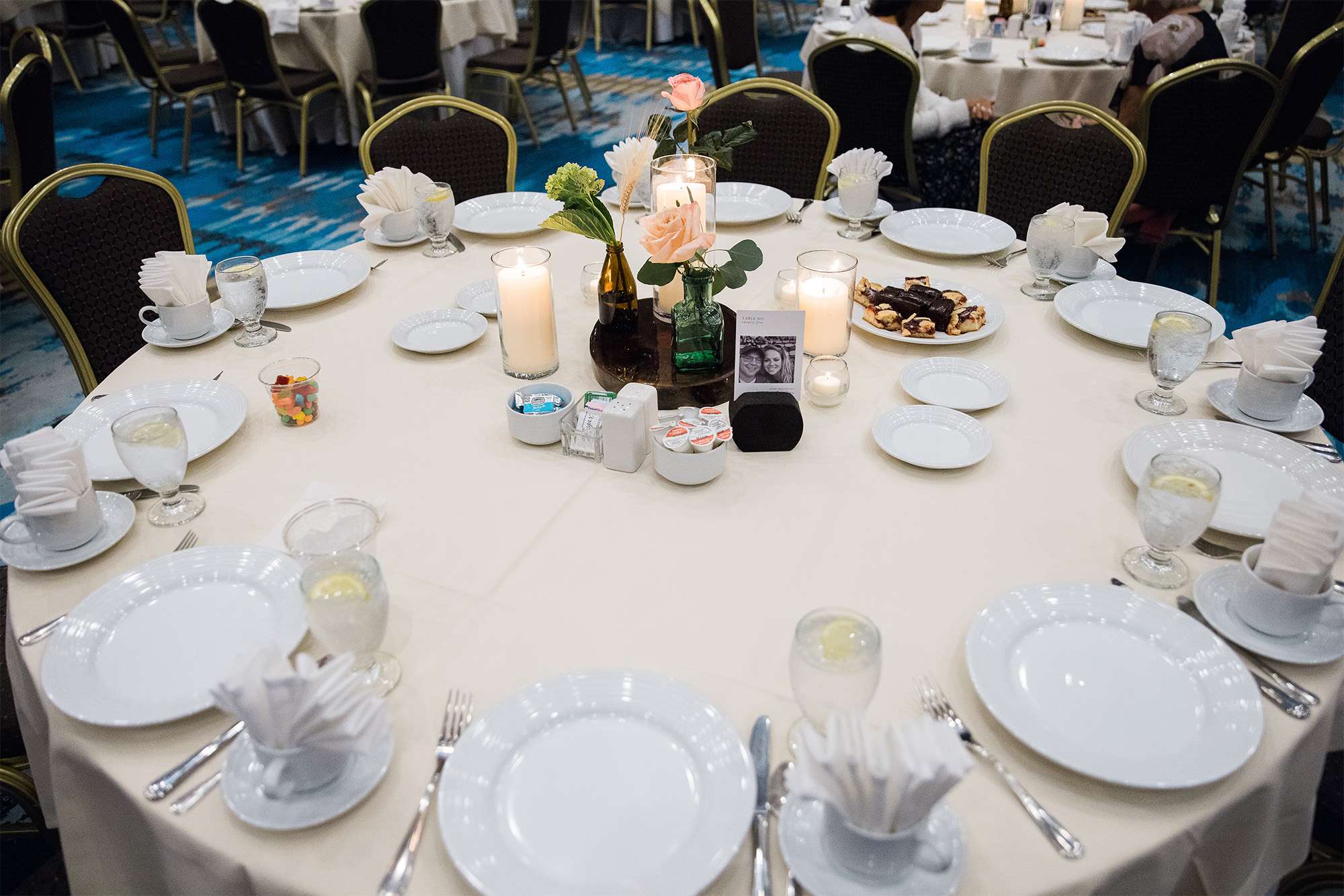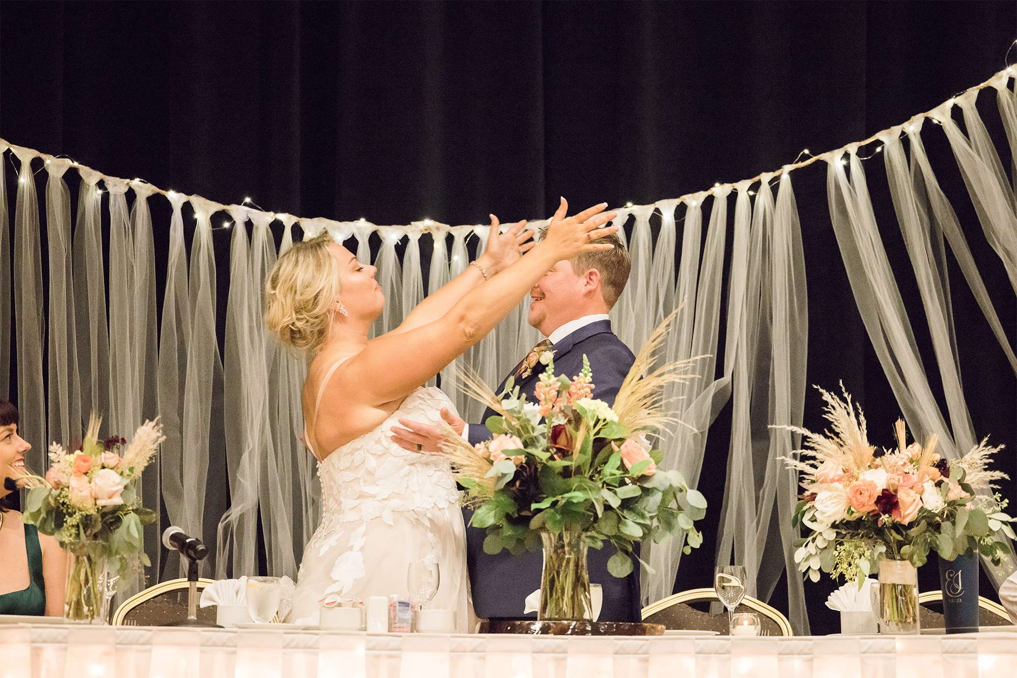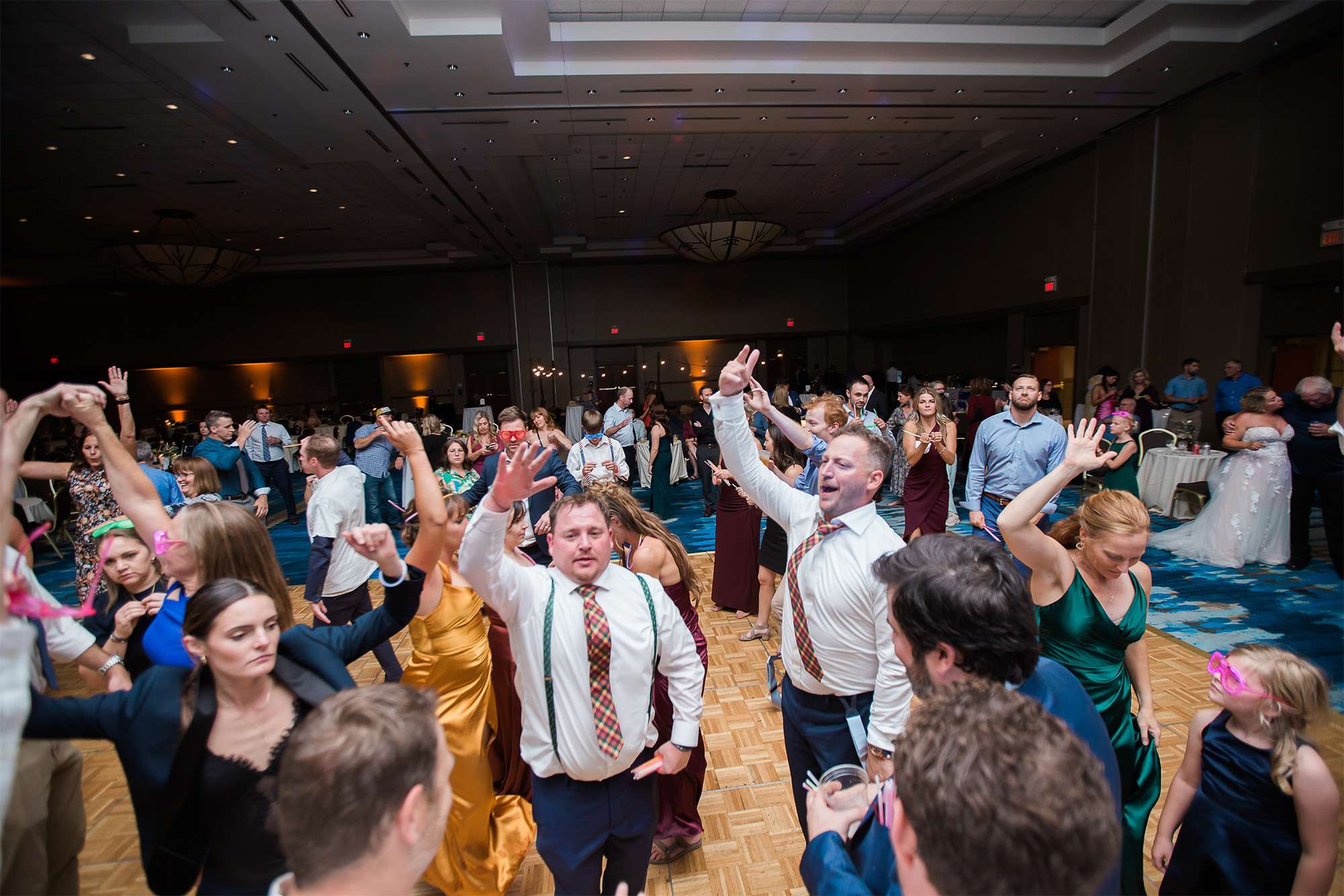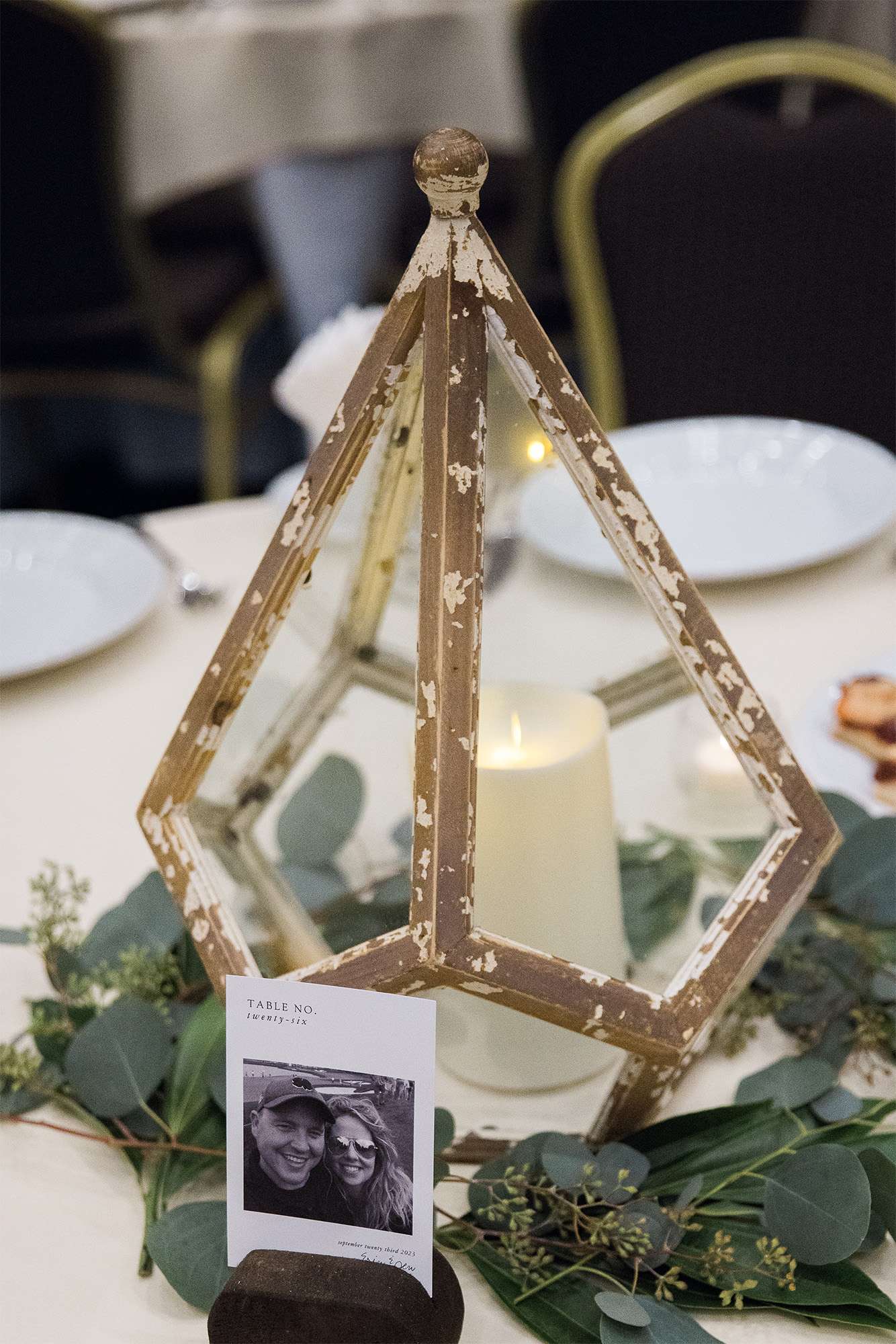 The party continued in the Three Clans Ballroom at the Oneida Hotel in Green Bay. Many of Erin’s friends and family are Green Bay Packers fans, and Jen’s friends and family are Minnesota Vikings fans, so it only made sense to have a sports-themed wedding. The DJ even played the Vikings fight song as Jen’s dad walked up to the mic for his father-of-the-bride speech. The newlyweds shared their first dance to “Mango Tree” by Zac Brown Band, the song that played when they first said “I love you” to each other.