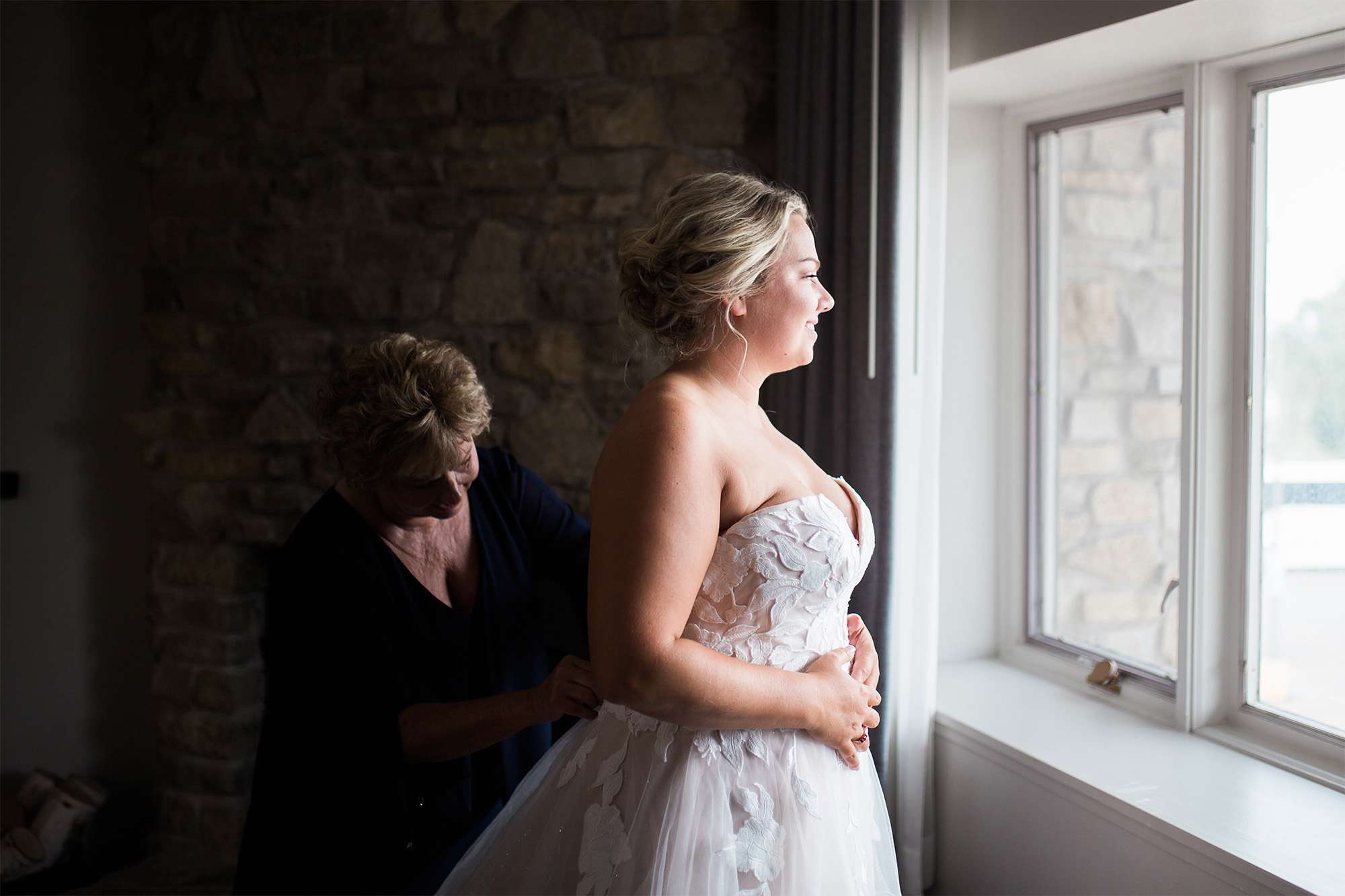 Jen found her dream wedding dress, a glamorous gown adorned with glitter and lace, at the Wedding Shoppe in St. Paul, Minnesota. She knew it was “the one” because it simply felt right as soon as she put it on.