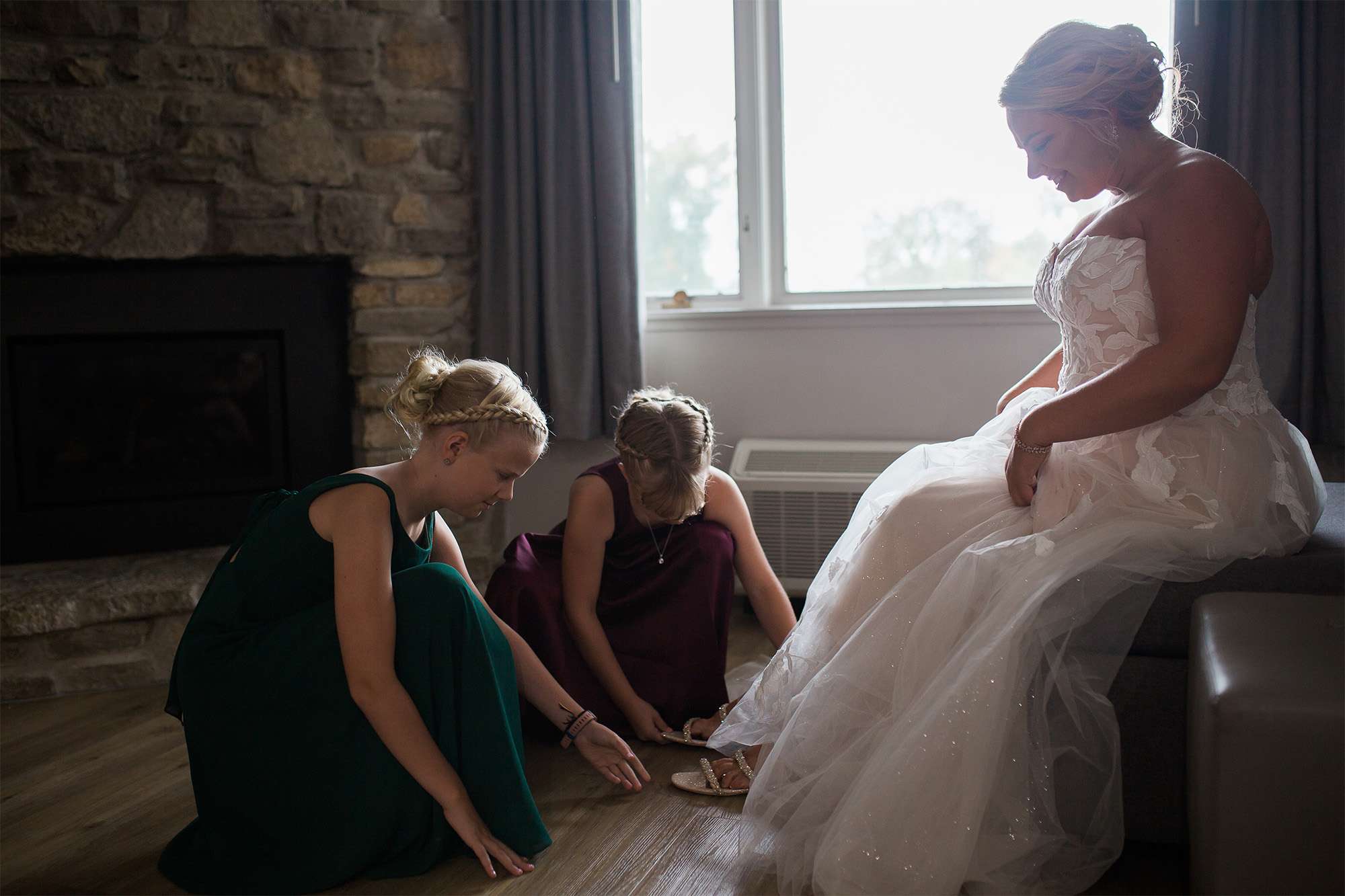 Jen and Erin hired Brian Lorrigan Photography to capture their big day’s beautiful moments. The Green Bay Botanical Garden provided a beautiful backdrop for wedding portraits. The couple loved the images from the Oneida Hotel as well. He had the great idea of having everyone meet the newlyweds on the dance floor. “We love all of the candid photos he got of our guests, kids playing, and dancing faces!” the couple shared.