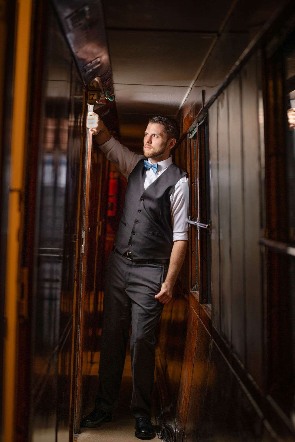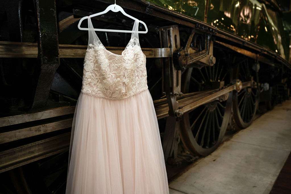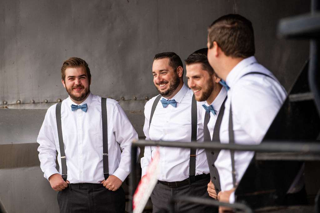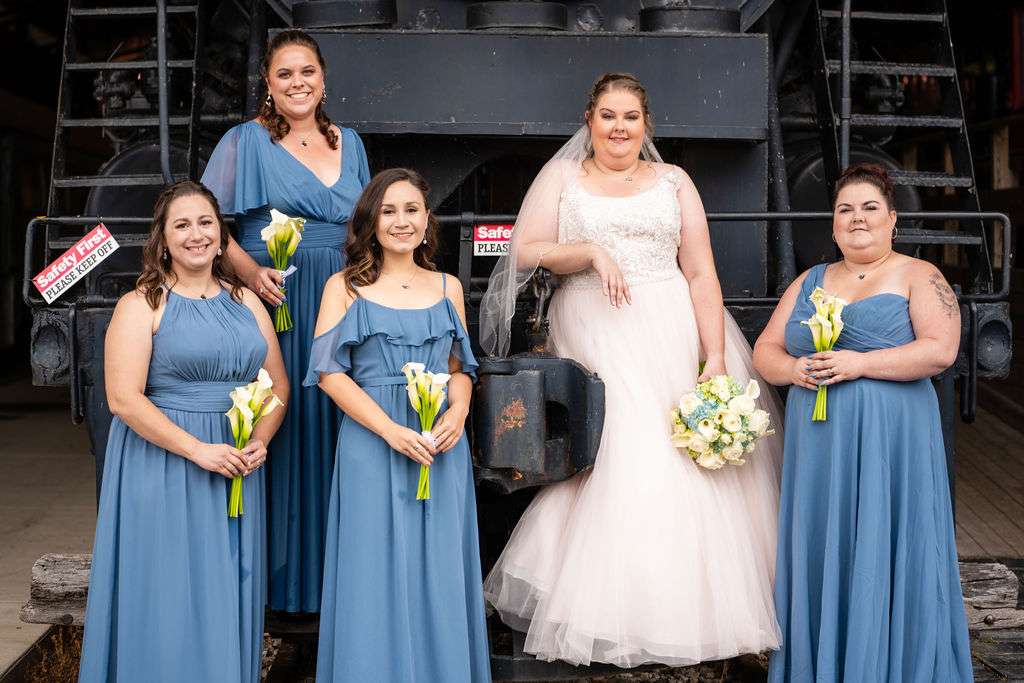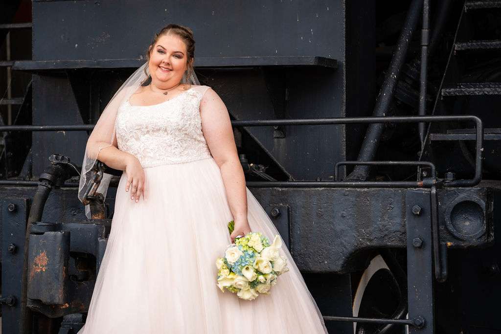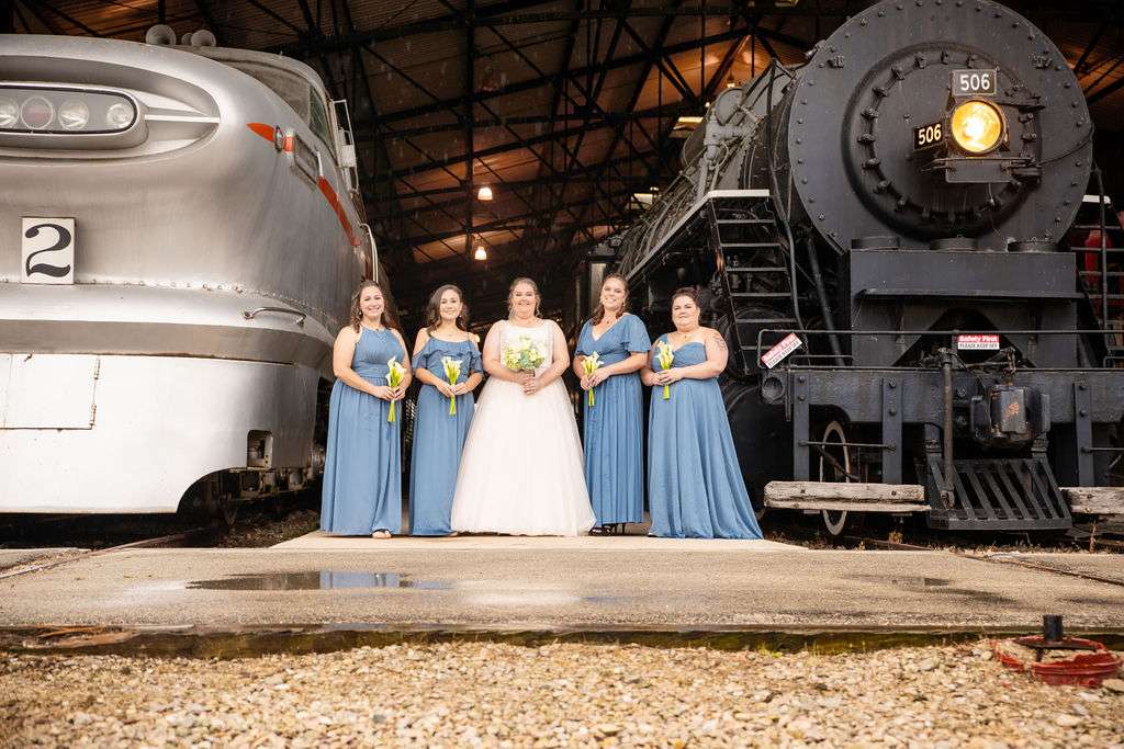 Both the ceremony and reception were held at the National Railroad Museum. Haley and Alex chose the place because they wanted a more rustic, industrial theme. “It would have been easy enough to obtain a warehouse space, but we ended up choosing the railroad museum to have the trains as an added ambiance. We got to have our special day between two historic steam locomotives.”Alex actually worked on the North Shore Scenic Railroad in Duluth, so he particularly loved being around the trains. The spacious museum allowed for everyone to spread out and feel comfortable. When it came time for photos, Haley and Alex didn’t have to look any further than the museum’s grounds. “The museum has a shed in the back that has beautiful trains that make outstanding photo props. It was a fun experience to be able to climb on these engines and train cars and use them as beautiful backdrops. It made for some pretty epic pictures!”