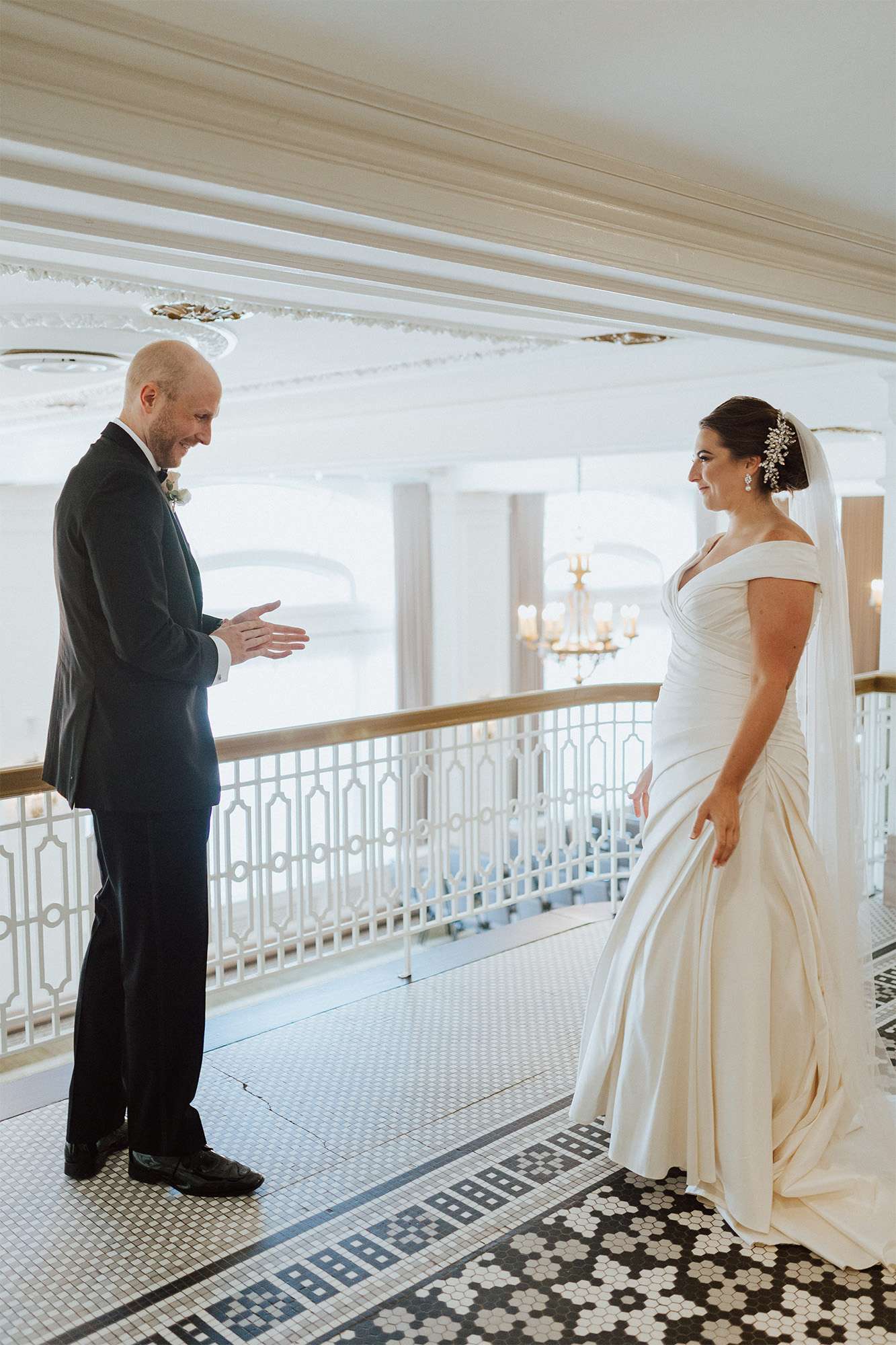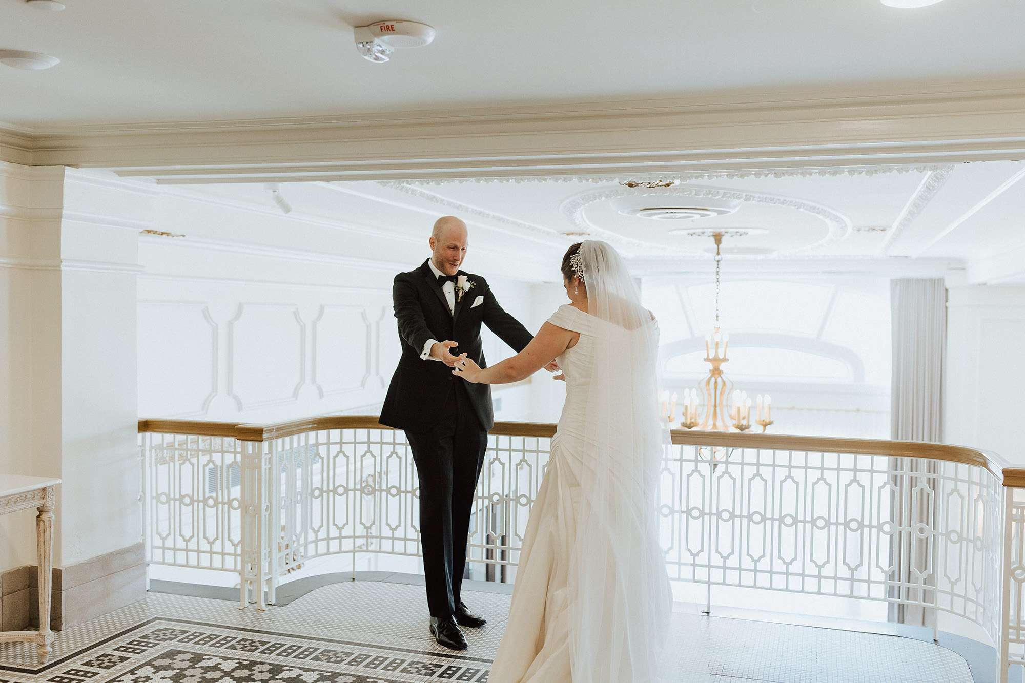 Scott and Kelsey chose Abigail Traver Photography to capture the day. “Her quality of pictures is so high, and she is so good at communication!” The bride and groom started their photos with a first look at Hotel Northland in downtown Green Bay. “Our first look was incredibly special,” Kelsey says. “It was the perfect setting for our classic, timeless theme. We read personal vows to each other, because I knew I would be too emotional to make it through with a large number of people watching at the ceremony.”
