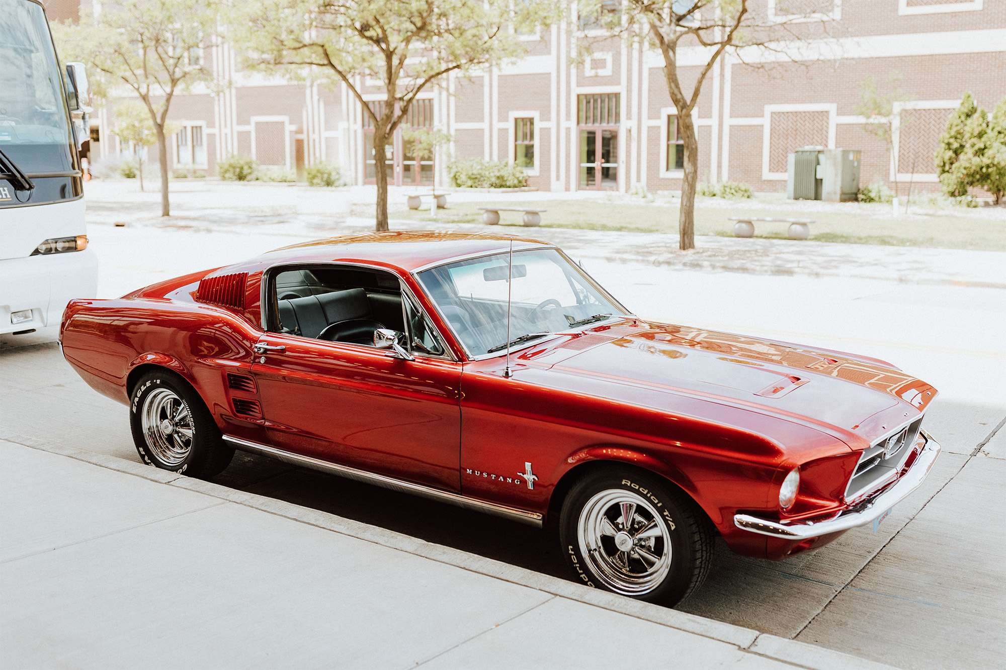 Kelsey and Scott also took some photos with Scott’s dad’s 1967 Ford Mustang before heading to the ceremony location, the Green Bay Botanical Garden. “We did all the pictures before the ceremony.” The ceremony was just 20 minutes—”perfect timing.” Scott’s uncle officiated, making it all very personal. “And it was great weather!”