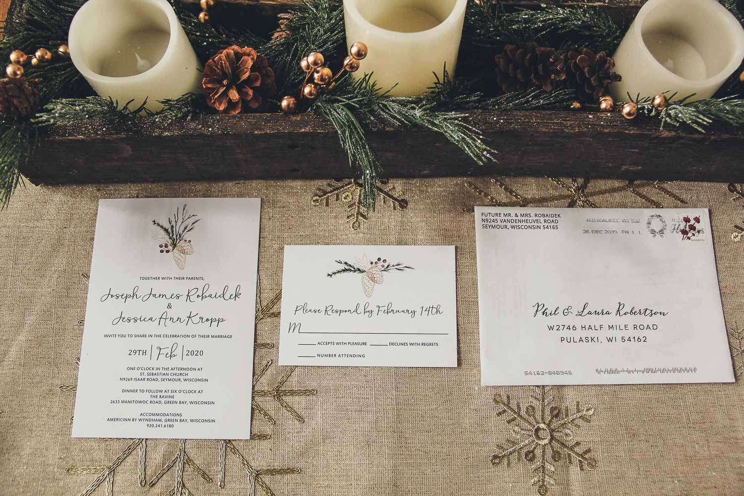 “When starting a brand new invitation suite, I begin by asking the couple tons of questions. This usually includes basic questions in regards to colors, fonts, graphics, and style, but I also love to receive inspo pictures. Sometimes couples submit pictures of other invites. Sometimes they send me pictures of nature scenes that they really like the color scheme of, or just a picture of the venue and the vibe they are looking to portray.”