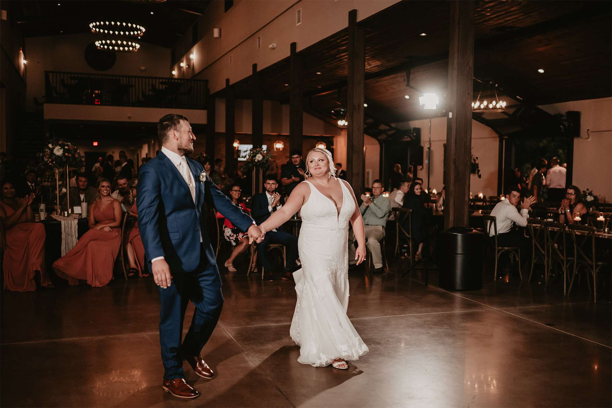 “I fell in love with it the second we walked in the door!” “The venue is absolutely STUNNING. I loved the modern look but rustic barn feel.” With an invite list of 375 people, the couple needed a venue that would be able to accommodate that many people. Jaden also says that she loved that they could have the ceremony and reception at the same place.
