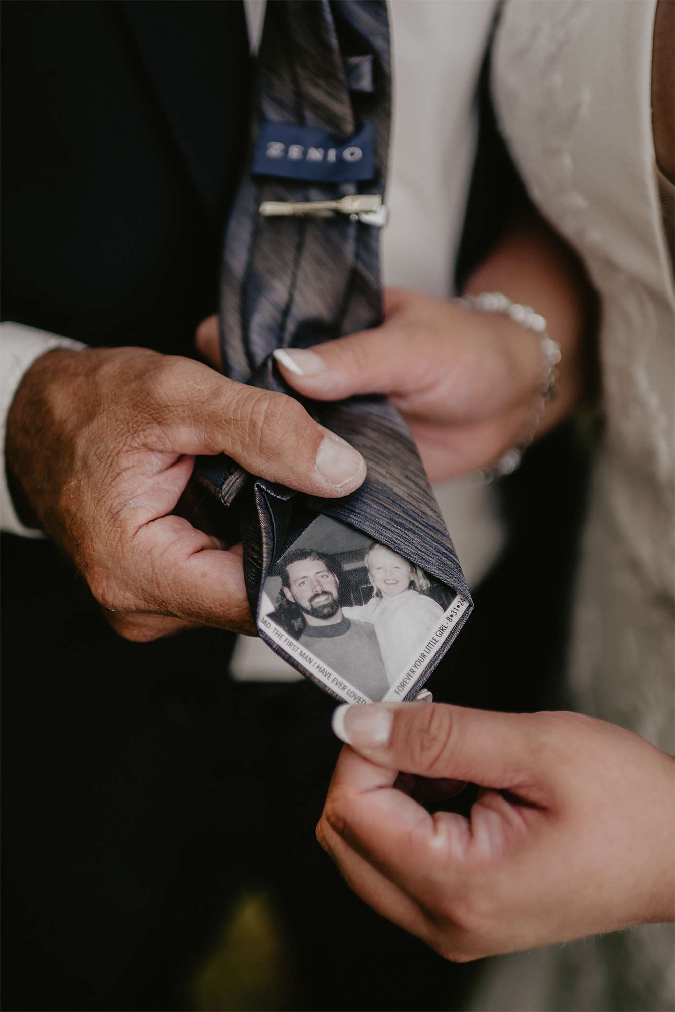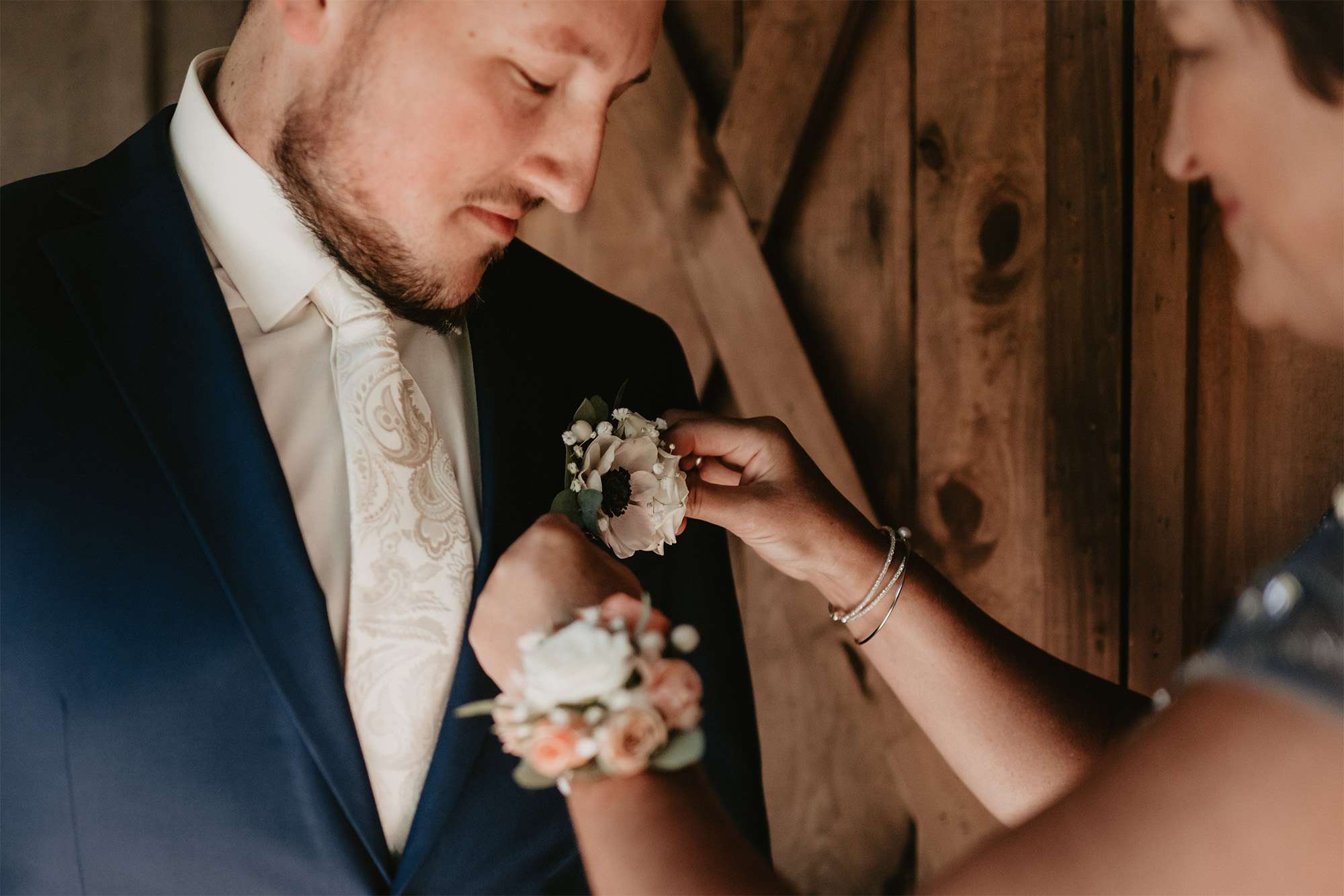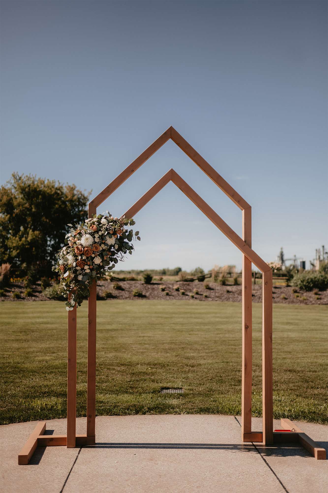 Jaden and Bryan wanted to do something a little different as a unity ceremony instead of lighting a candle. Bryan grew up on a dairy farm and currently runs his business with his brother off the farm. So, the couple decided a branding ceremony would be appropriate. The couple had a custom “BSJ” brand made to represent Bryan and Jaden Schaumberg. During the ceremony, the branding iron sat on a fire off to the side. Together, the couple took the branding iron and branded a framed piece of wood that now hangs above their bed.