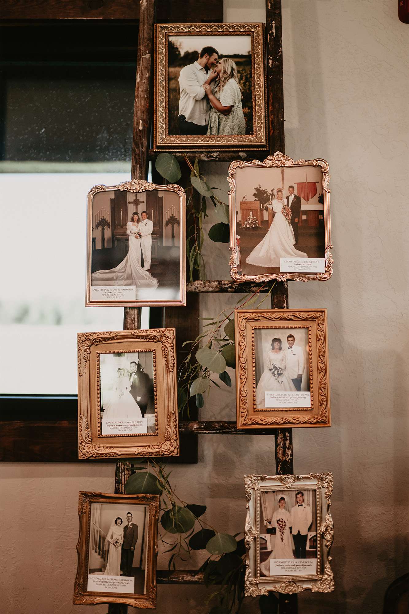 “We made our photo backdrop a photo collage out of the pictures we took together over the 4 years of our relationship! We then had a friend print it off on vinyl and attached it to two large pieces of plywood to make the backdrop for our guests to stand in front of! We also made a slideshow of pictures of us individually as kids and then us as a couple.”