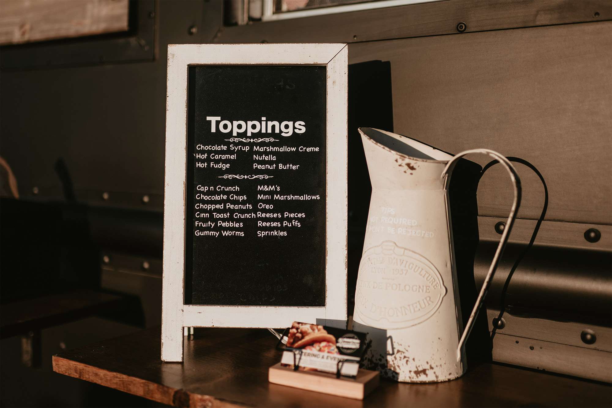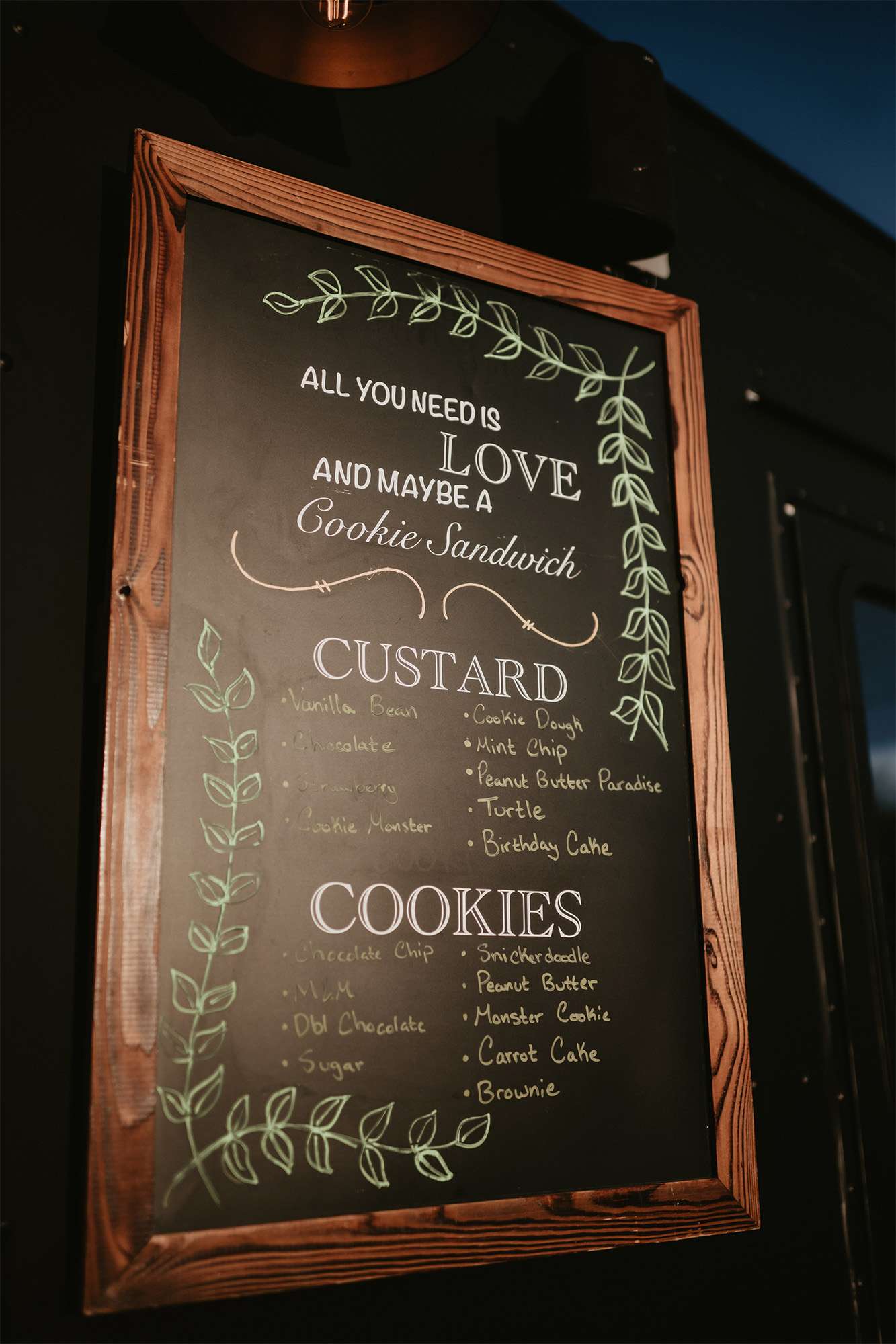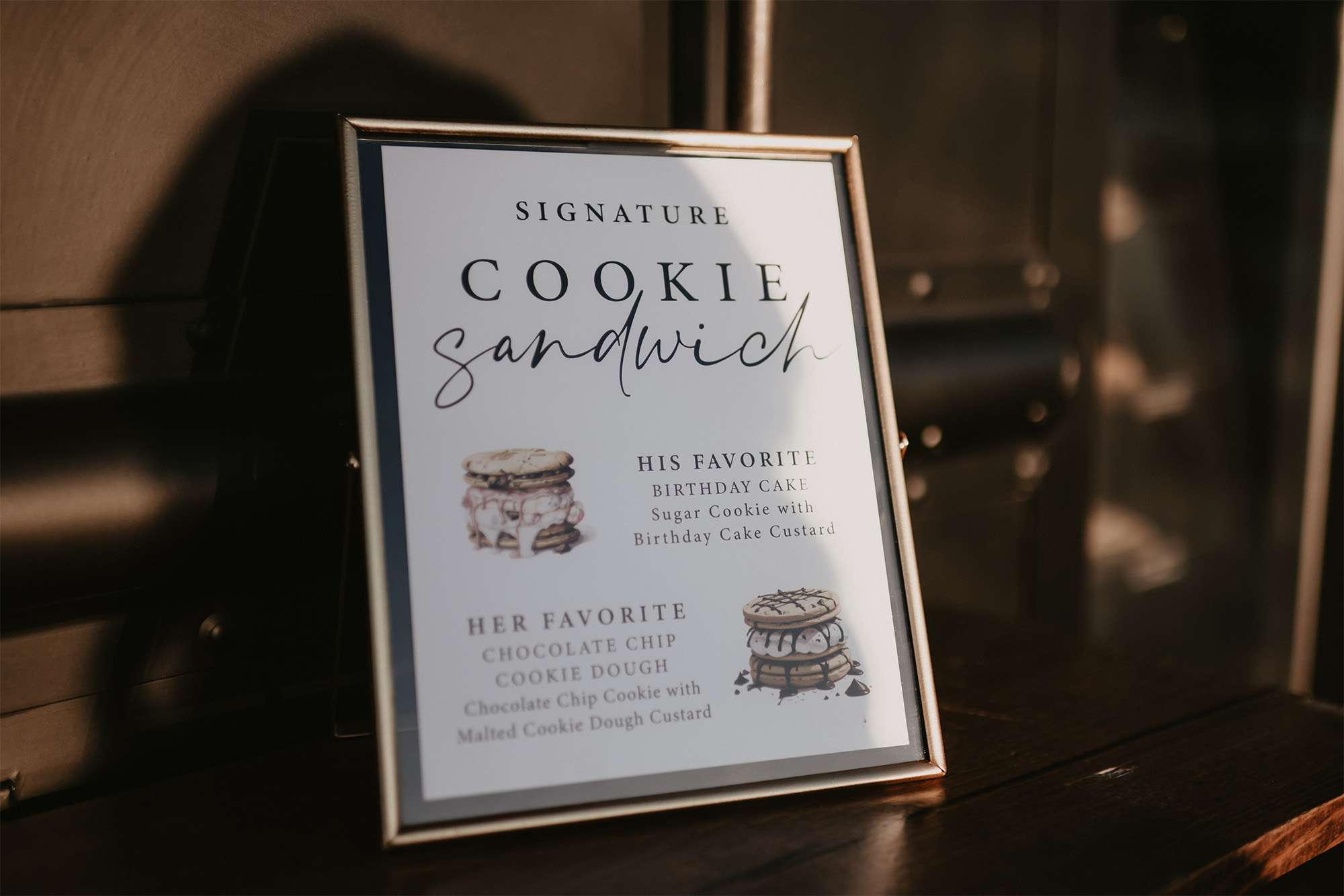 The couple chose Lengendairy Cookies ‘n Creamery’s ice cream truck for dessert options! They offered his and hers signature cookie sandwiches and several custard flavors with toppings. Jaden’s signature sandwich had chocolate chip cookies with cookie dough custard. Bryan had sugar cookies with birthday cake custards. Both were a big hit with their guests. Another huge hit was the couple’s late-night snacks. They offered pizza, wings, and veggies with a ranch fountain!