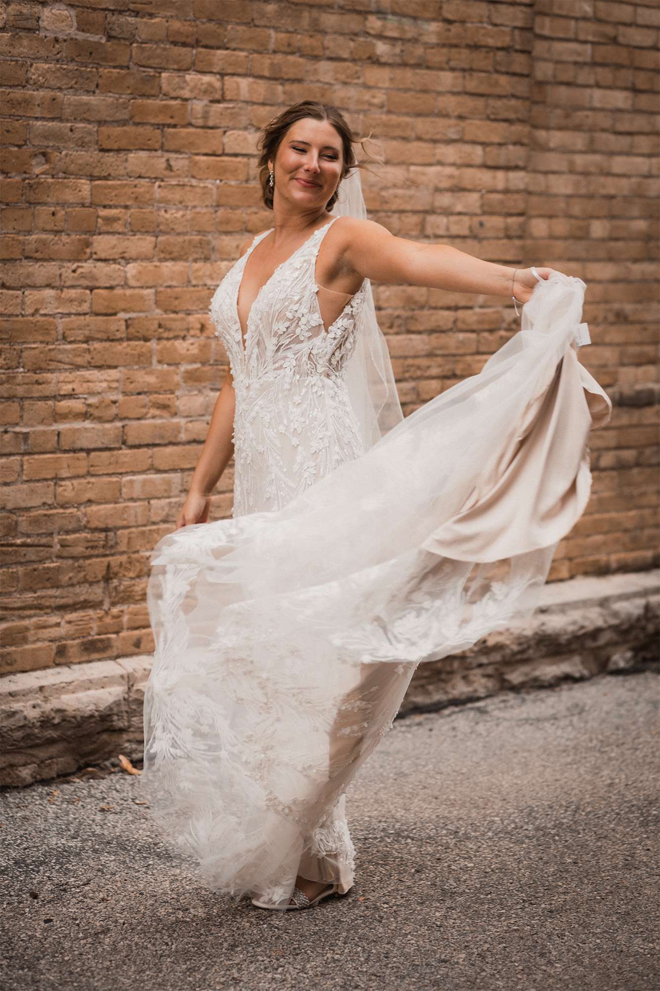 Kayla says she tried on 6 or 7 dresses. “I ended going with the first dress I tried on. I went back and forth between two and I went back to try on the first one again a different day and I knew then it was the one.”
