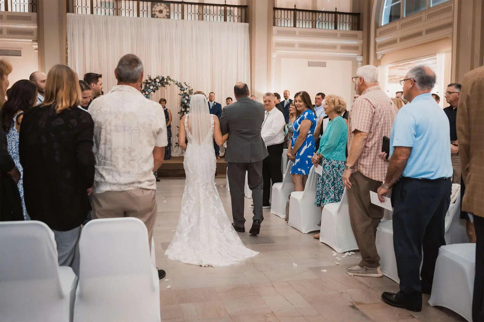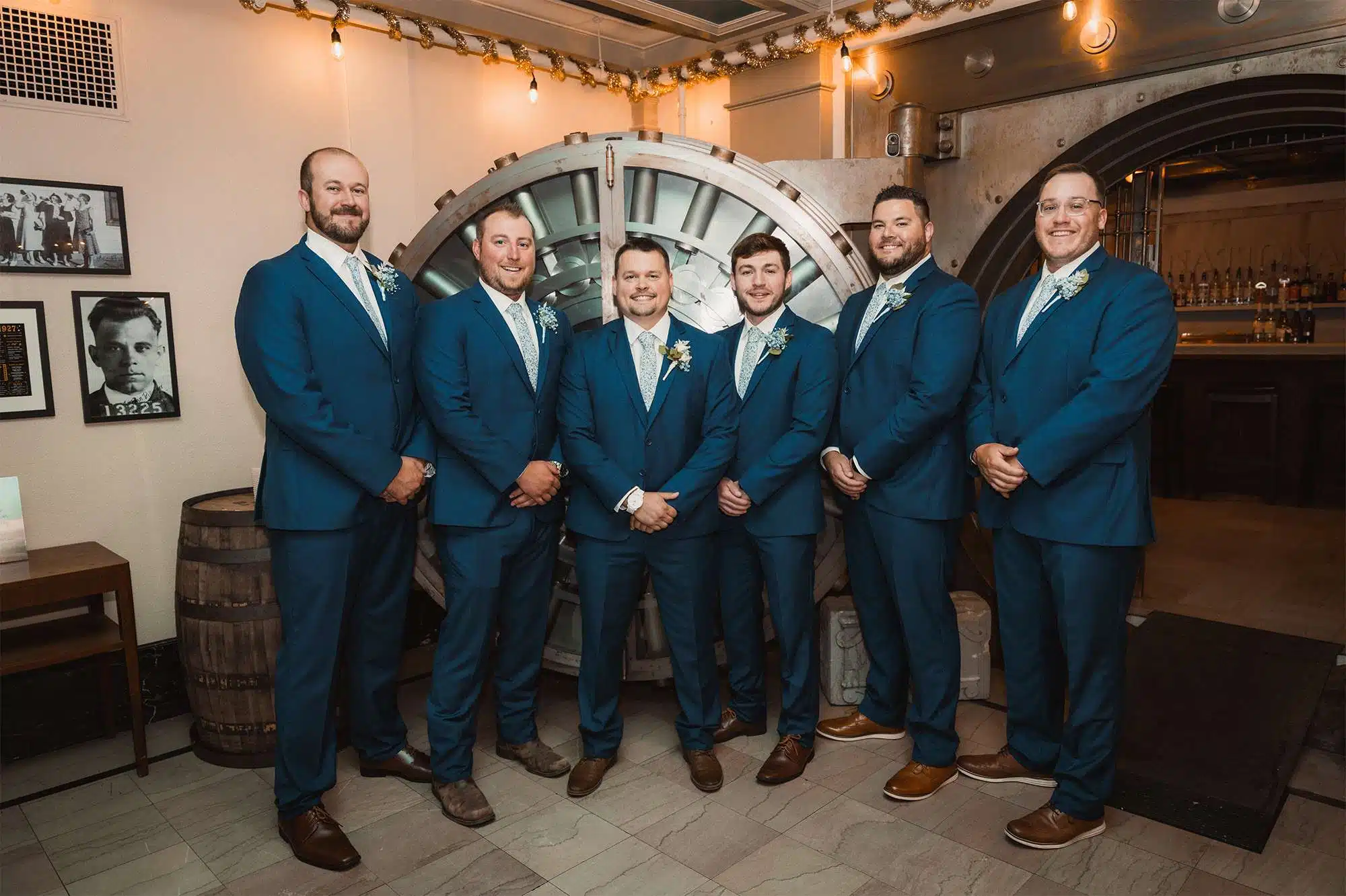 The wedding party didn’t have to venture far for stunning photo opportunities—Venue 404 features a variety of picture-perfect spaces. From the spacious, light-filled Bride & Groom suites to the charming sunroom, and the unforgettable Speakeasy Vault bar, every corner offered a unique backdrop.