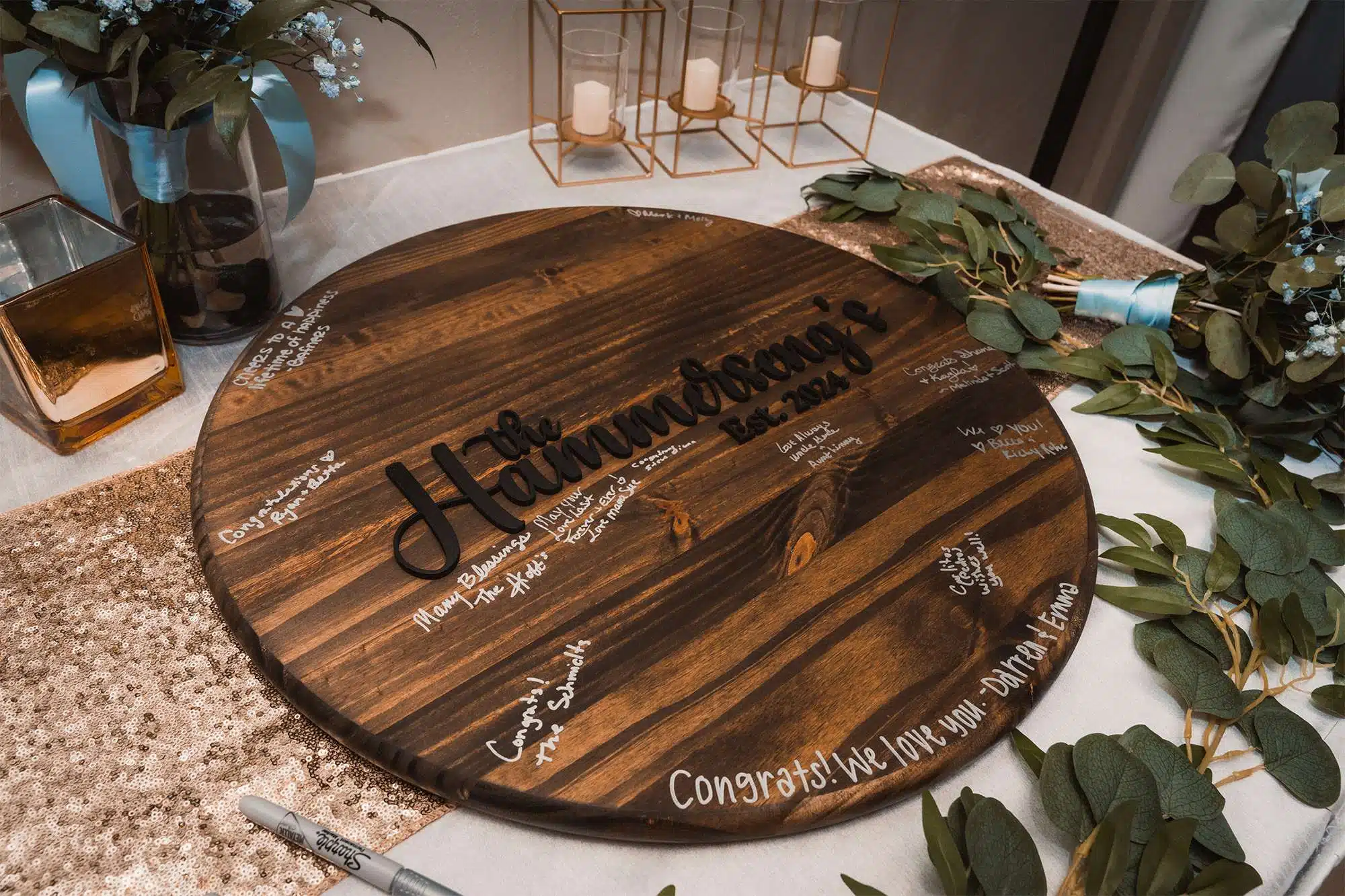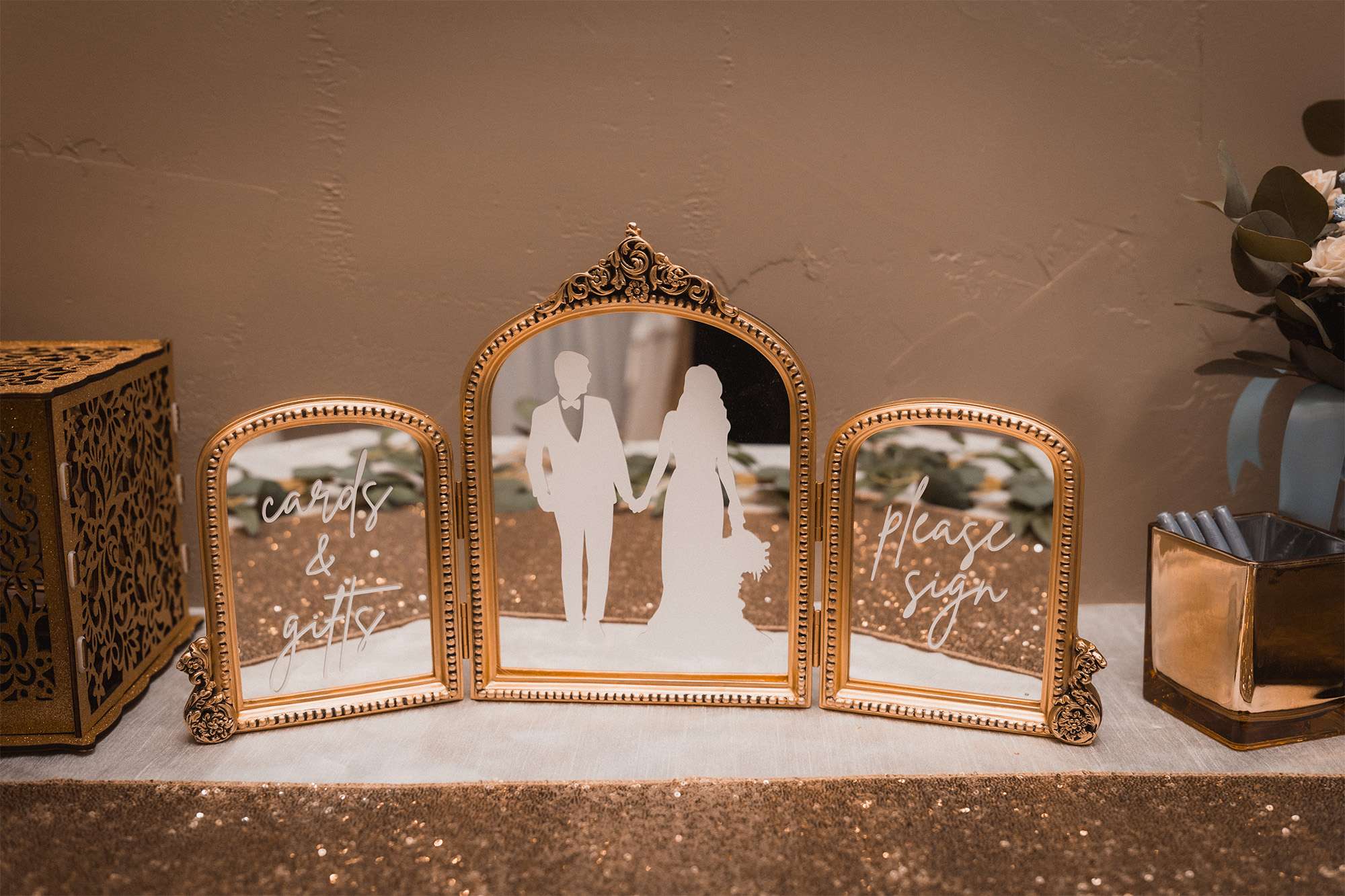 A few items were bride’s personal décor like the welcome mirror, everything else was rented from Robins Nest Florist