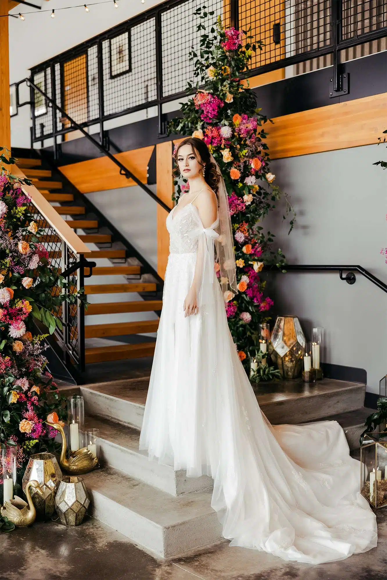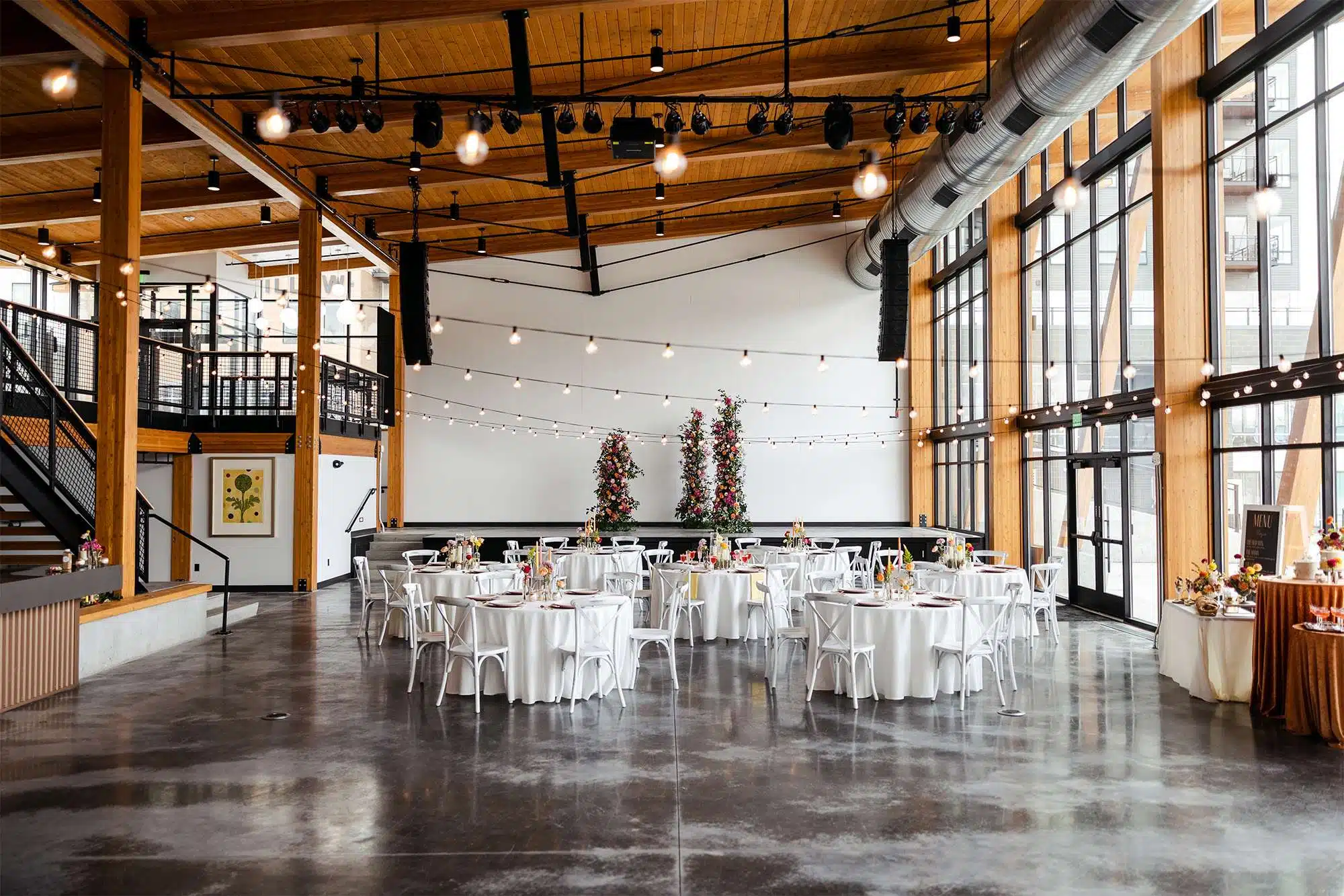 Our recent styled shoot with 88 Events at the stunning Poplar Hall in downtown Appleton brought together some of Northeast Wisconsin’s best wedding vendors. Located along the Fox River nextdoor to the Courtyard by Marriott Appleton Riverfront, Poplar Hall first opened in fall of 2021. The Hall is able to host all kinds of events, including wedding ceremonies and receptions, from an intimate dozen to 160 guests. With two levels, a main floor and a mezzanine, plus an outdoor space with river views, the options are endless. Poplar Hall also has a catering kitchen as well as a list of approved caterers.