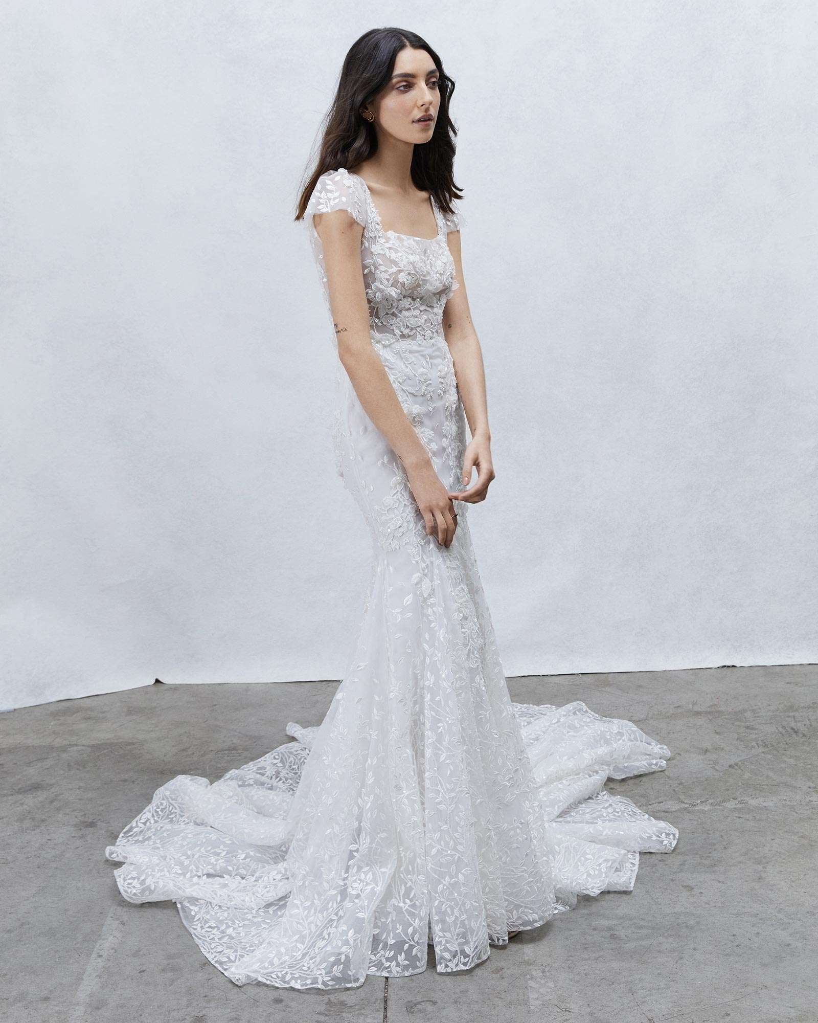 The latest from Rita Vinieris’ Rivini Spring/Summer 2022 Collection and the Alyne Spring/Summer 2022 Collection – where nature meets romanticism. Combining art, ecology, and a dose of poetry that includes features from diaphanous gossamers and tulles to dimensional floral laces and sustainable crepe, the details are delicate and airy allowing the fabrics to gently drape over the curves of the body. This season is about lush layered textures and fluid architecture merging together in perfect harmony.