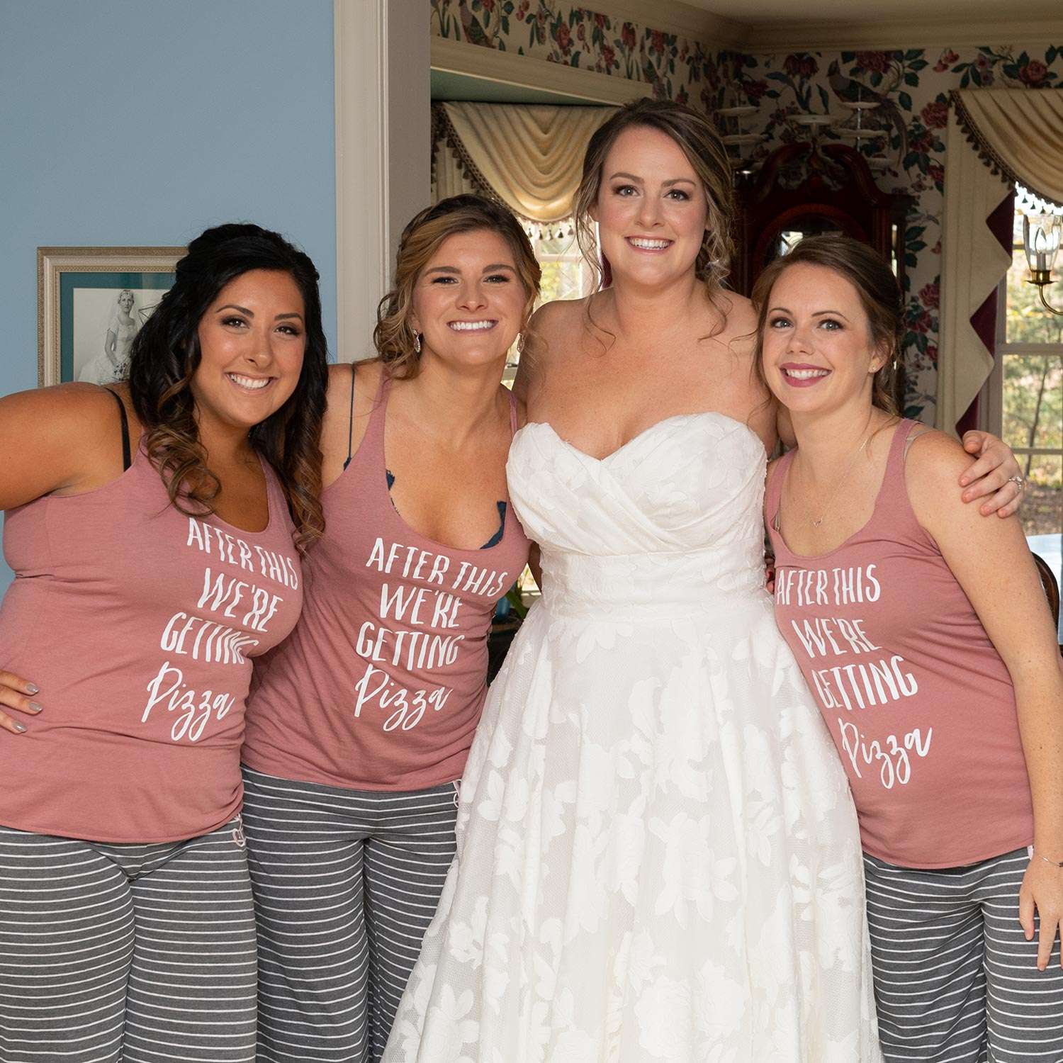 Whether it’s robes or fun t-shirts, give your wedding party something that they can use while they are getting their hair and makeup.  Your bridesmaids and even the mothers-of-the-bride/groom will enjoy being in on the fun and will have a memento of the day to keep with them forever.