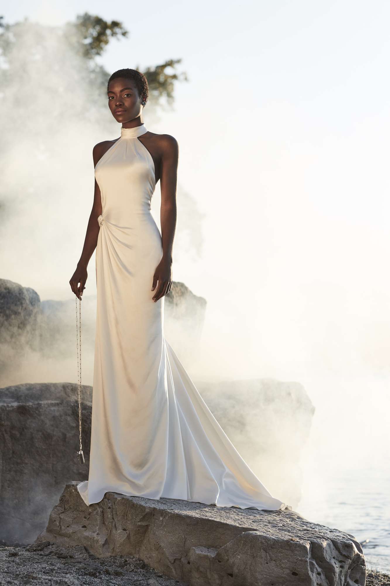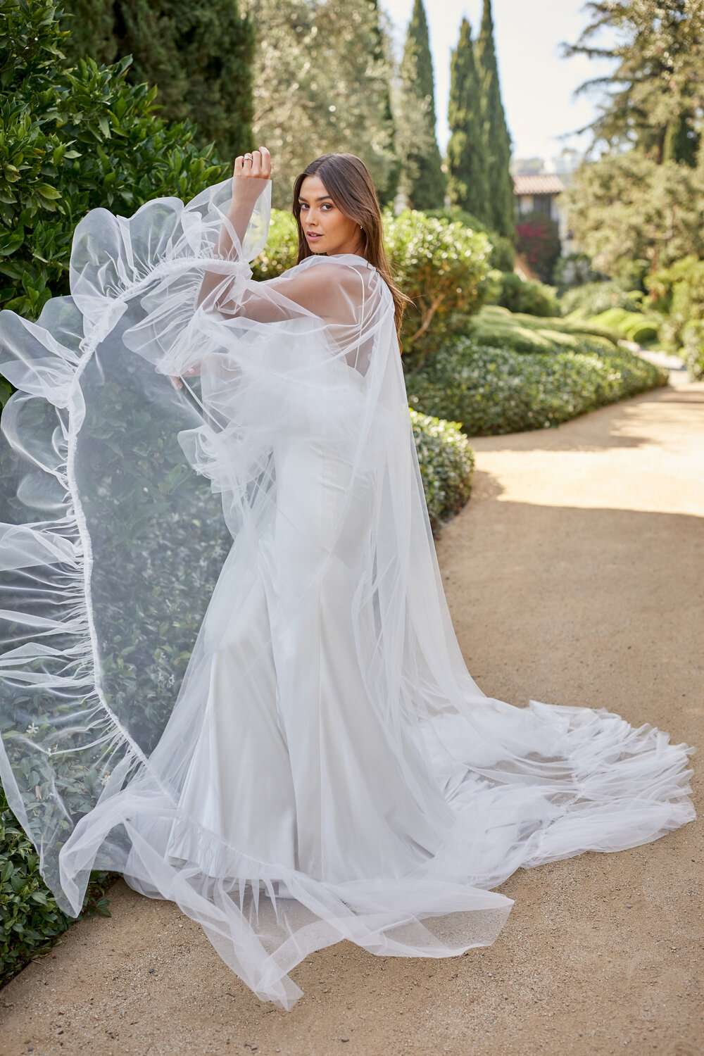 Monique Lhuillier’s Spring 2021 collection evokes a Spanish flair with California ease. This season is all about traditional laces, delicate floral details, luminous embroideries, and regal proportions. Flowing silhouettes with voluminous sleeves, deep v-necks and flamenco-style skirts dance into the night with poetic elegance. Sensual capes, Watteau trains, and detachable jackets give versatility to each look. And as always, femininity and romance reign supreme!