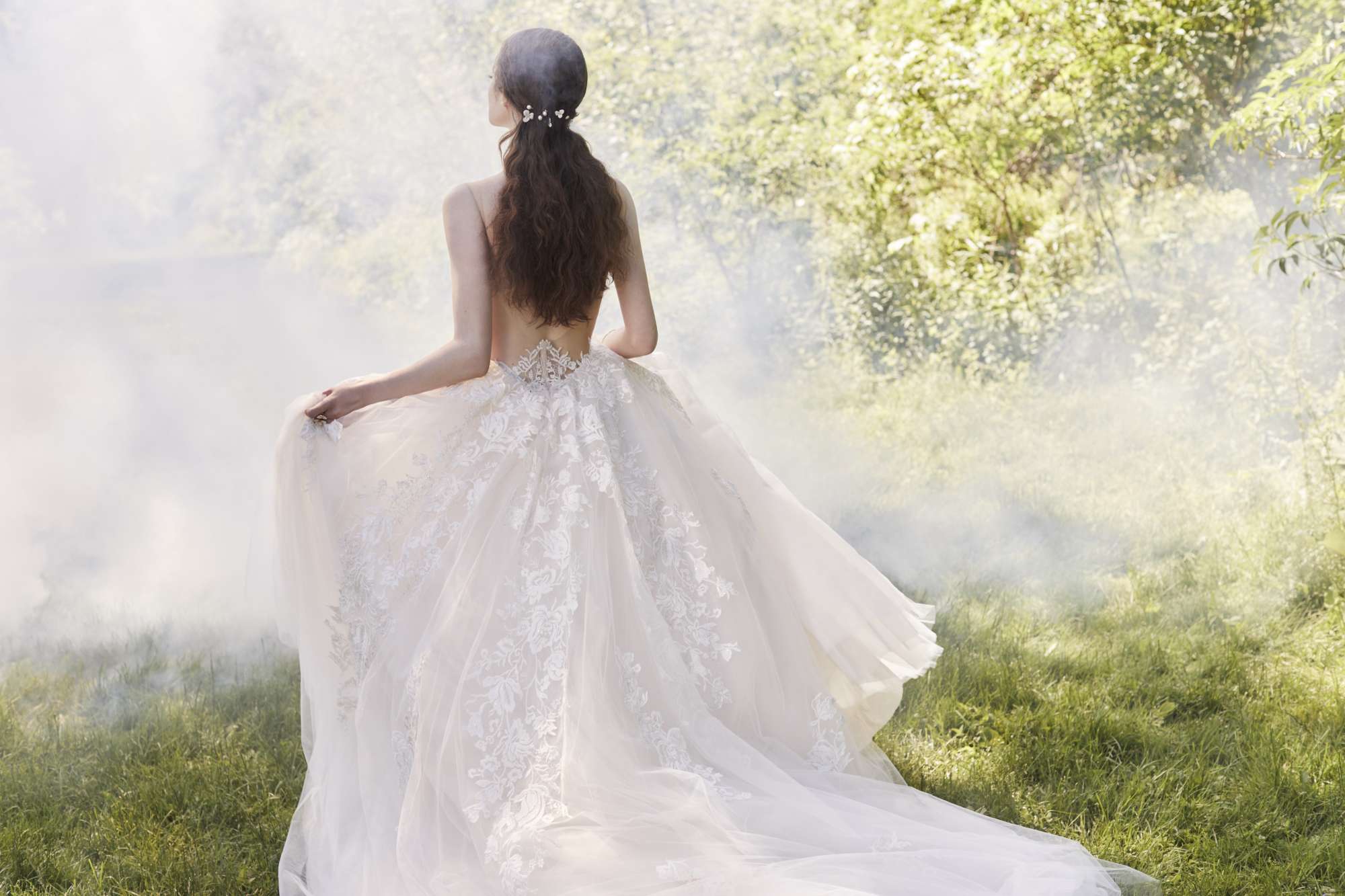 What’s the inspiration behind Ines Di Santo’s spring collection? It’s ENCHANTMENT! Defined as the state of being under a spell, Di Santo says “This is the feeling that I wanted to convey when you look at my latest collection. I wanted to take your eye on a journey of fantasy and beauty. I have draped silhouettes to give them new lightness and drama. I have worked with fabrications that are ethereal that float like mist in the air. All of my hand embellishments seem to blossom organically on each design. I hope you find these gowns as enchanting as I do.”