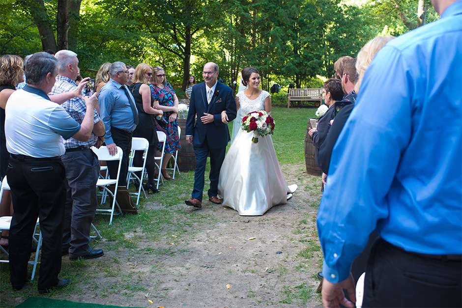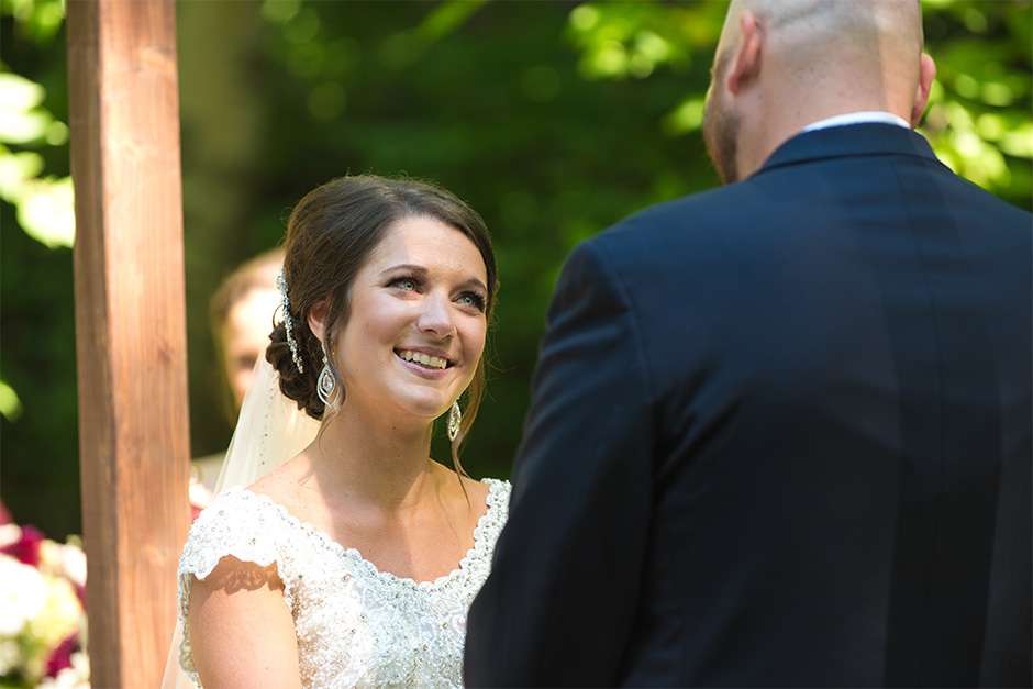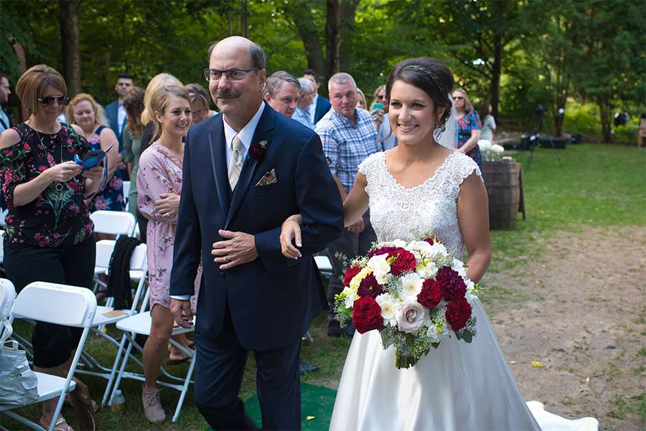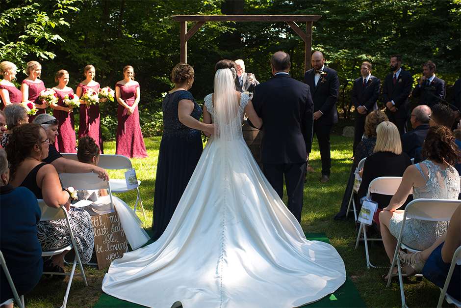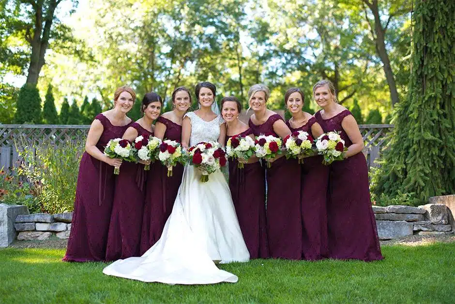 The happy couple planned a September wedding with a ceremony at the Green Bay Botanical Gardens – Woodland Garden. It was a mix of traditional religious elements and Traci and Joel’s personalities. “Our pastor had us explain five things we appreciate or love about each other and how we knew the other person was the one. We had two readings, one being scripture and one being a poem. We used traditional vows, as well as wrote our own. This way, our guests stayed engaged, as we kept it lighthearted and honest.”