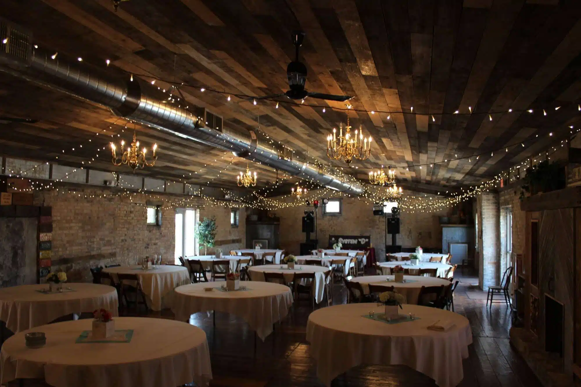 If you’re looking for a unique setting for your northeastern Wisconsin wedding and/or reception this is it. Exposed yellow brick polished wood floors and towering wood timbers will set the tone for romance grandeur or plain old down home fun.