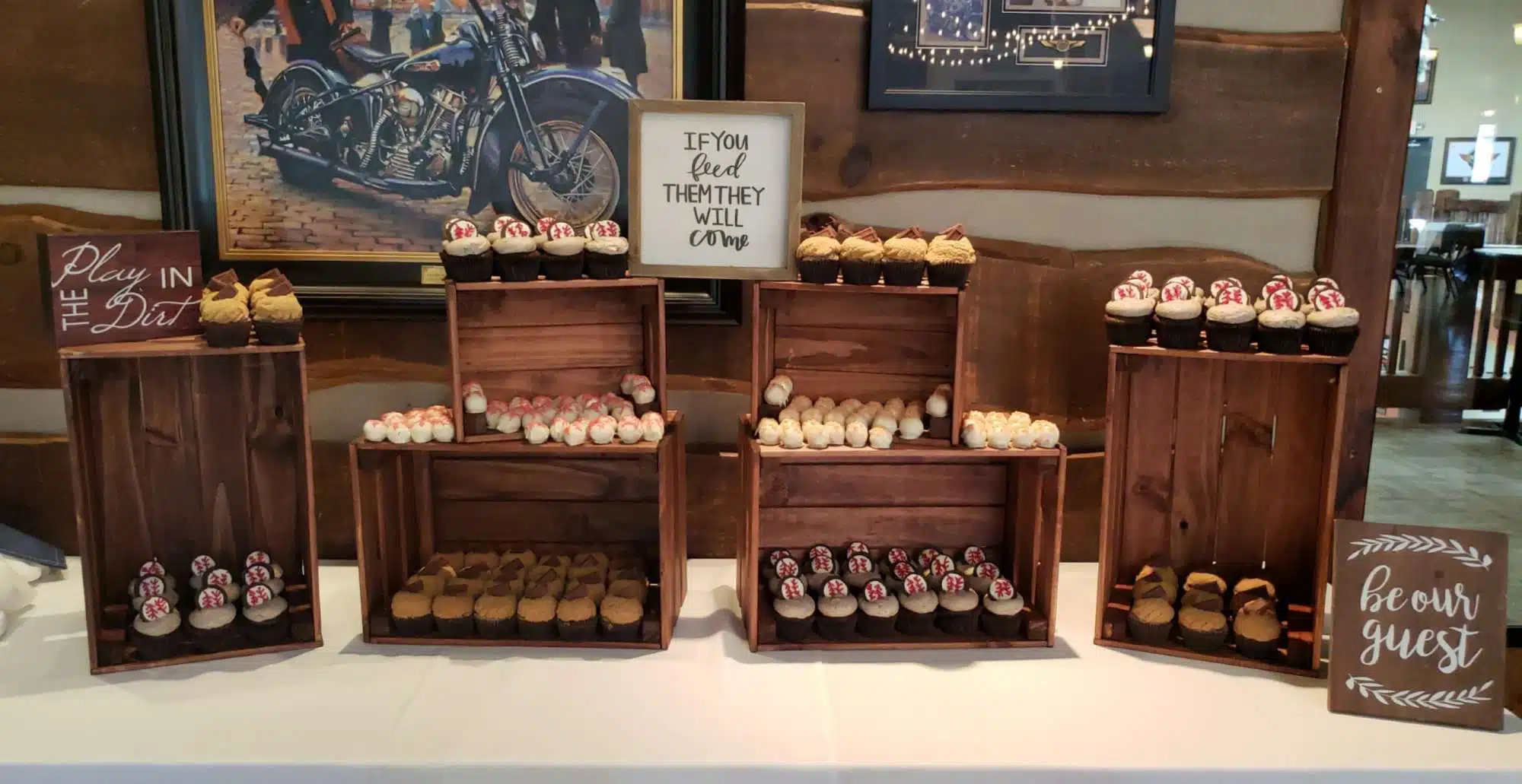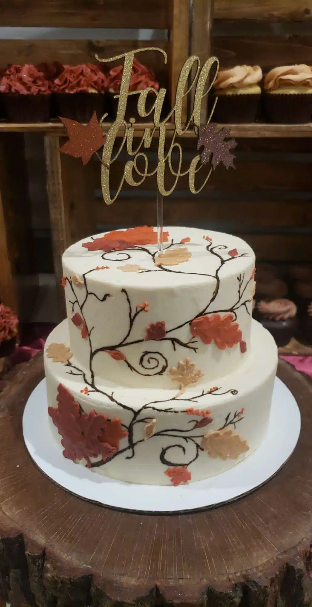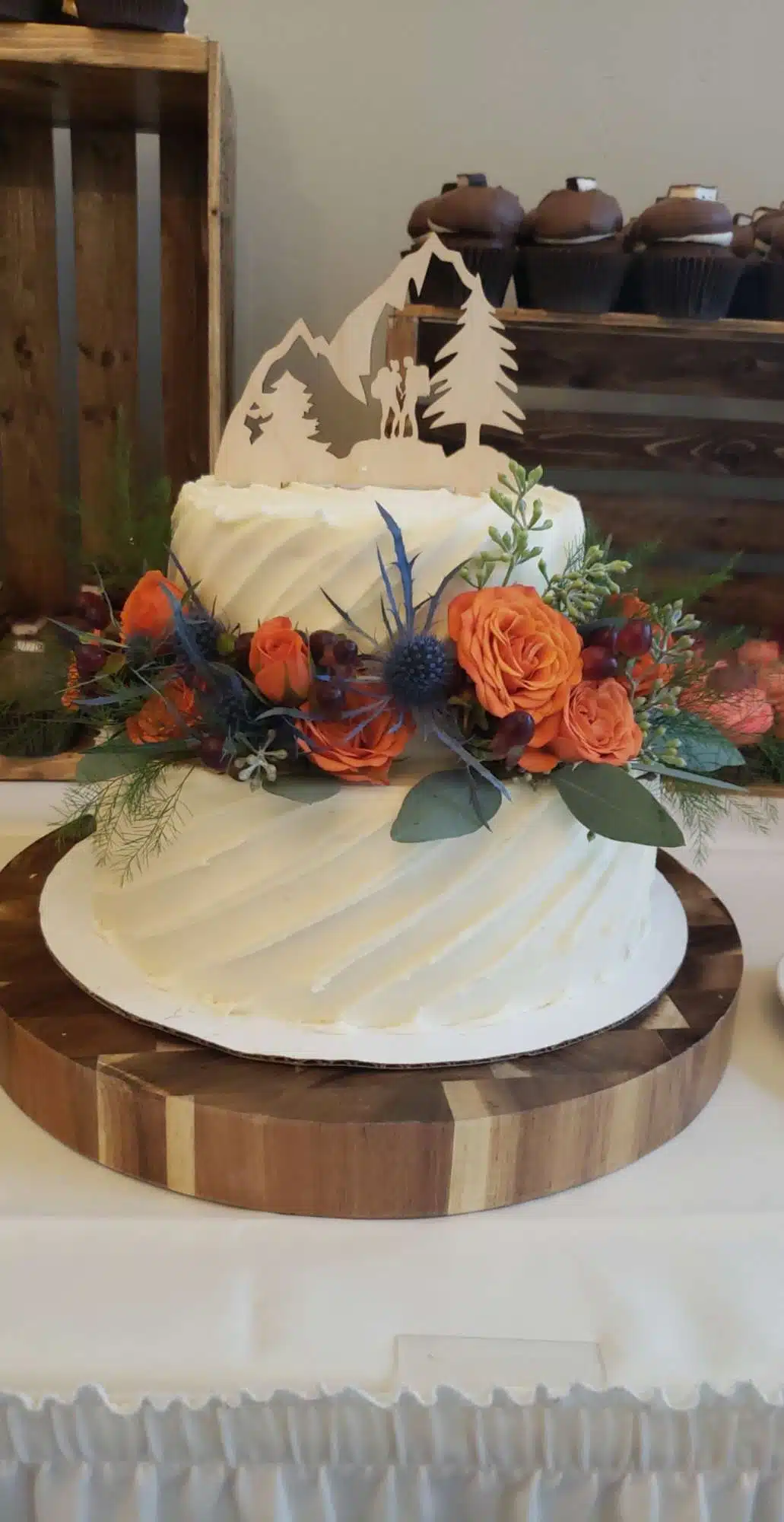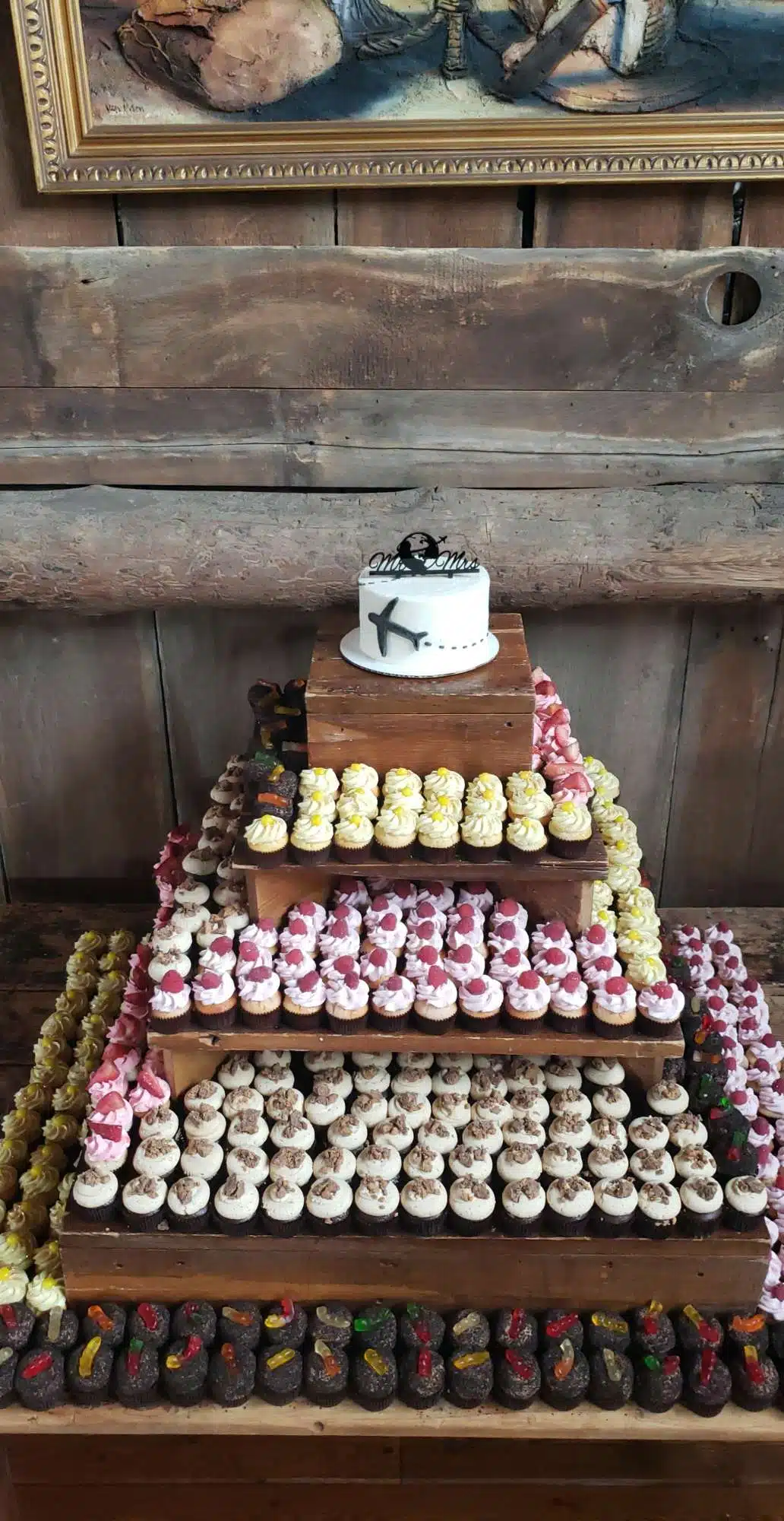 White and rustic cupcake tower or white and rustic stumps and crates are available to rent. We do offer complimentary delivery and set up within 10 miles from our bakery.