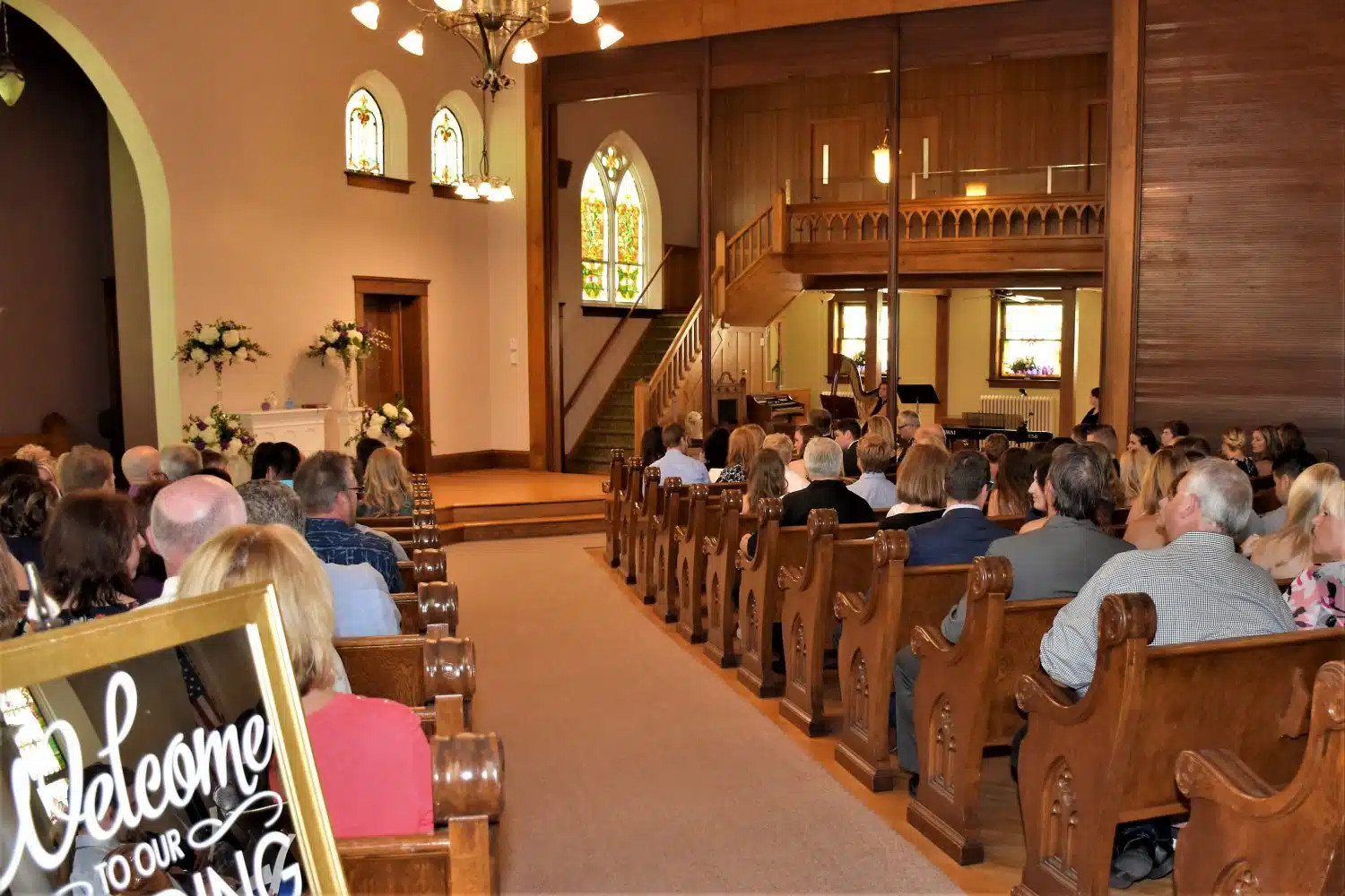 With seating for over 300 guests the beautifully updated theater-style sanctuary is an excellent location for your NE Wisconsin wedding ceremony.
