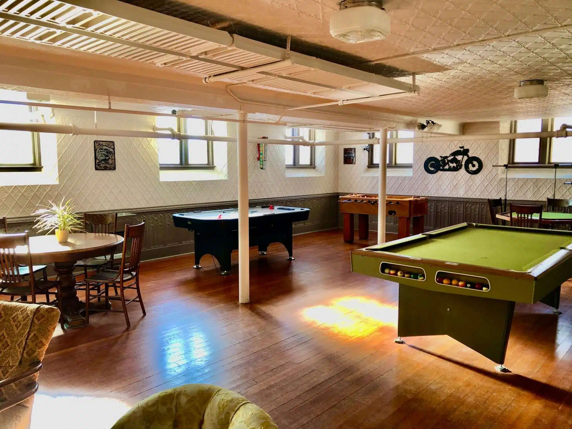 ~Groom’s room with pool air hockey foosball poker table and bar