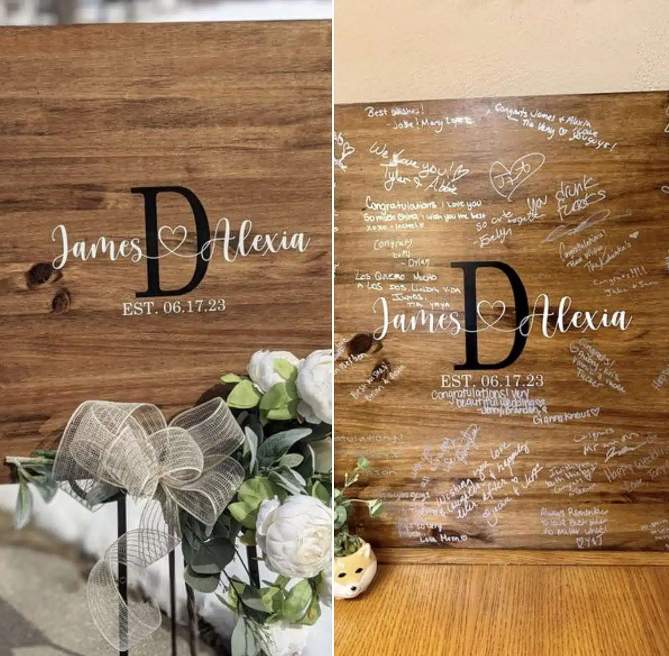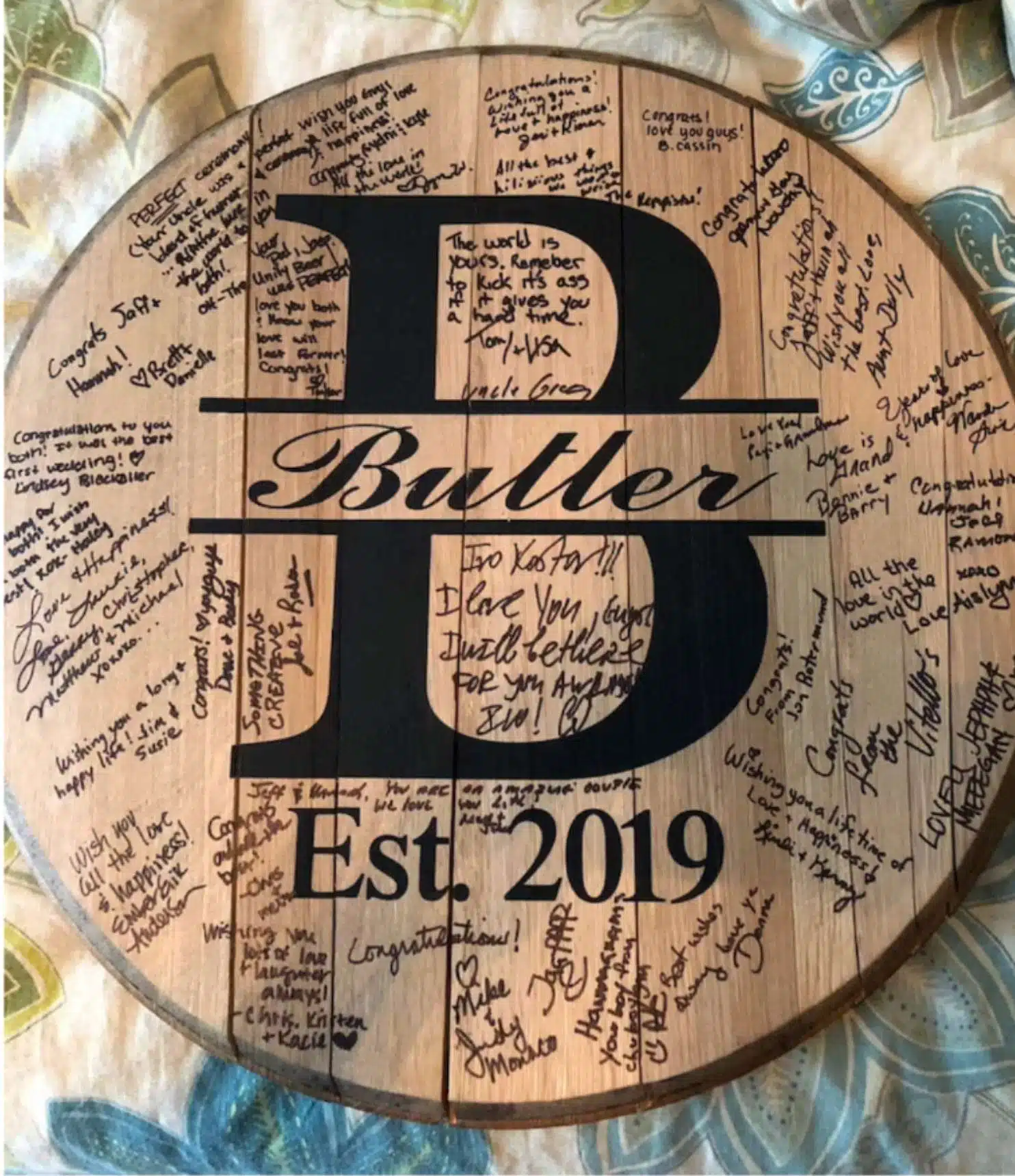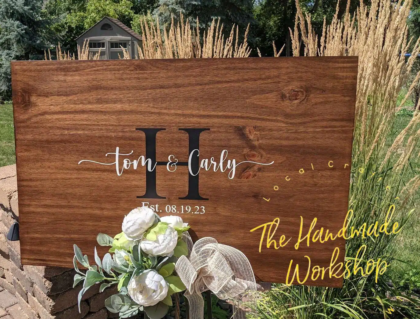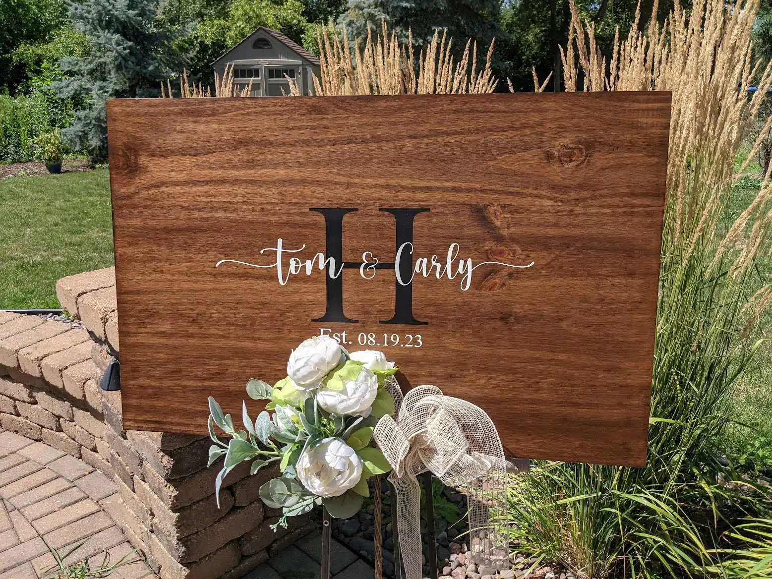 These guest books will be something to treasure and admire by all who enter your home for years to come! Cut, sanded, stained and designed in your choice of color, it truly will make a one-of-a-kind piece that will be a wonderful memory of your special day and all those who shared it with you!