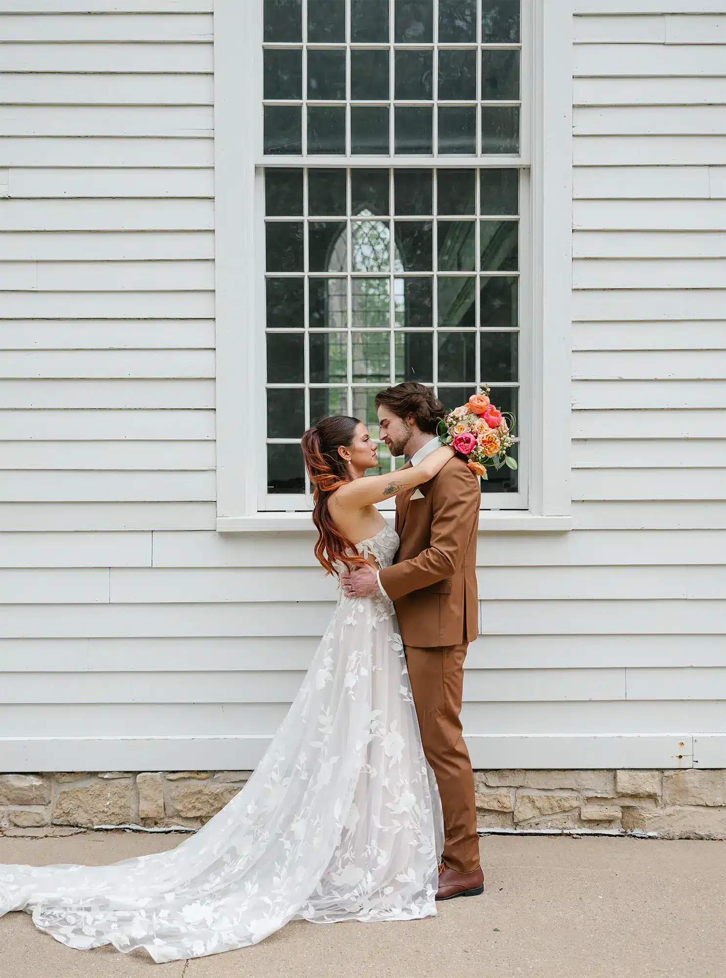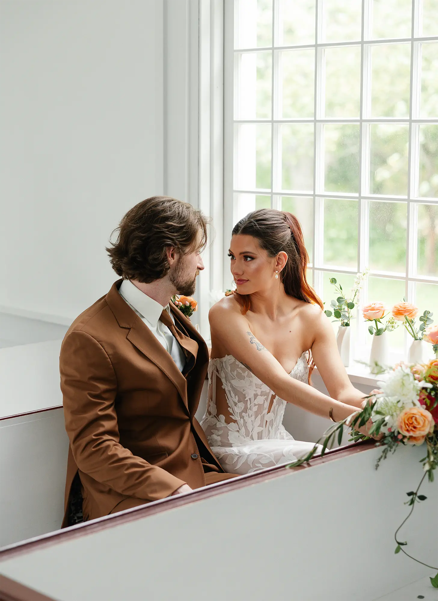 For the second location of our shoot, we shifted the theme and color palette to create a fresh, modern look. To tie everything together, we shared the floral selections with Laura from L.Designs, who designed a stunning invitation suite. She incorporated sleek, contemporary details and even crafted a coordinating envelope liner featuring the same blooms.